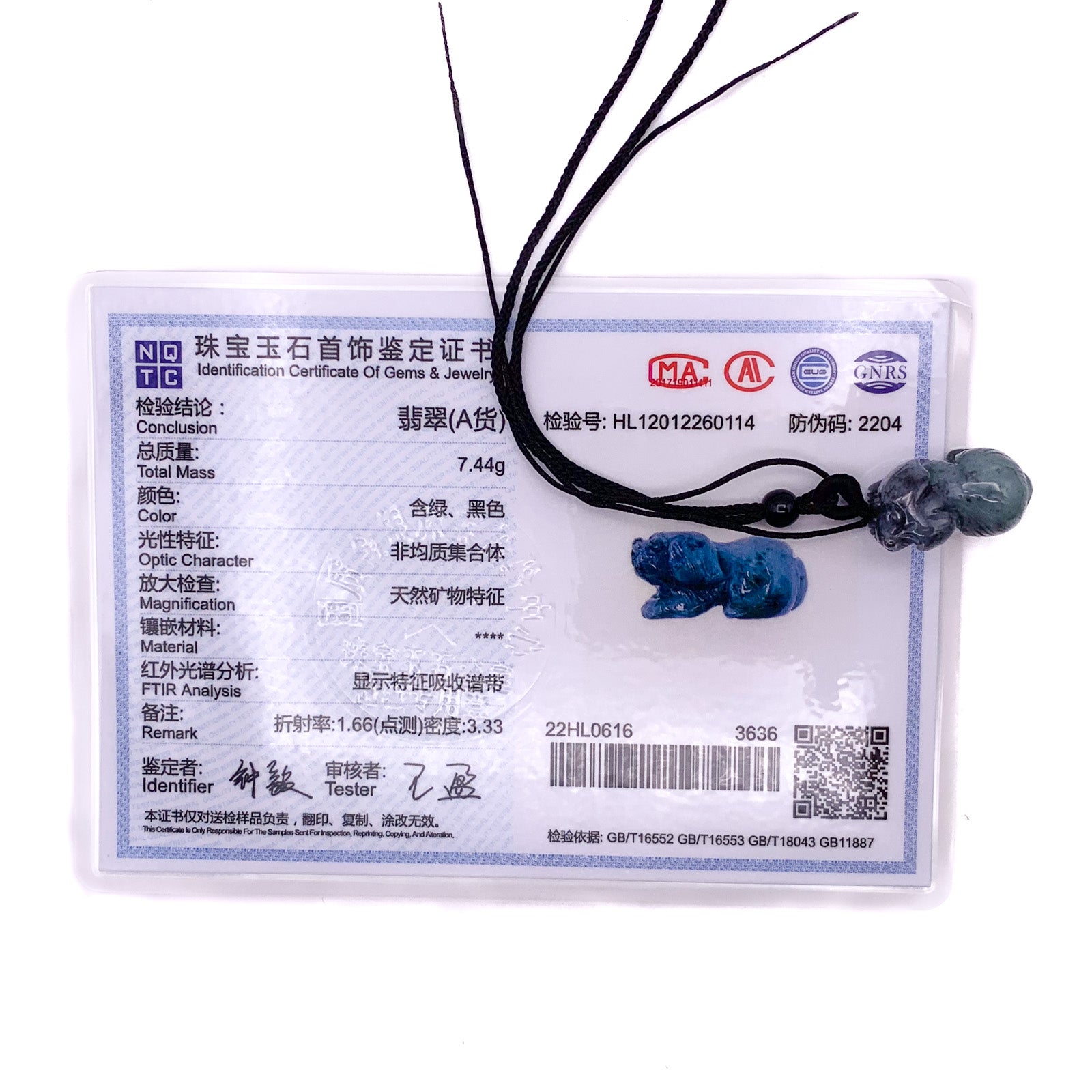 Certified Black 100% Burma Natural A Jade Jadeite Pendant Dog