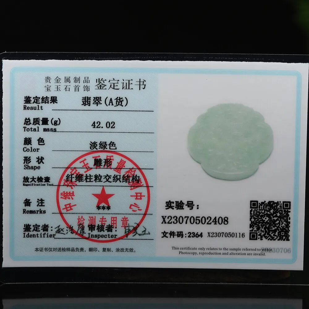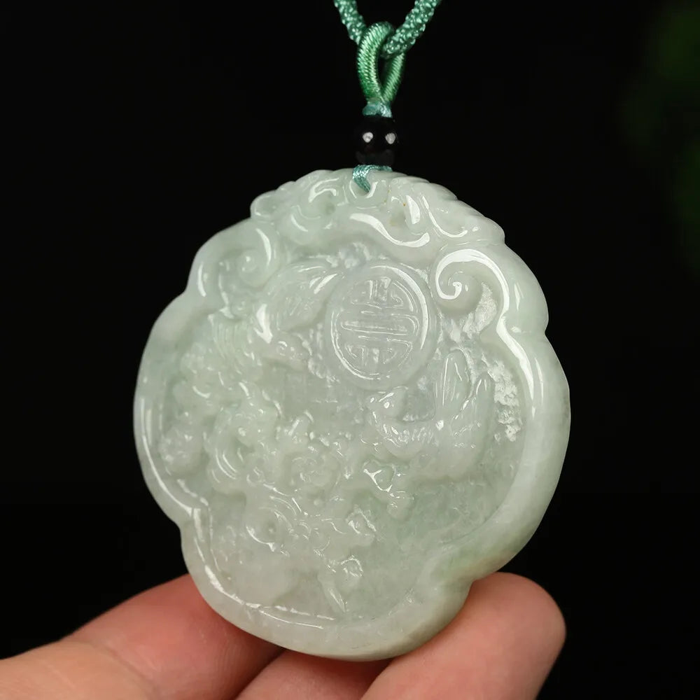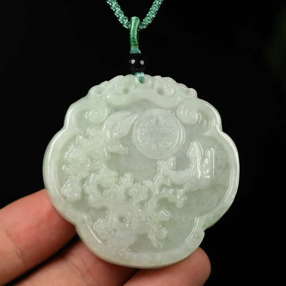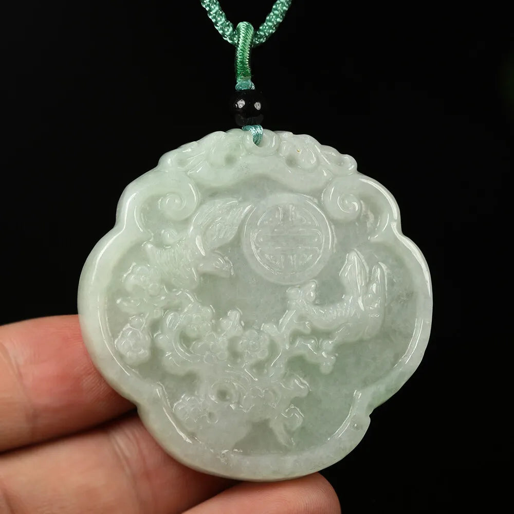 Certified Grade A Green Natural Jadeite Jade Pendant Flower Birds Necklace