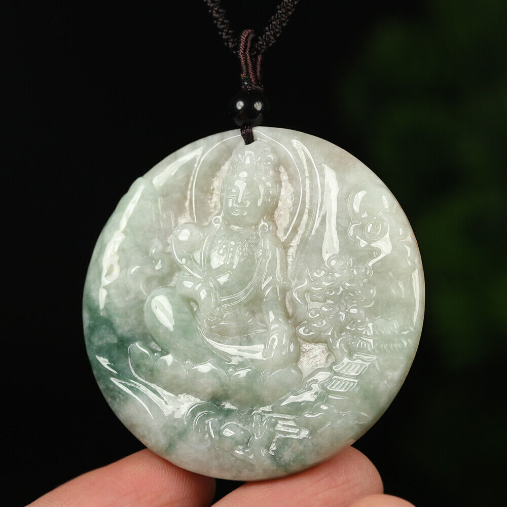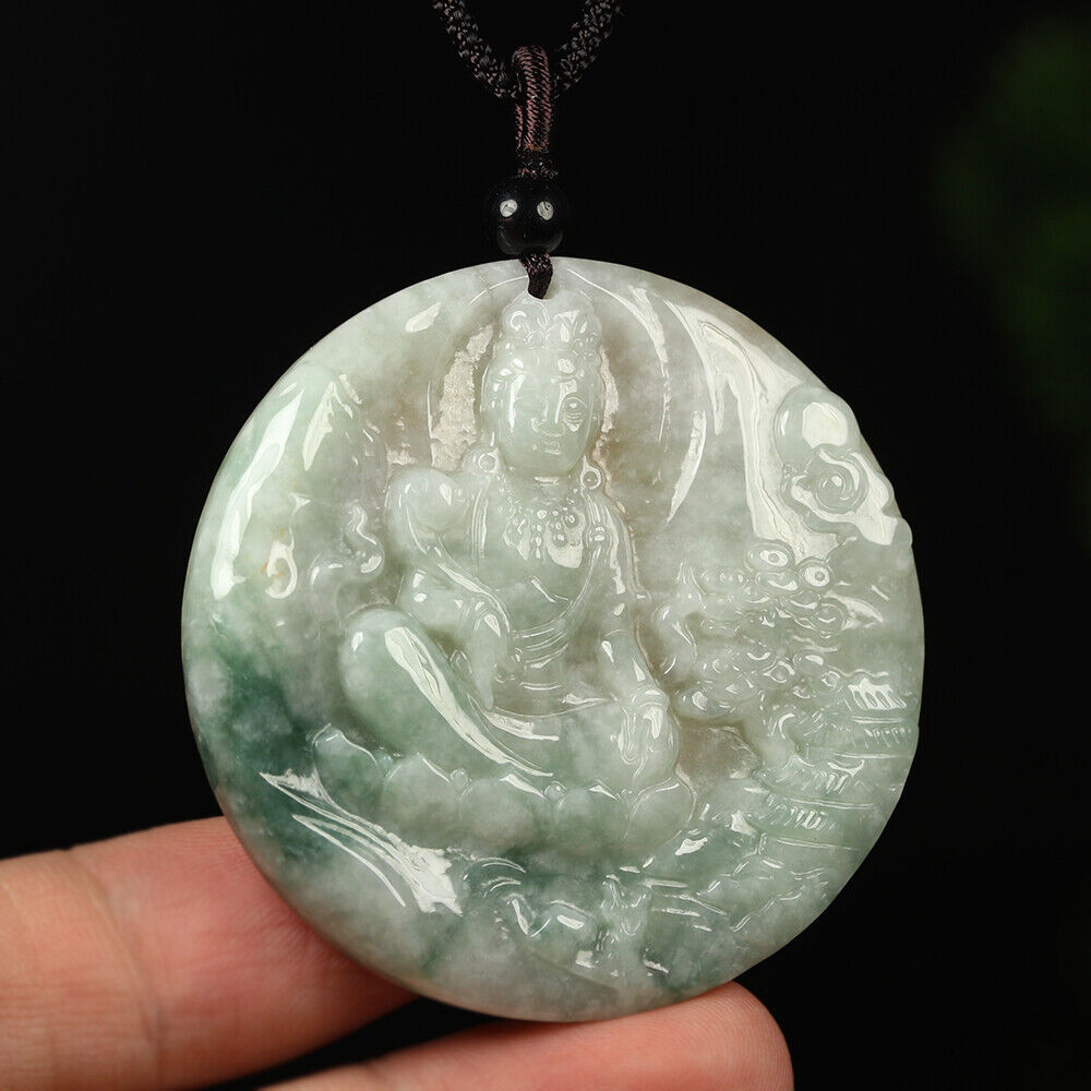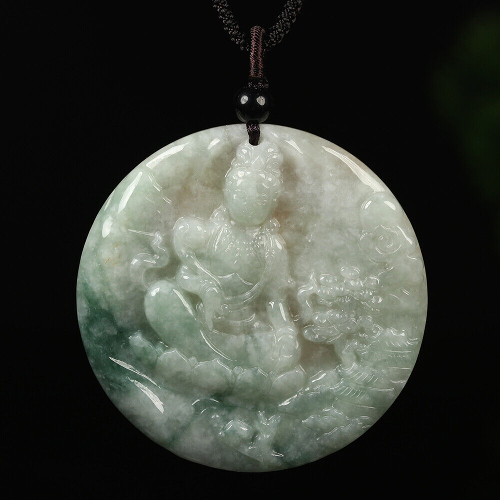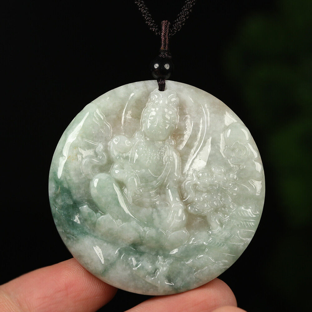 Certified Grade A Red Green Natural Jadeite Jade Pendant Kwan-Yin Flower