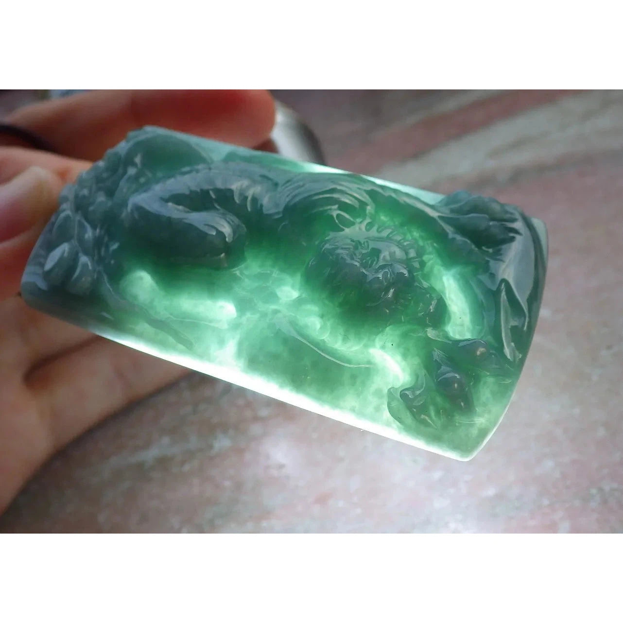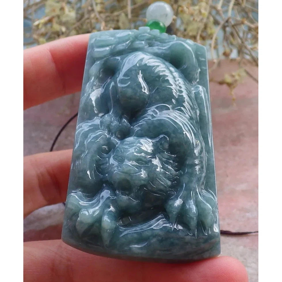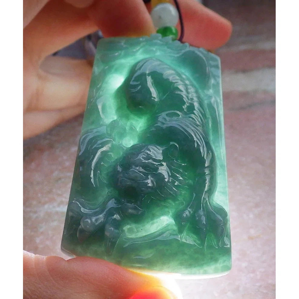 Certified Green 100% Burma Natural A Jade Jadeite Pendant Tiger Necklace