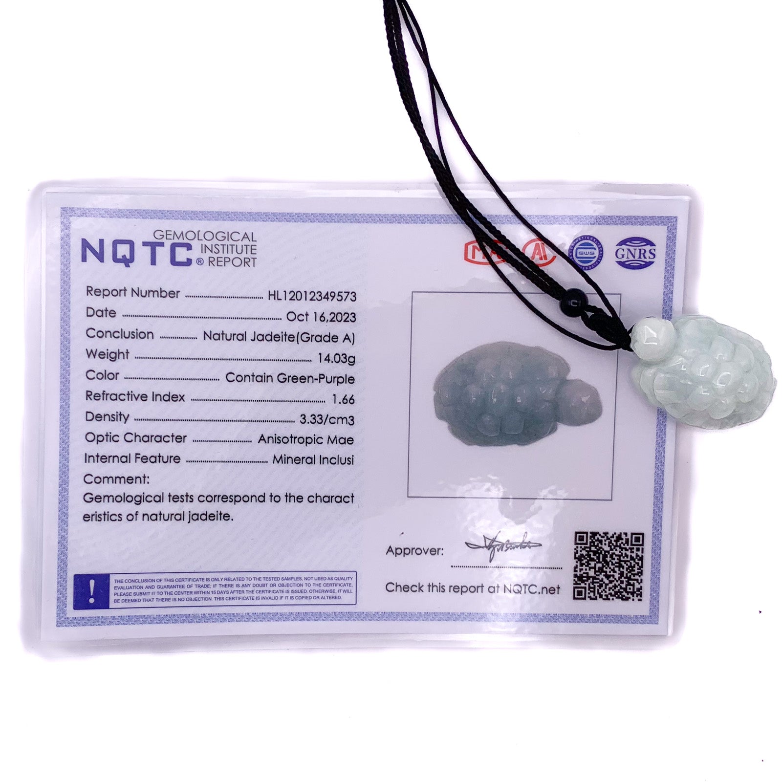 Certified Green 100% Burma Natural A Jade Jadeite Pendant Turtle Necklace