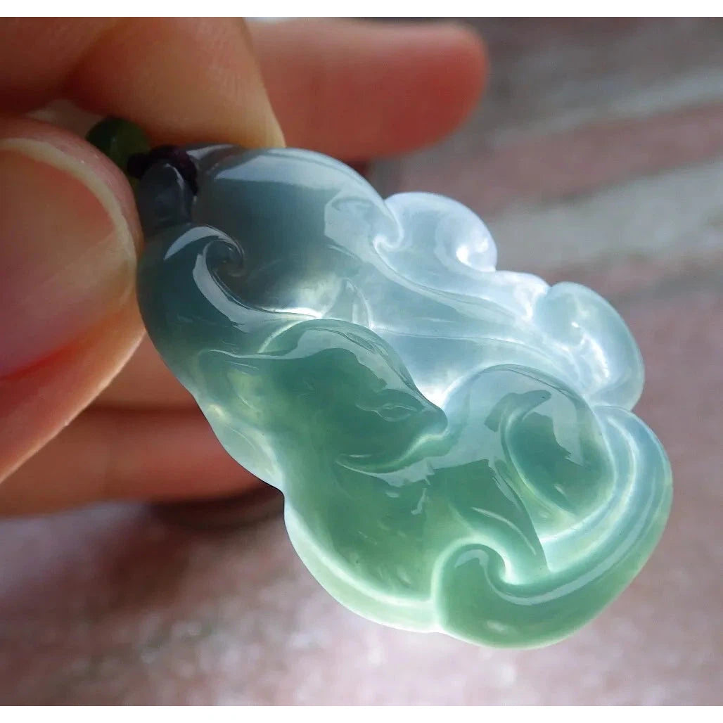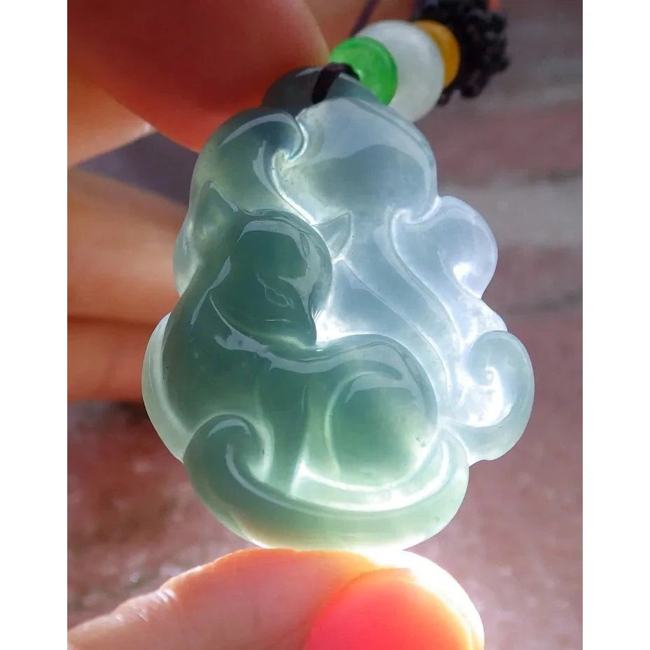 Certified Green Burma 100% Natural A Jade Jadeite Pendant Fox Necklace
