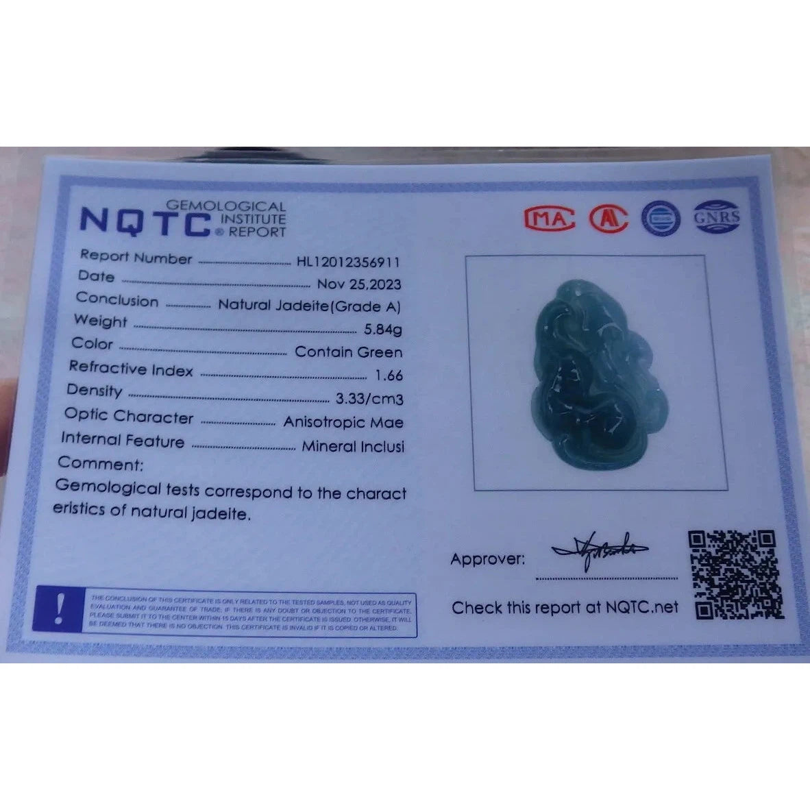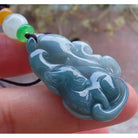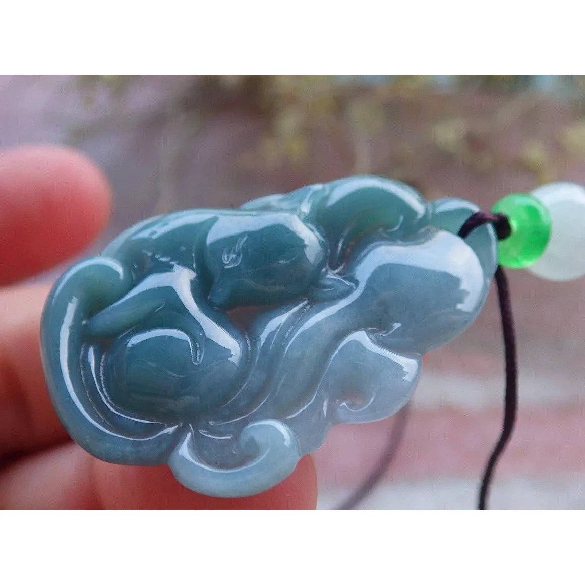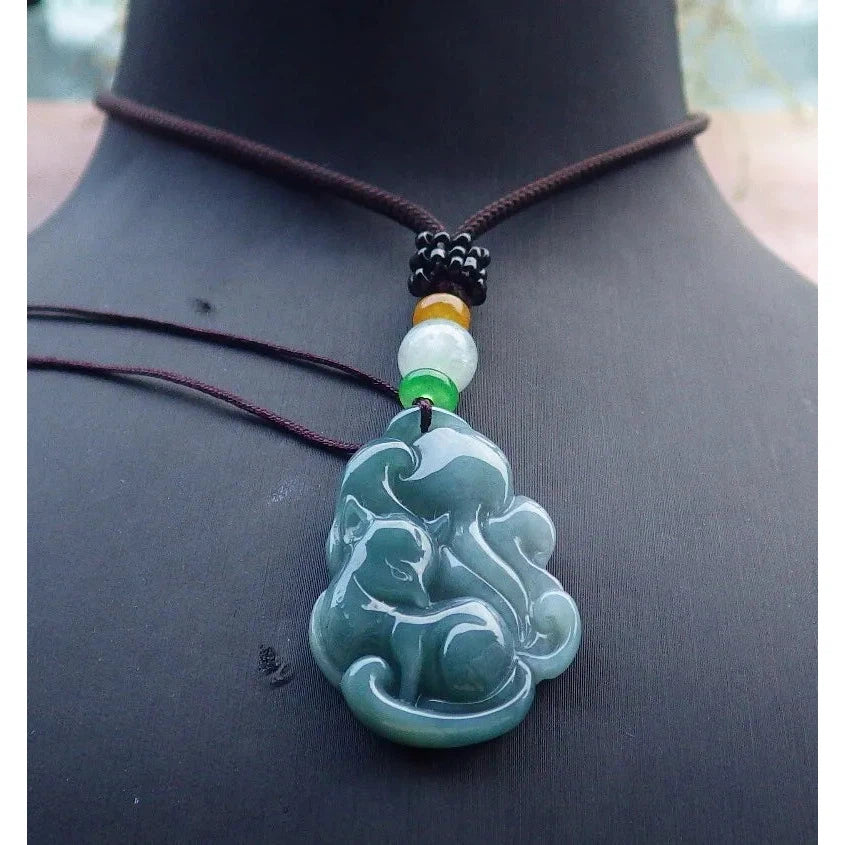• Certified Green Burma 100% Natural A Jade Jadeite Pendant Fox Necklace