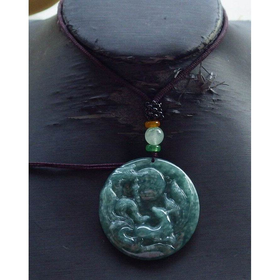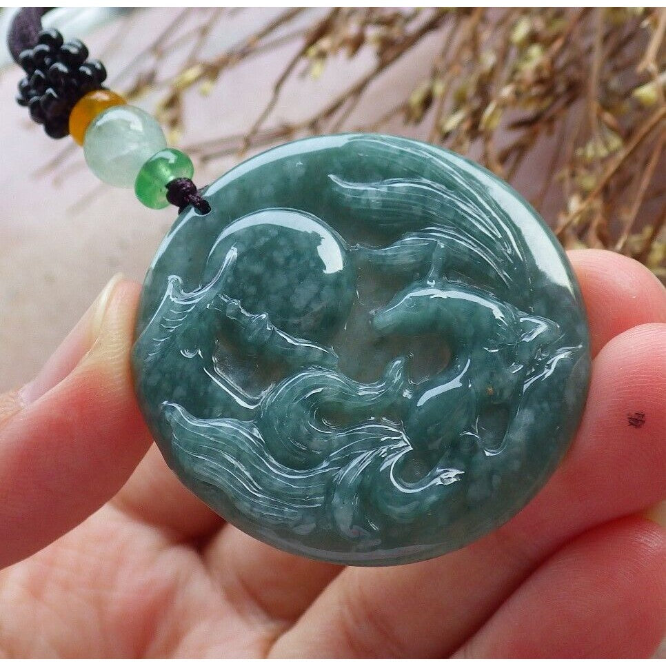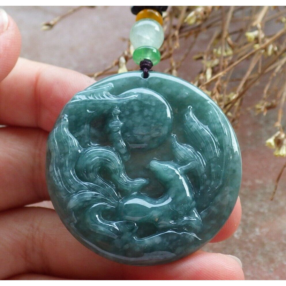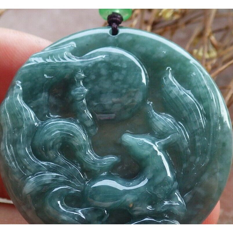 Certified Green Burma 100% Natural A Jade Jadeite Pendant Fox Phoenix Necklace