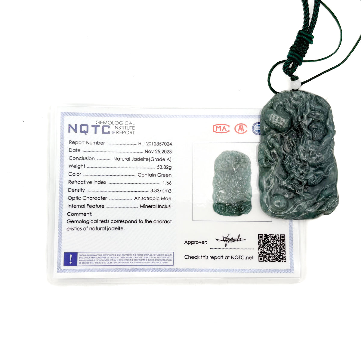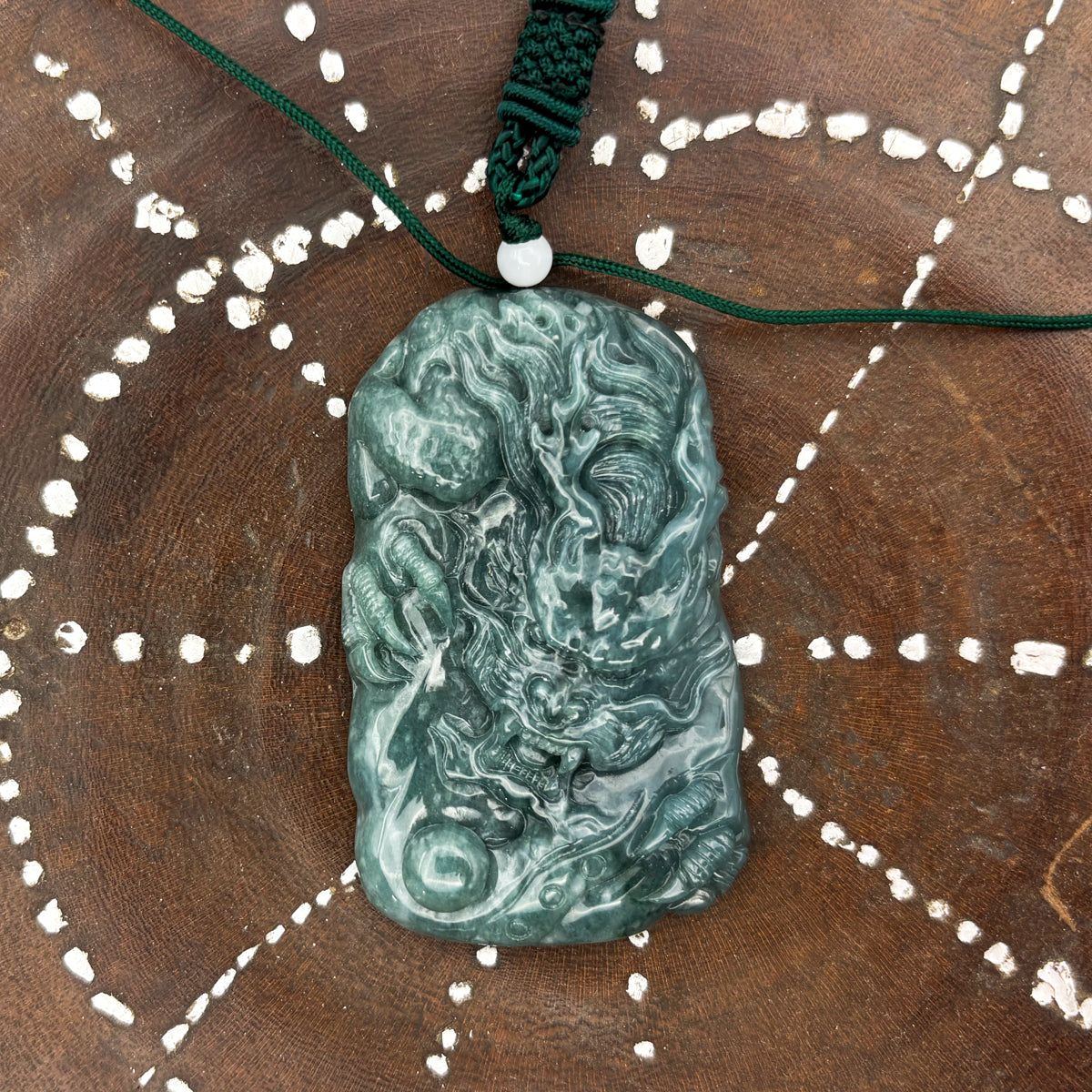 Certified Green Burma Natural A Jade Jadeite Pendant Dragon Necklace
