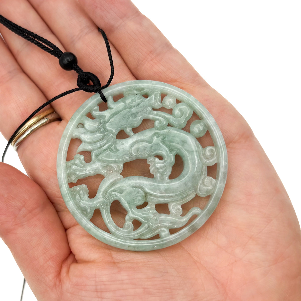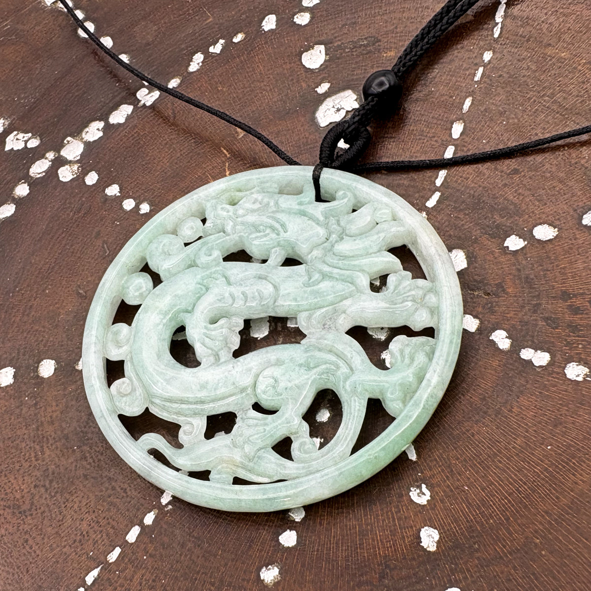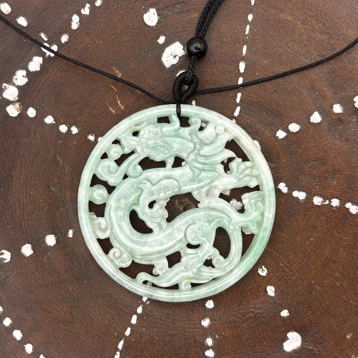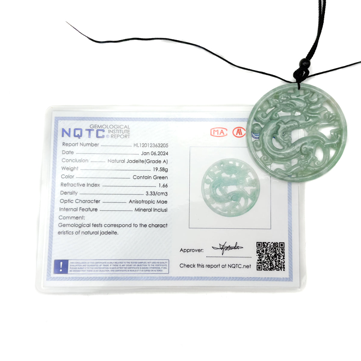 Certified Green Burma Natural A Jade Jadeite Pendant Dragon Circle