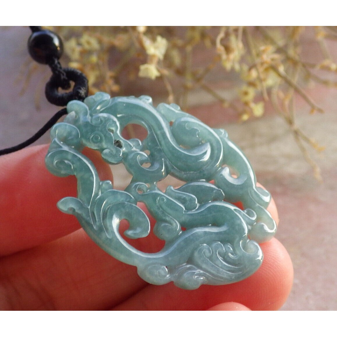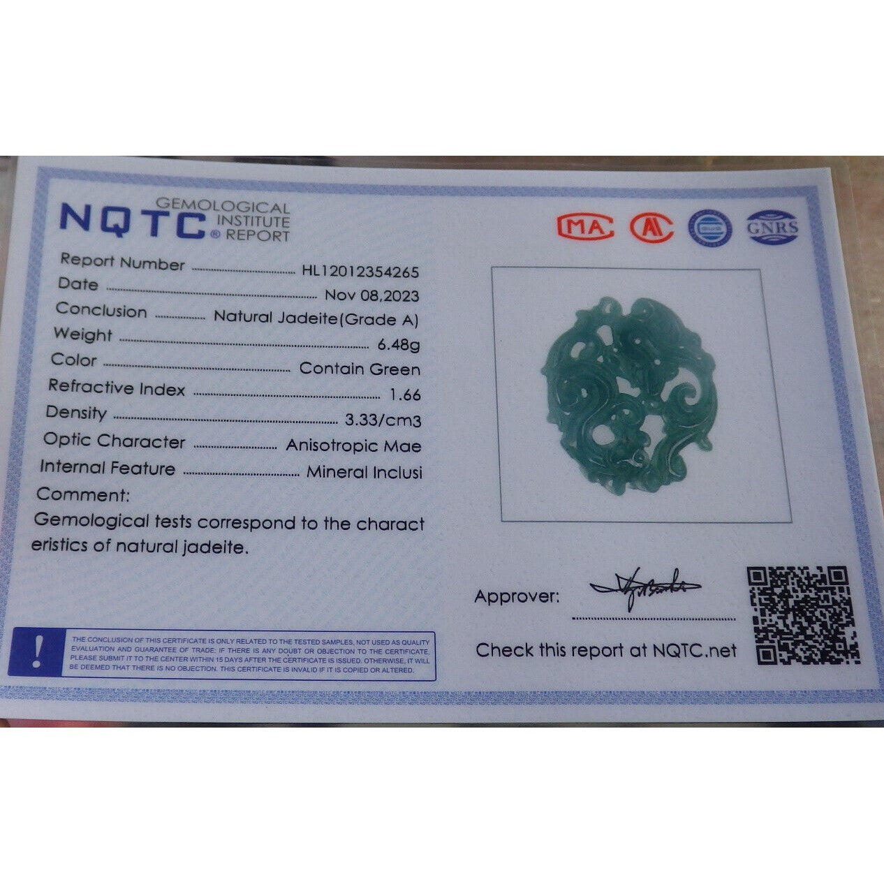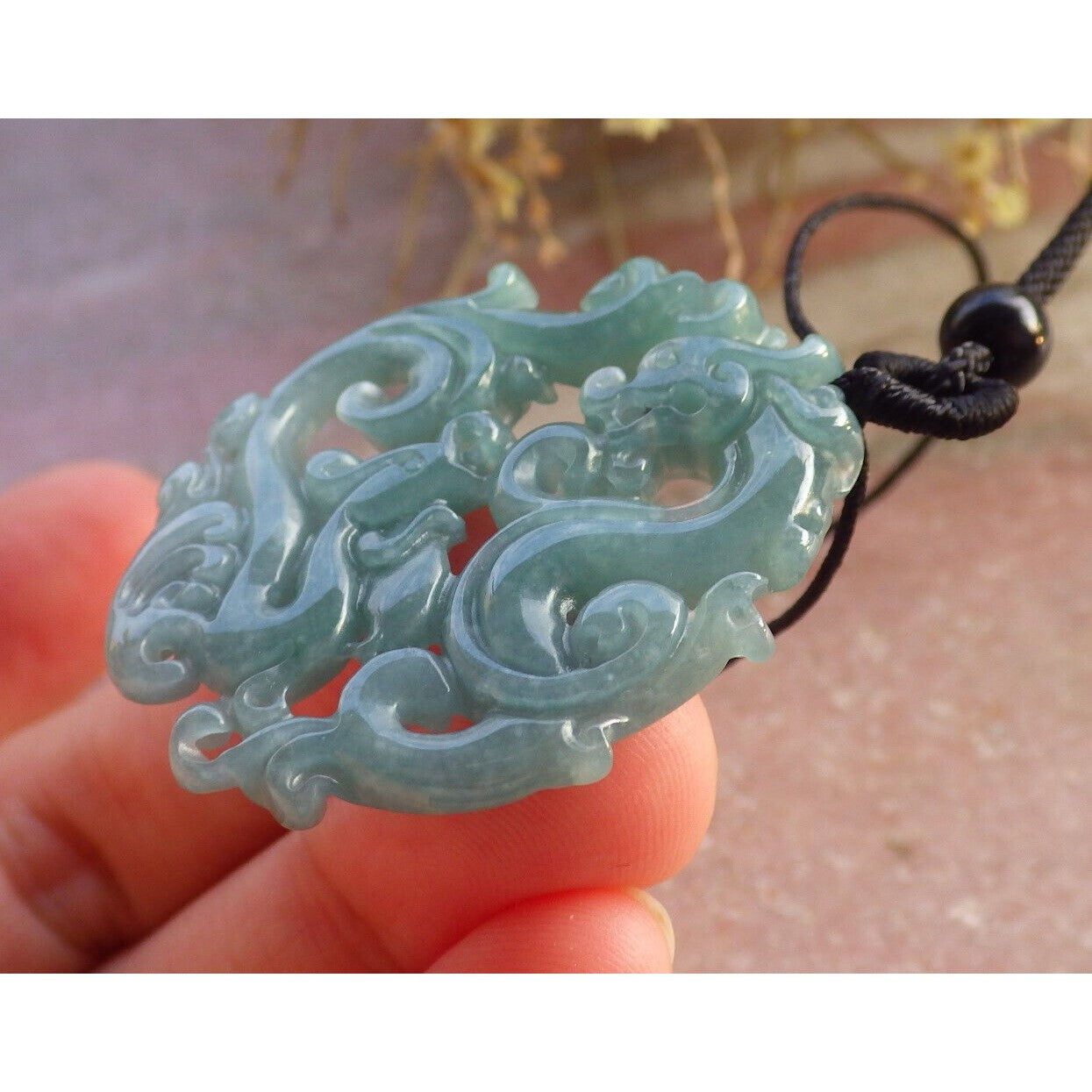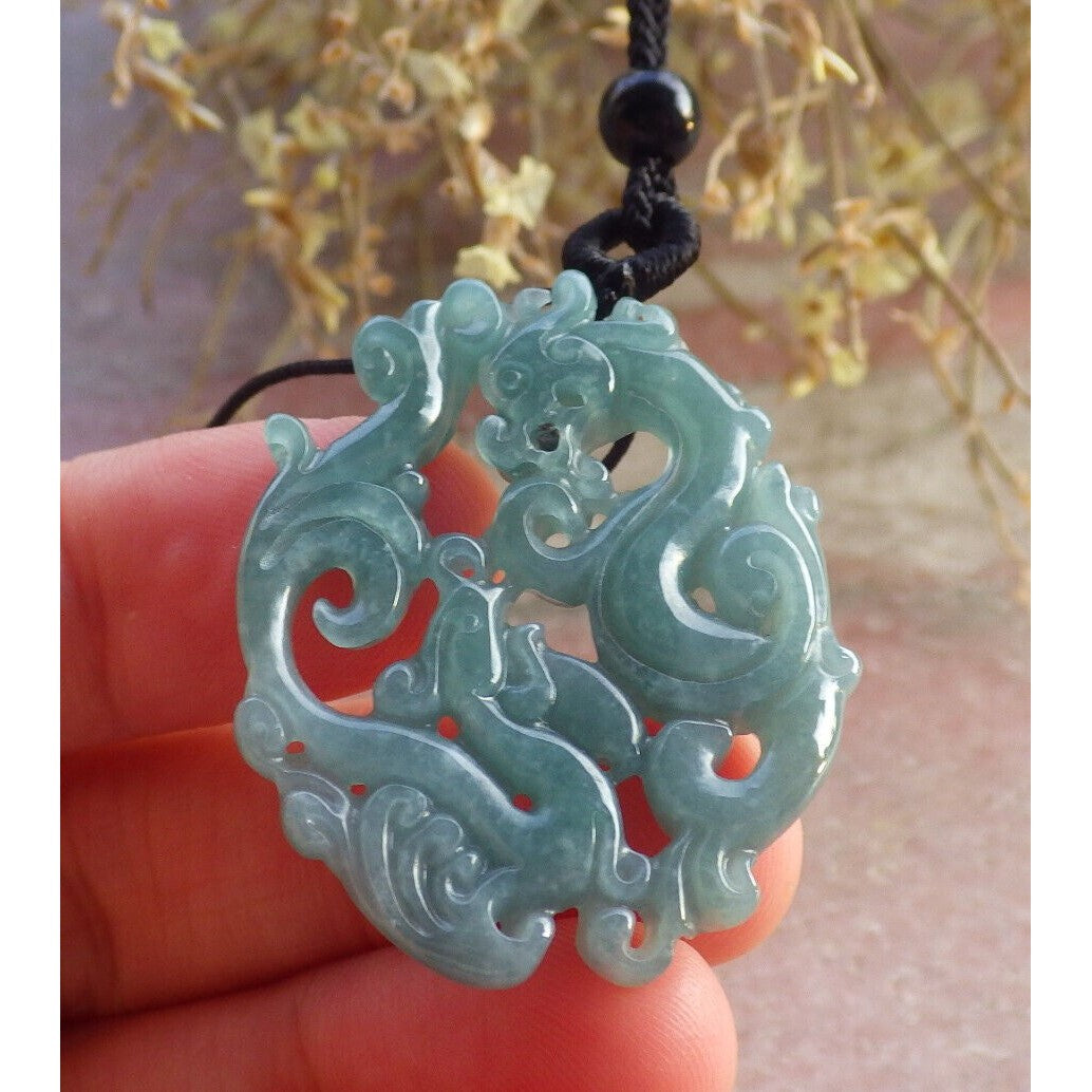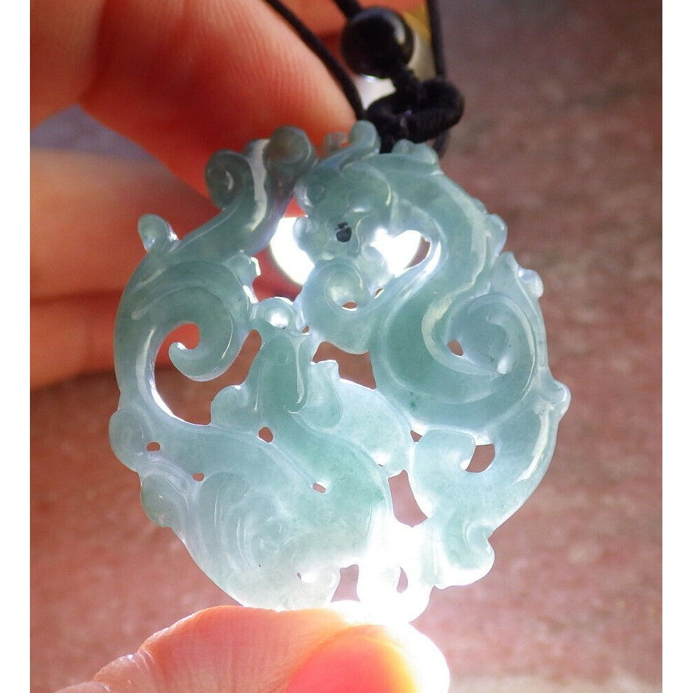 Certified Green Burma Natural A Jade Jadeite Pendant Dragon Phoenix Necklace