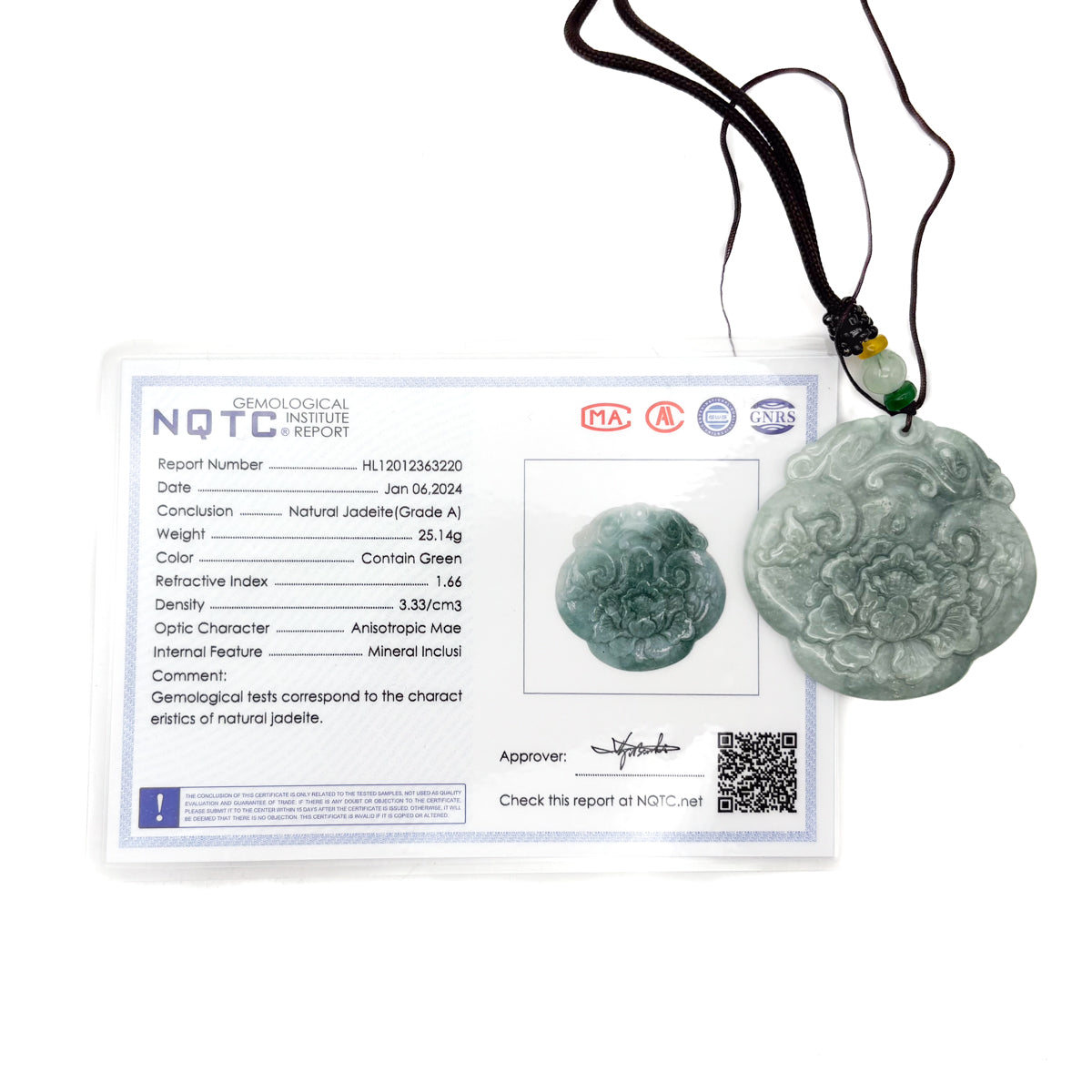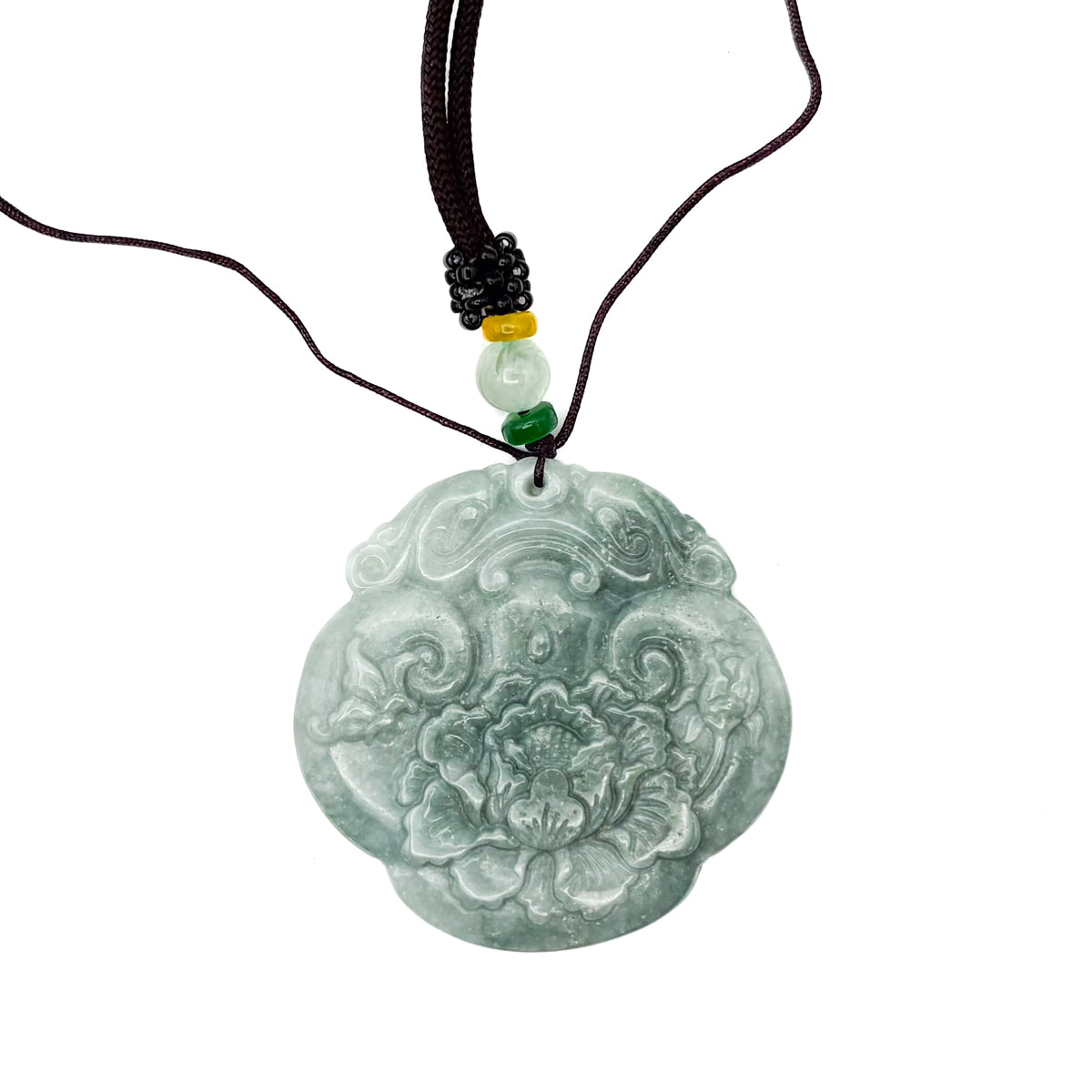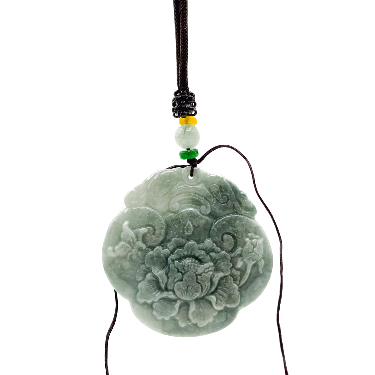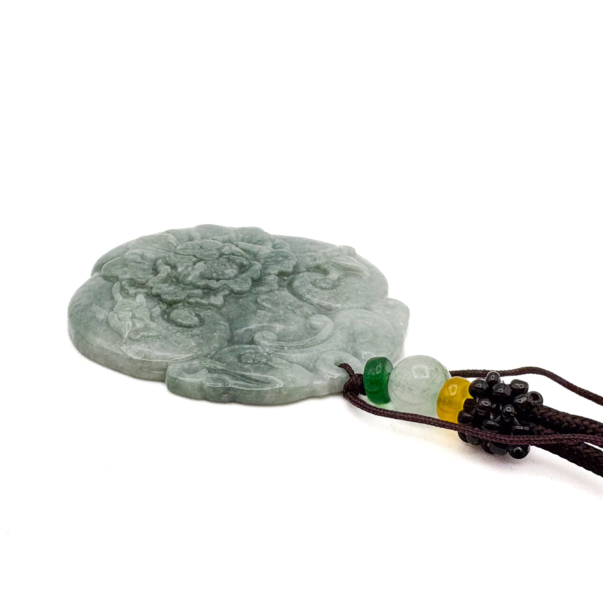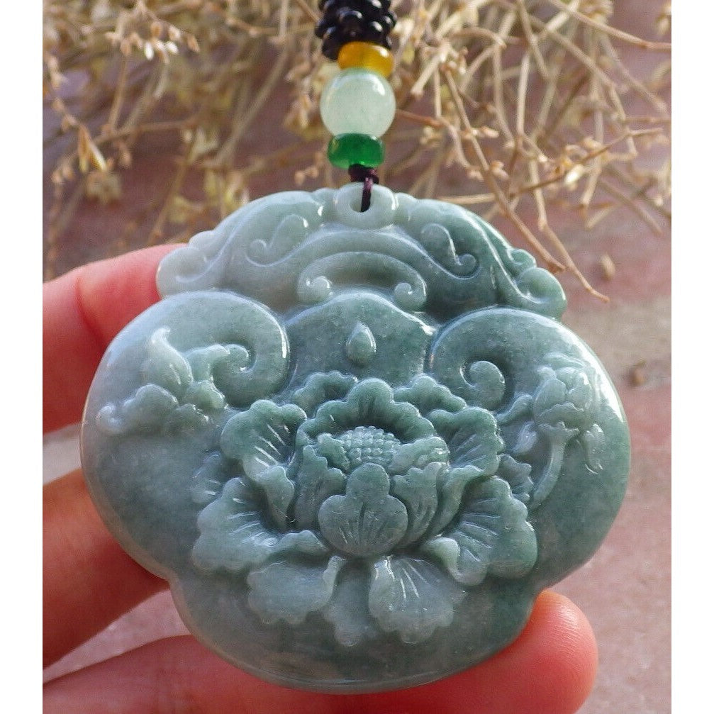 Certified Green Burma Natural A Jade Jadeite Pendant Dragon Ruyi Flower