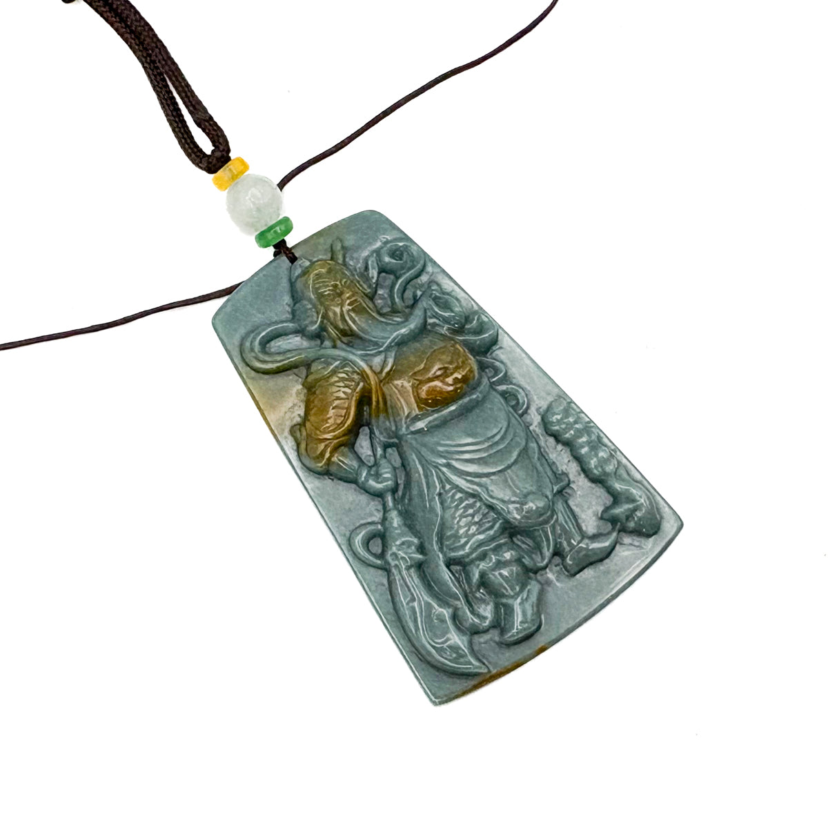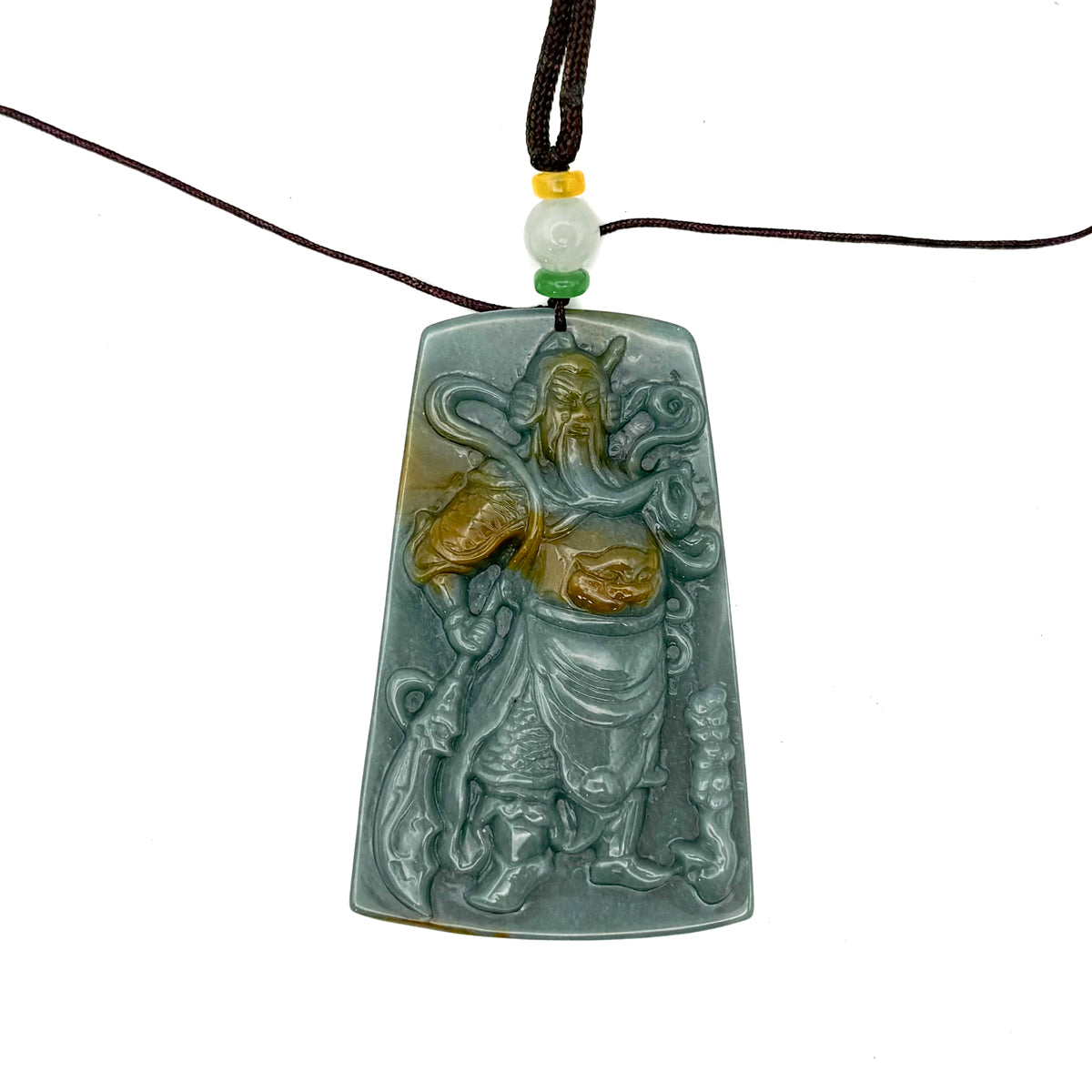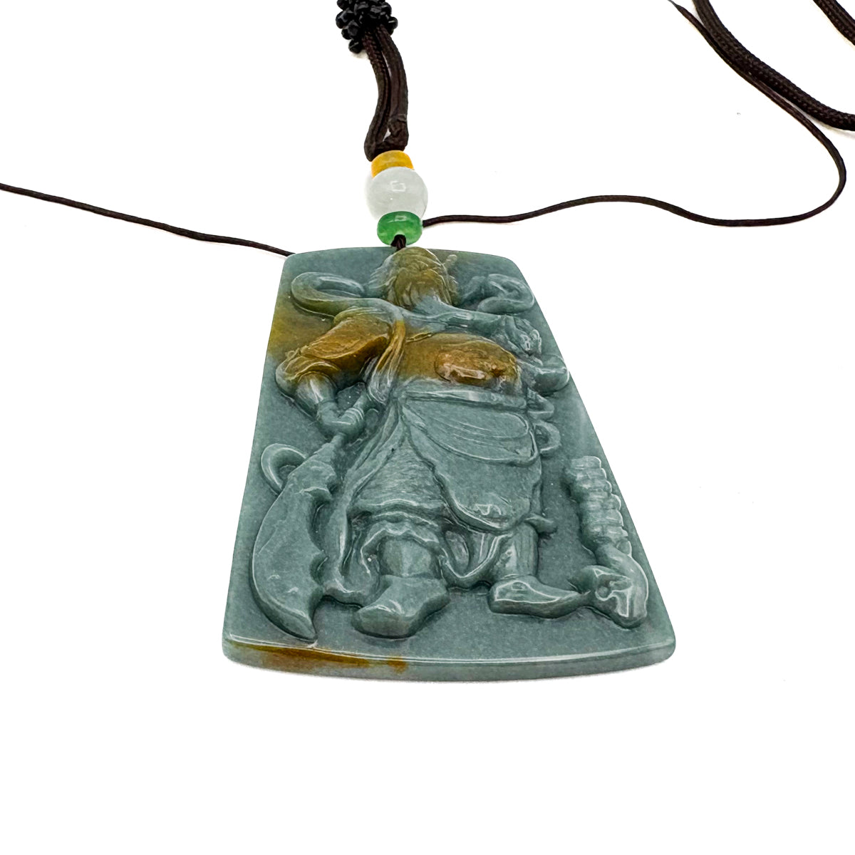 Certified Green Burma Natural A Jade Jadeite Pendant Guan Gong God Necklace