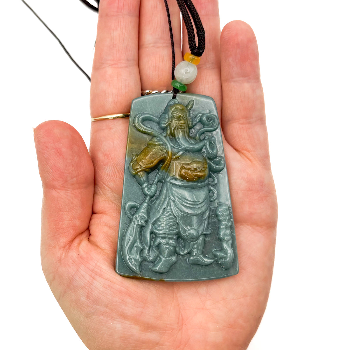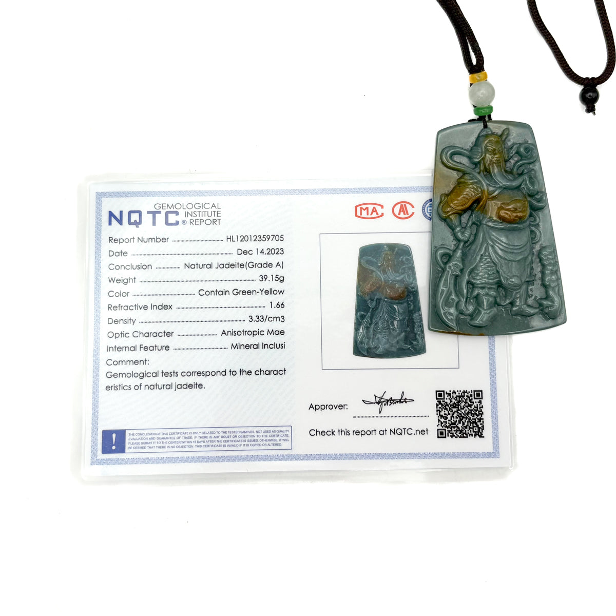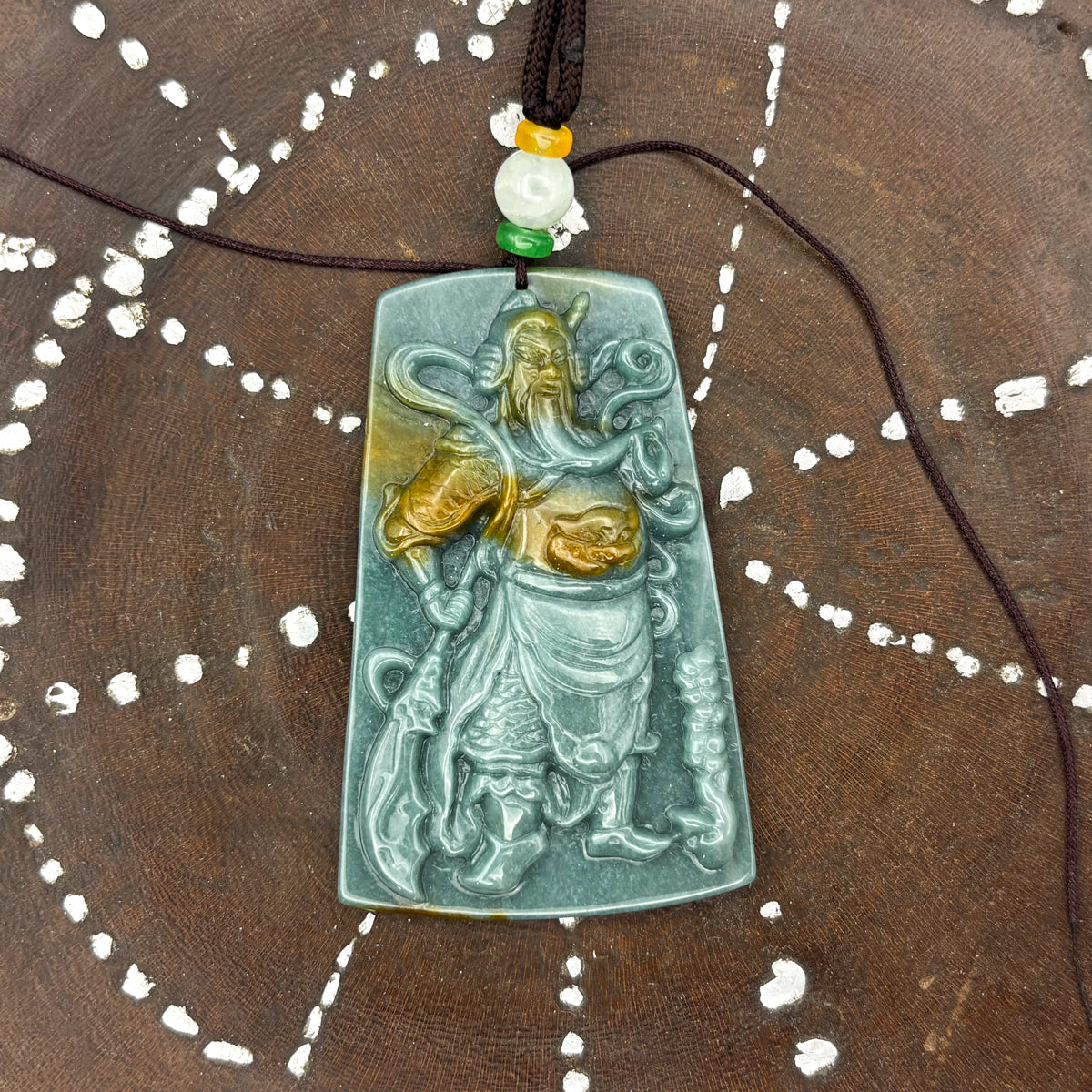Certified Green Burma Natural A Jade Jadeite Pendant Guan Gong God Necklace
