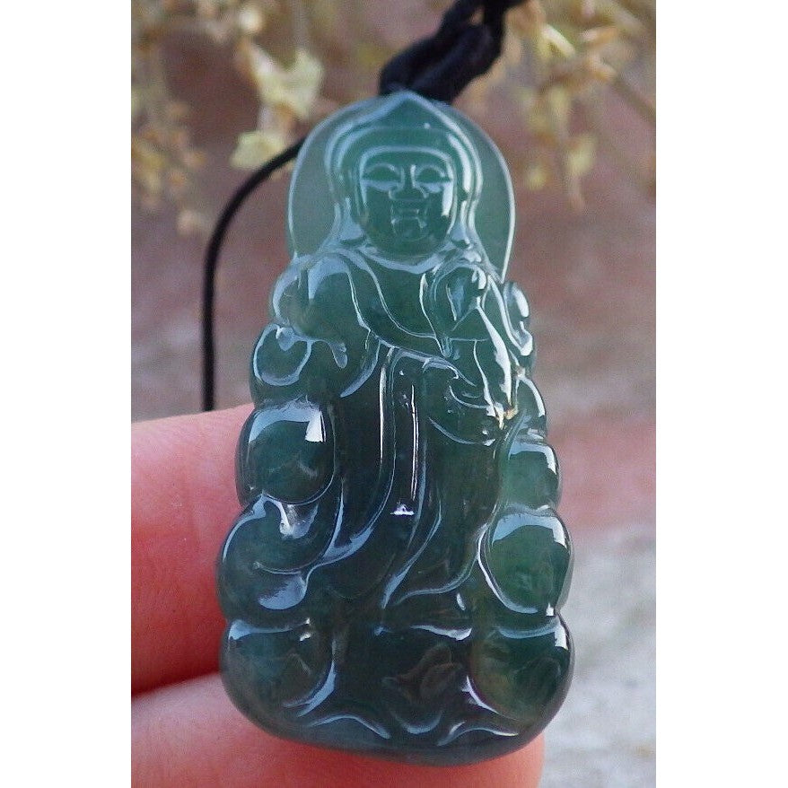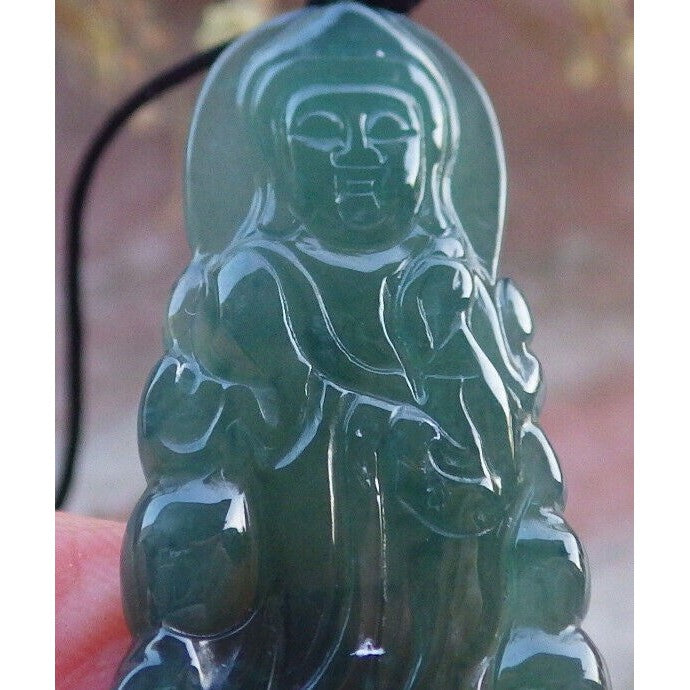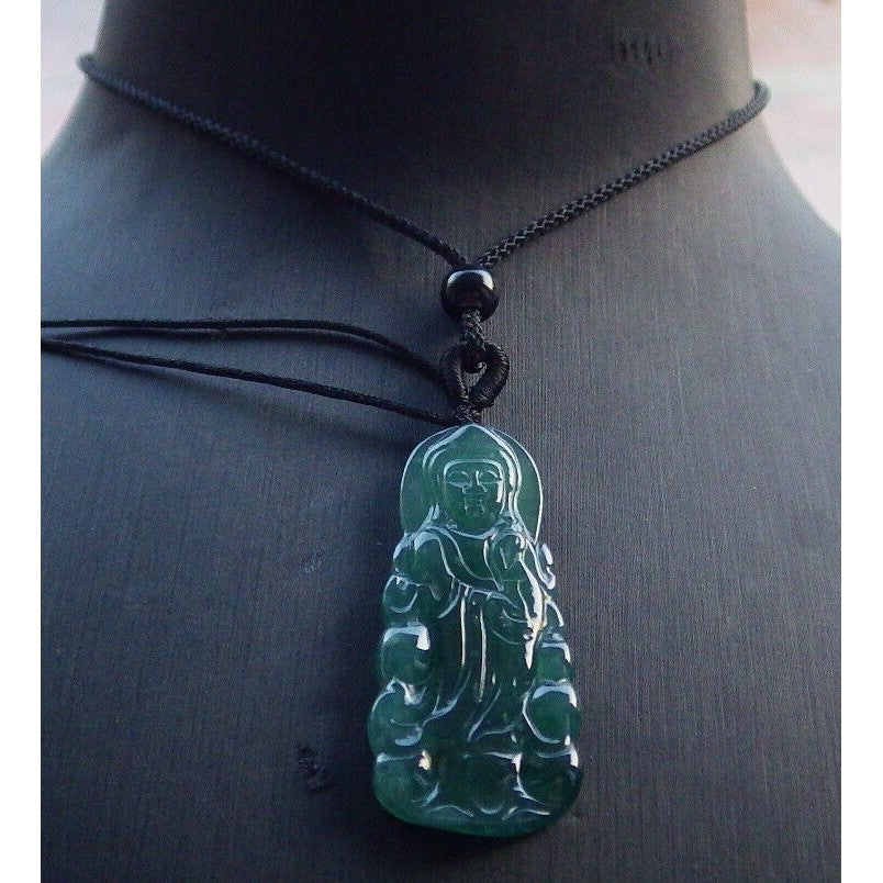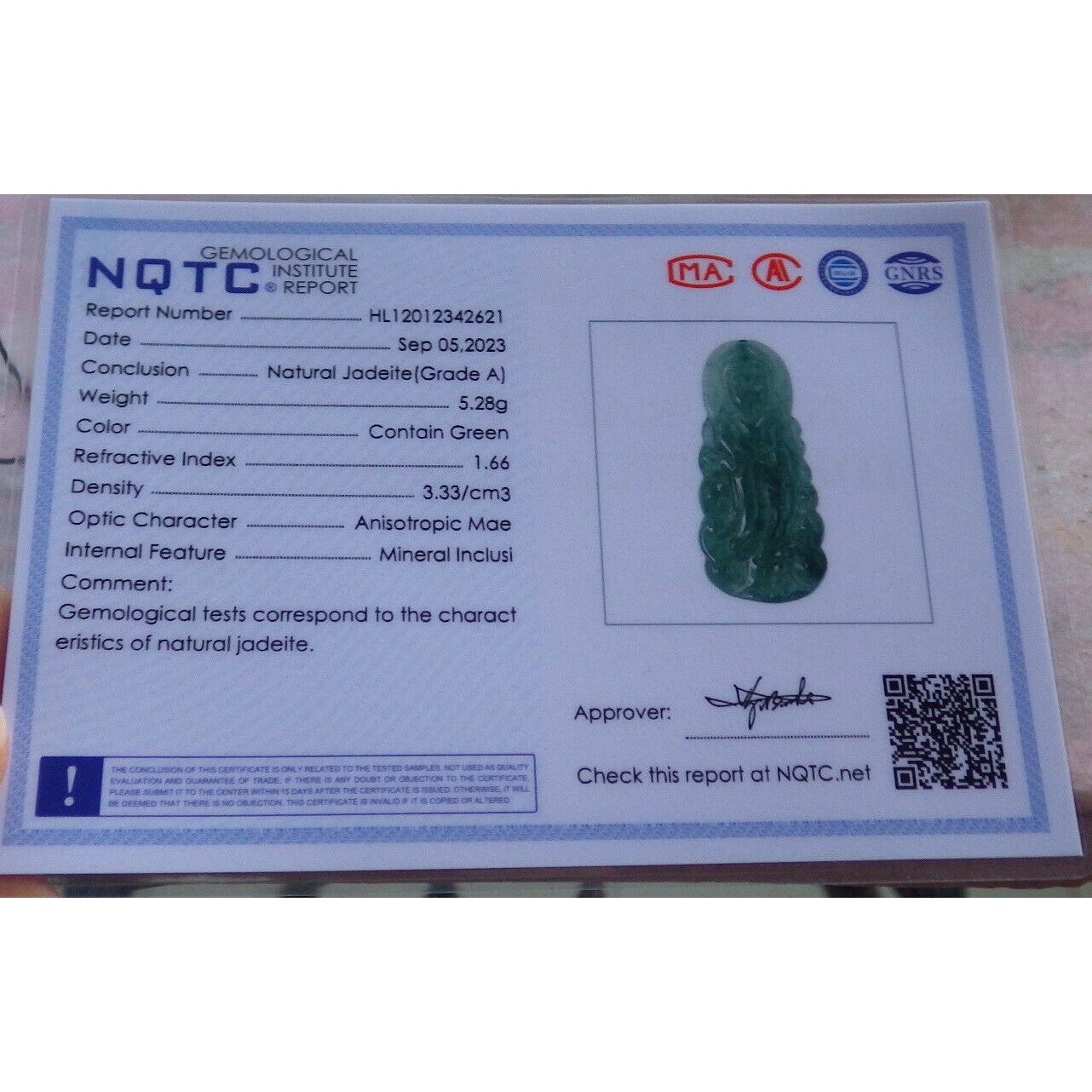 Certified Green Burma Natural A Jade Jadeite Pendant Guanyin Kwan Yin Necklace