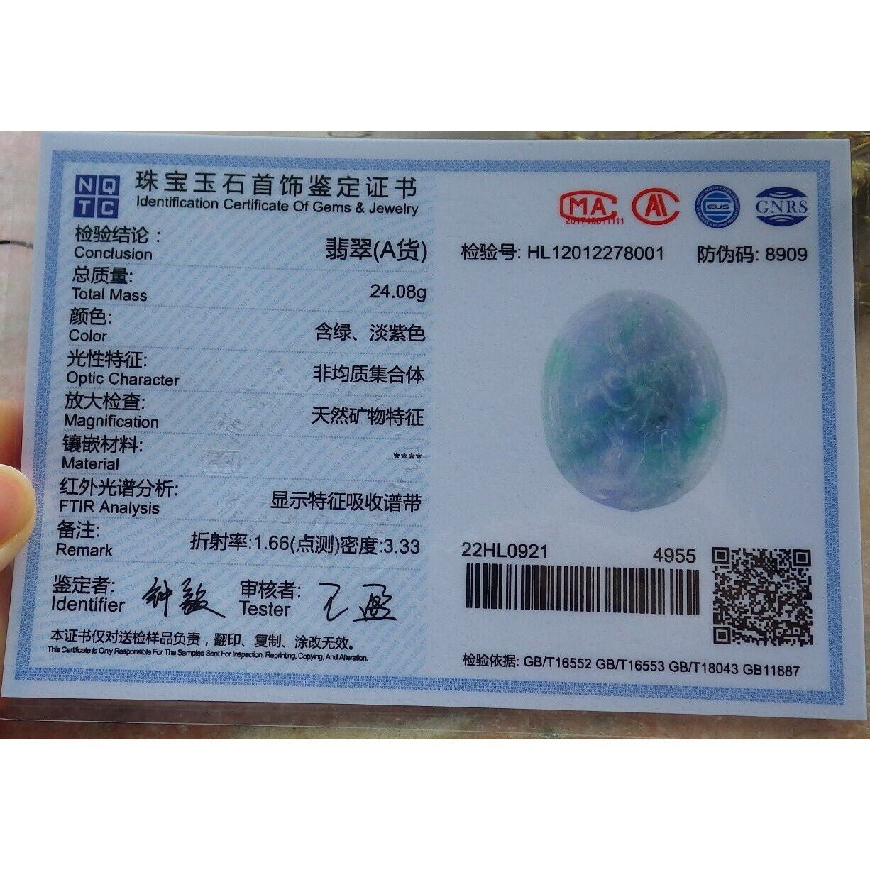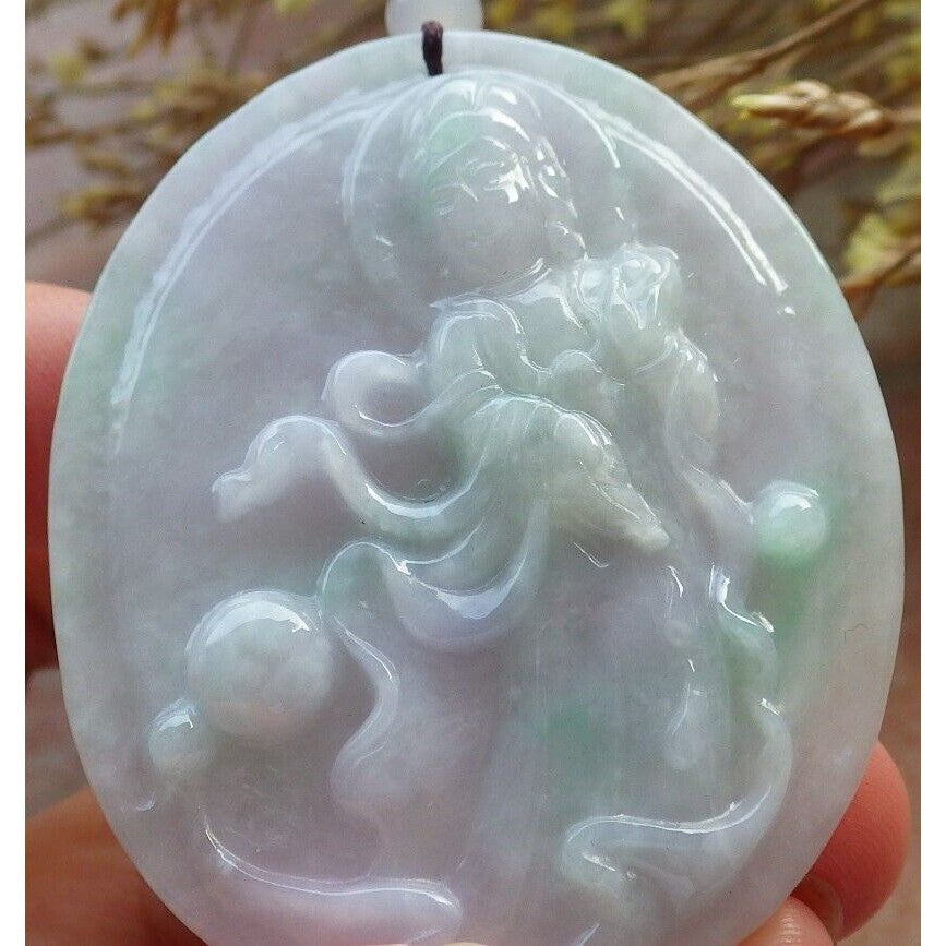 Certified Green Burma Natural A Jade Jadeite Pendant Guanyin Kwan Yin