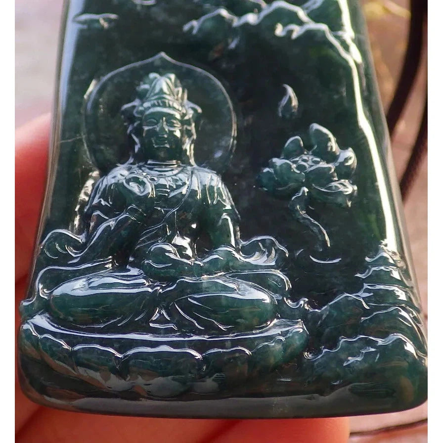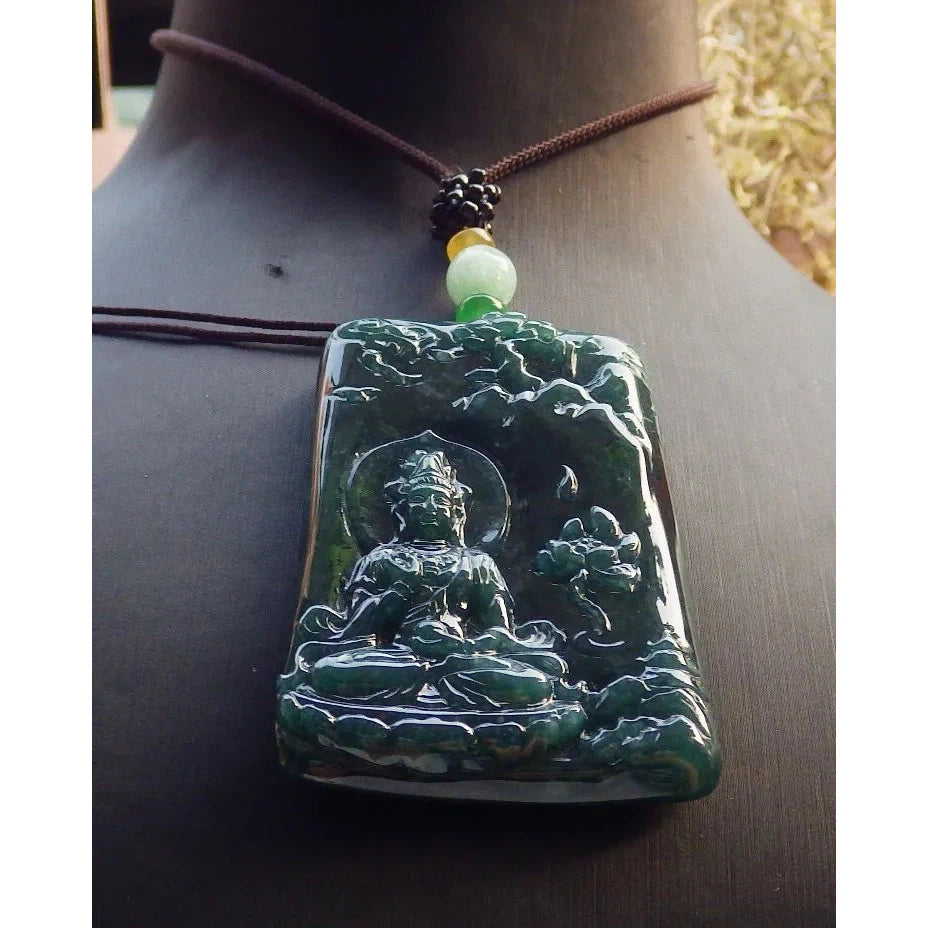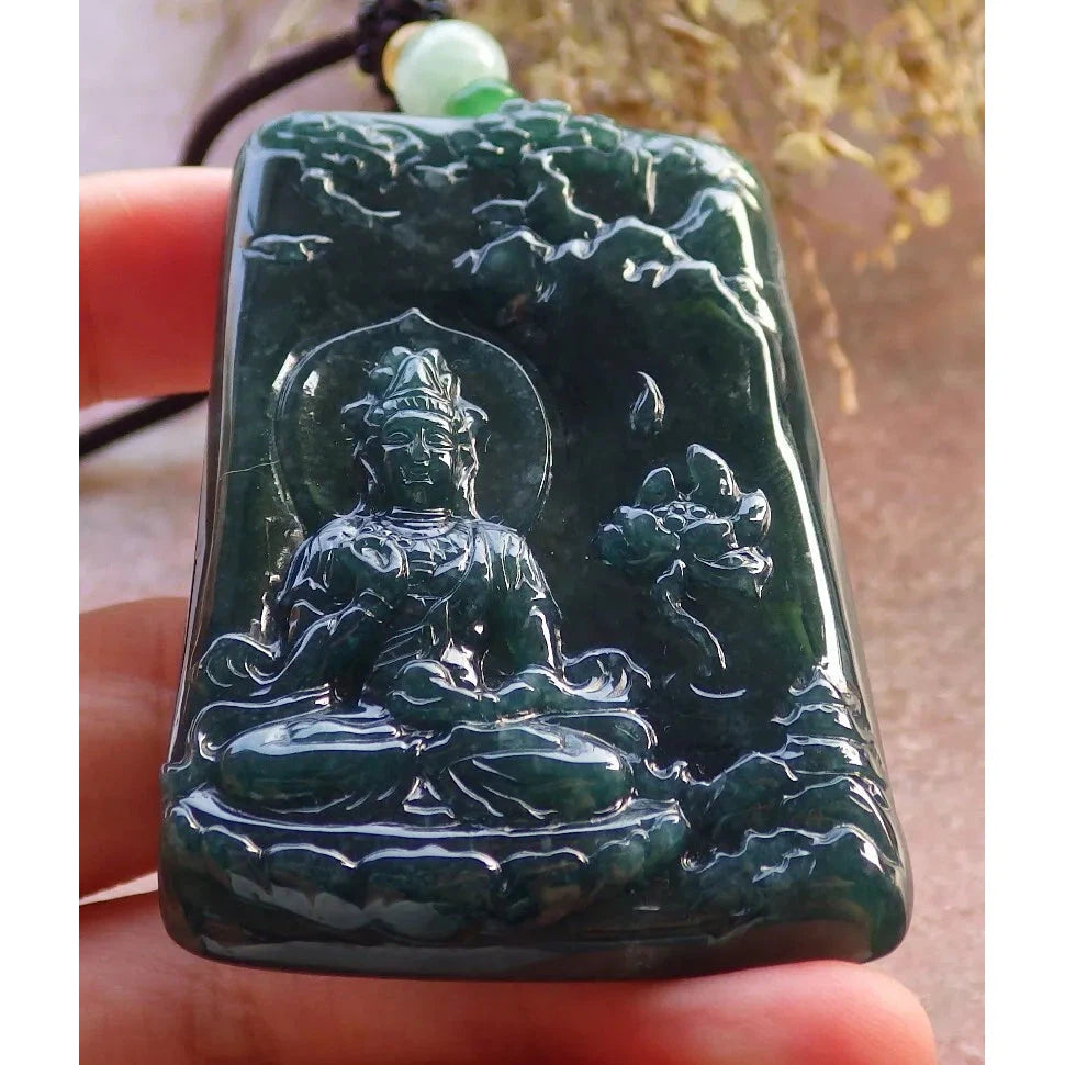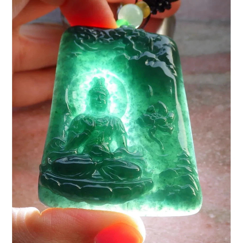 Certified Green Burma Natural A Jade Jadeite Pendant Guanyin Lotus Necklace