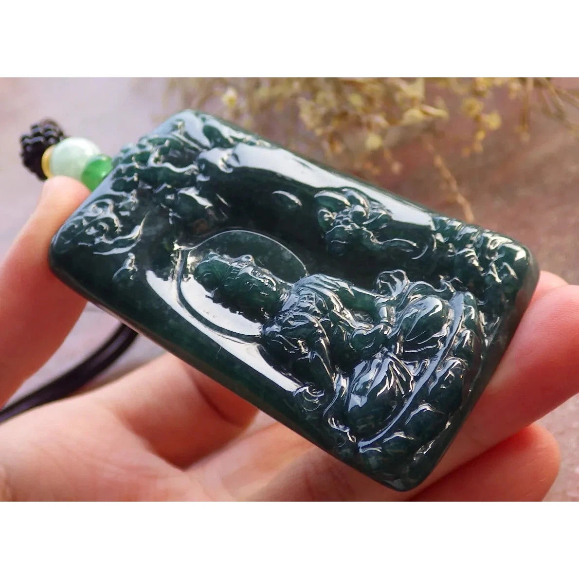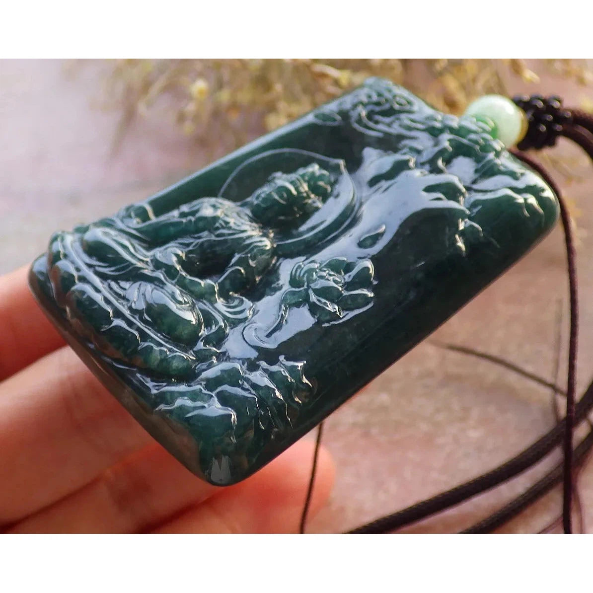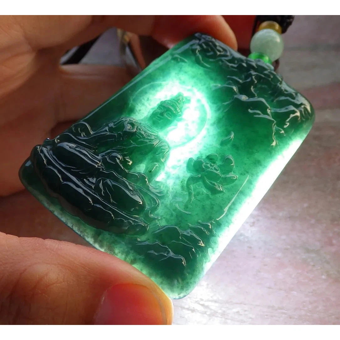 Certified Green Burma Natural A Jade Jadeite Pendant Guanyin Lotus Necklace