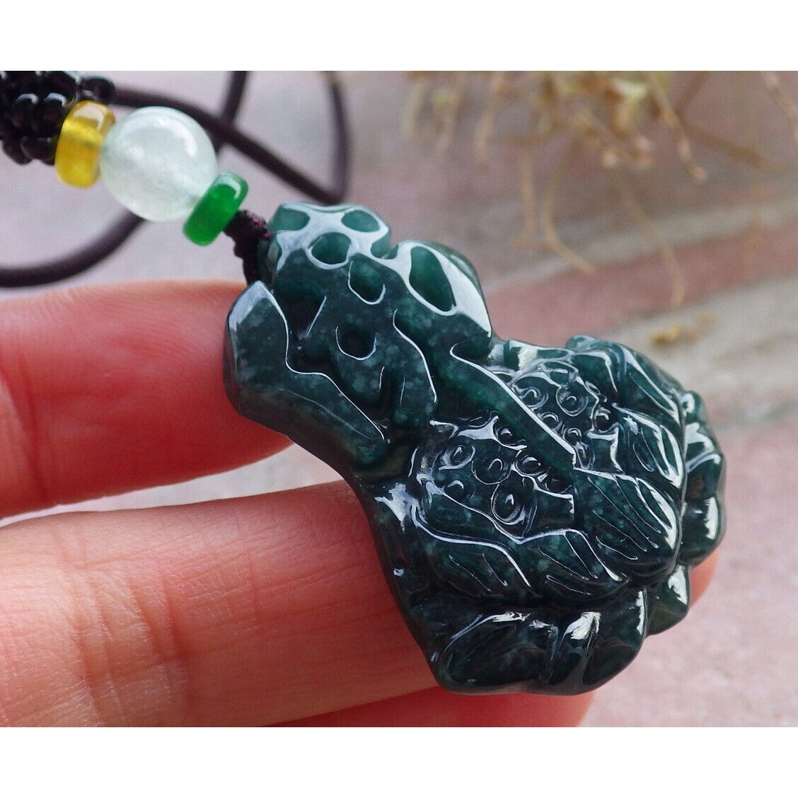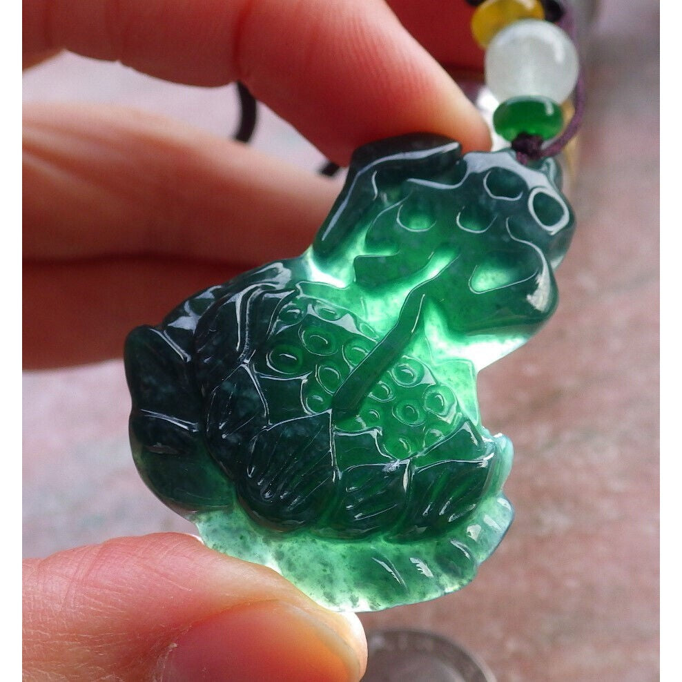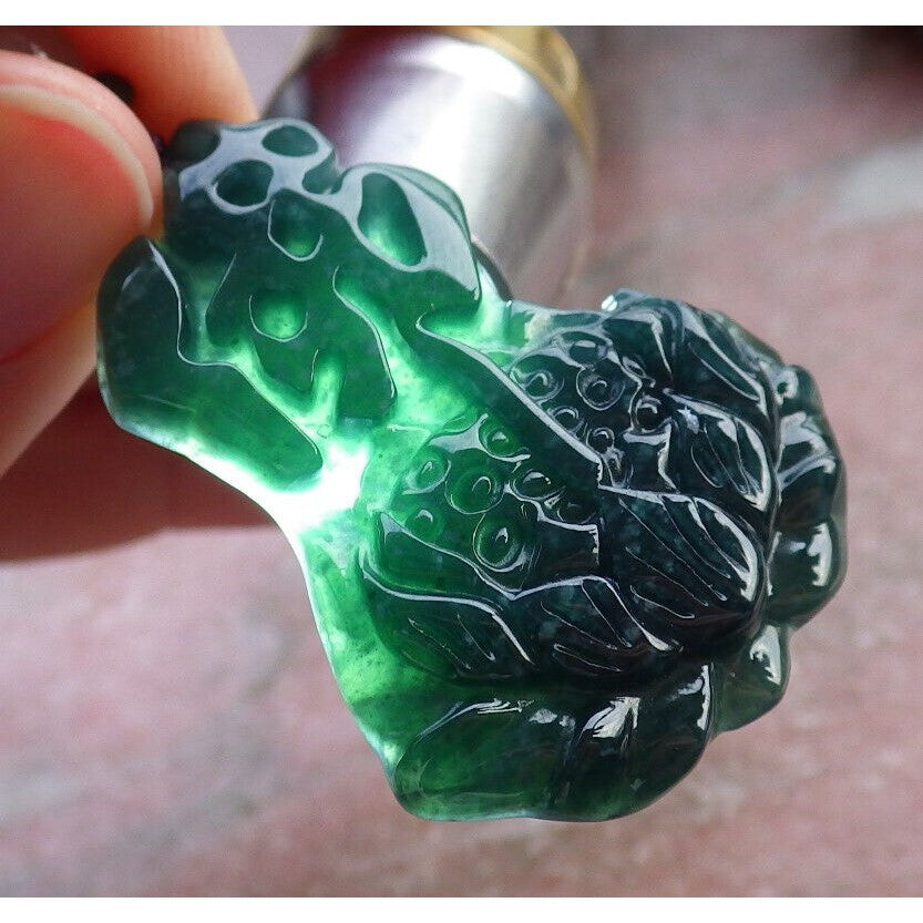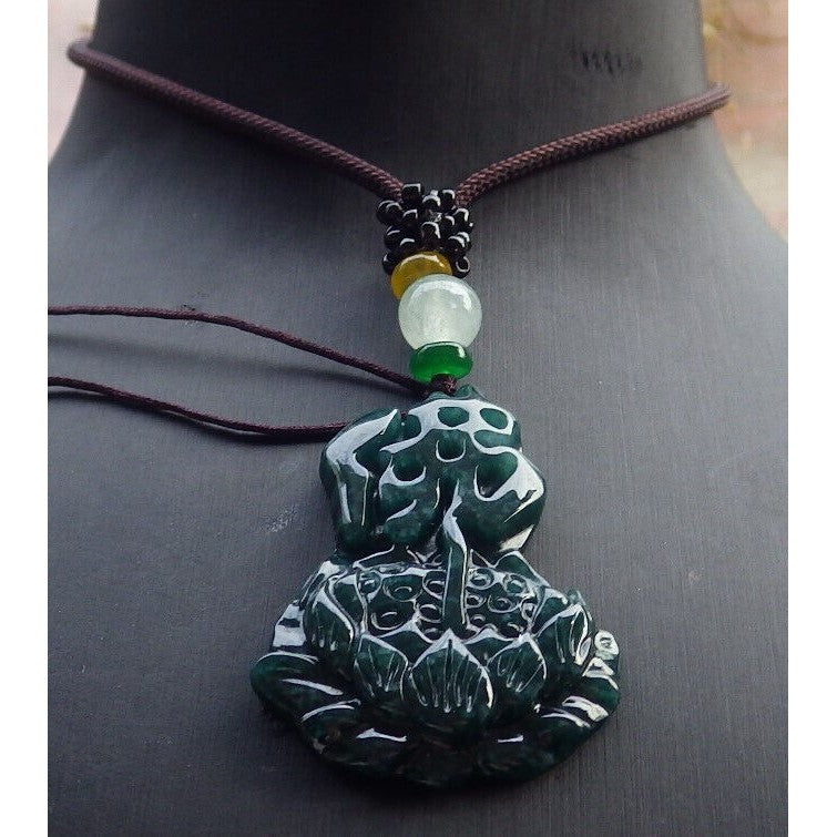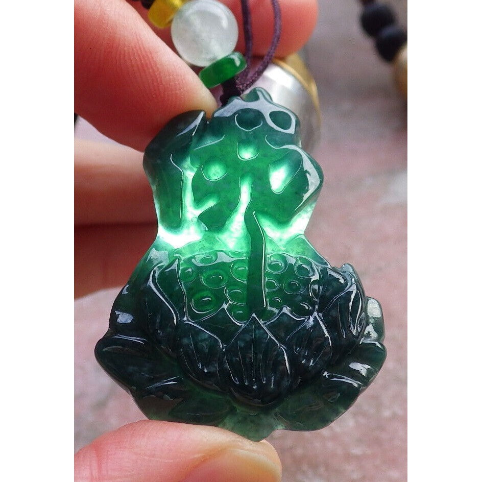 Certified Green Burma Natural A Jade Jadeite Pendant Lotus Flower Buddha