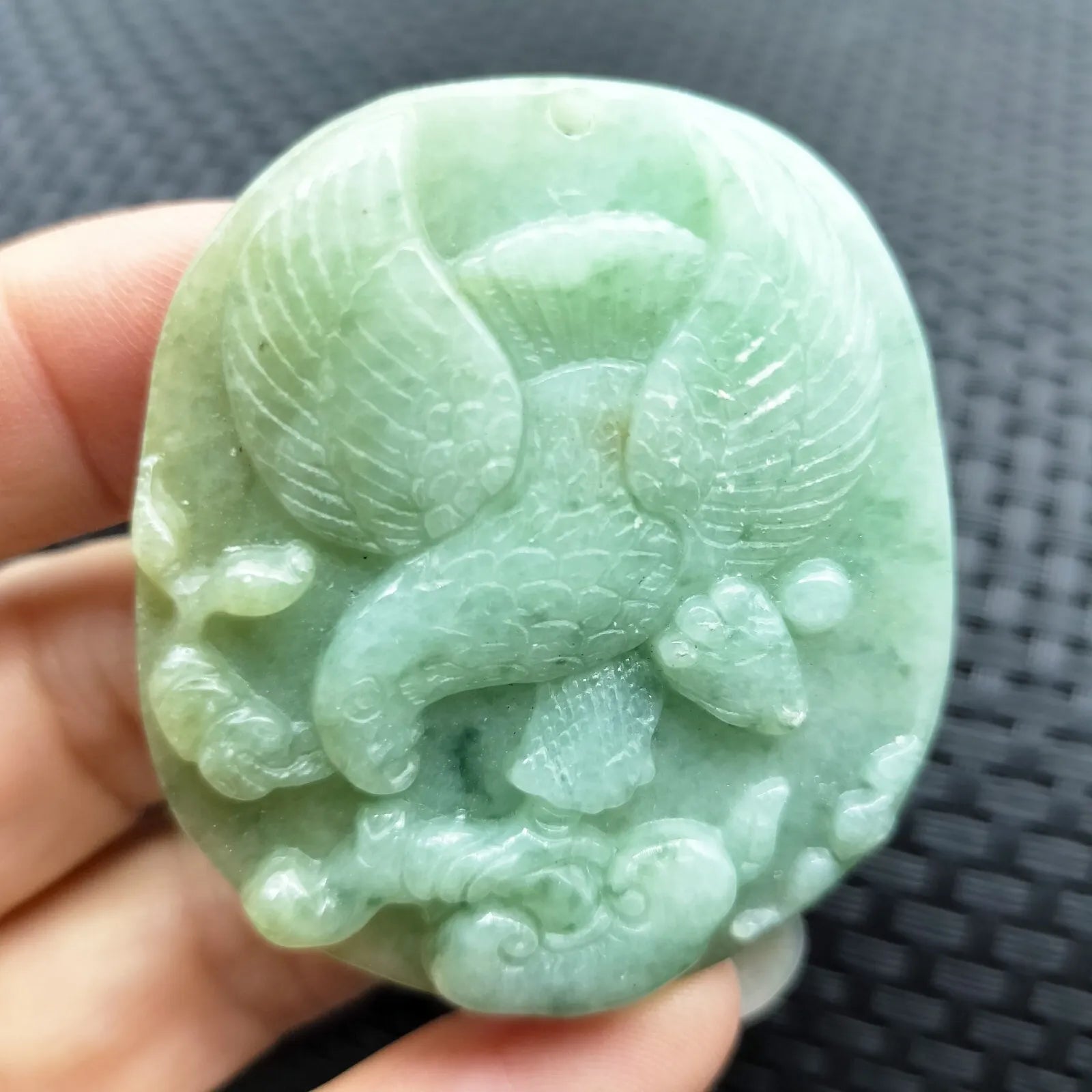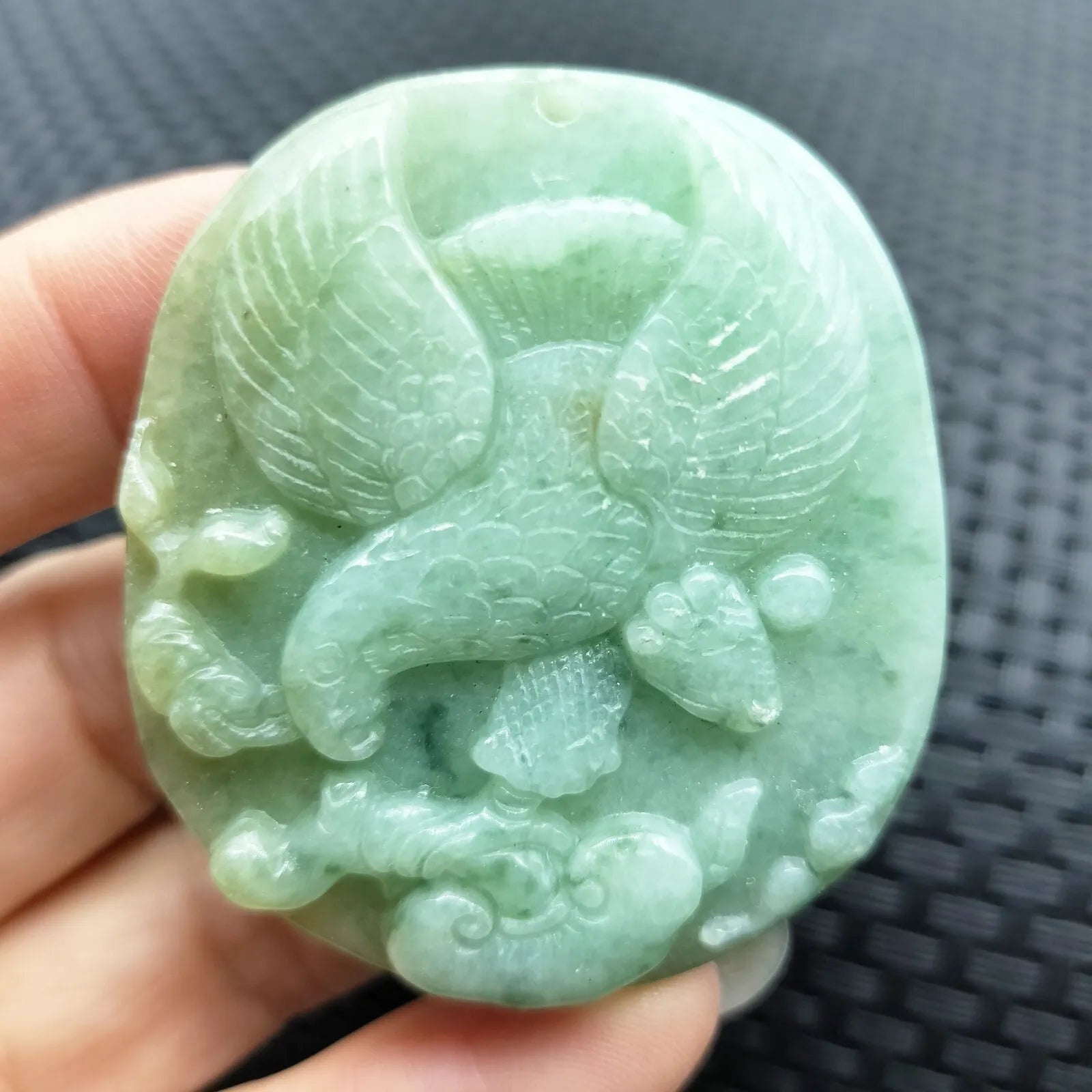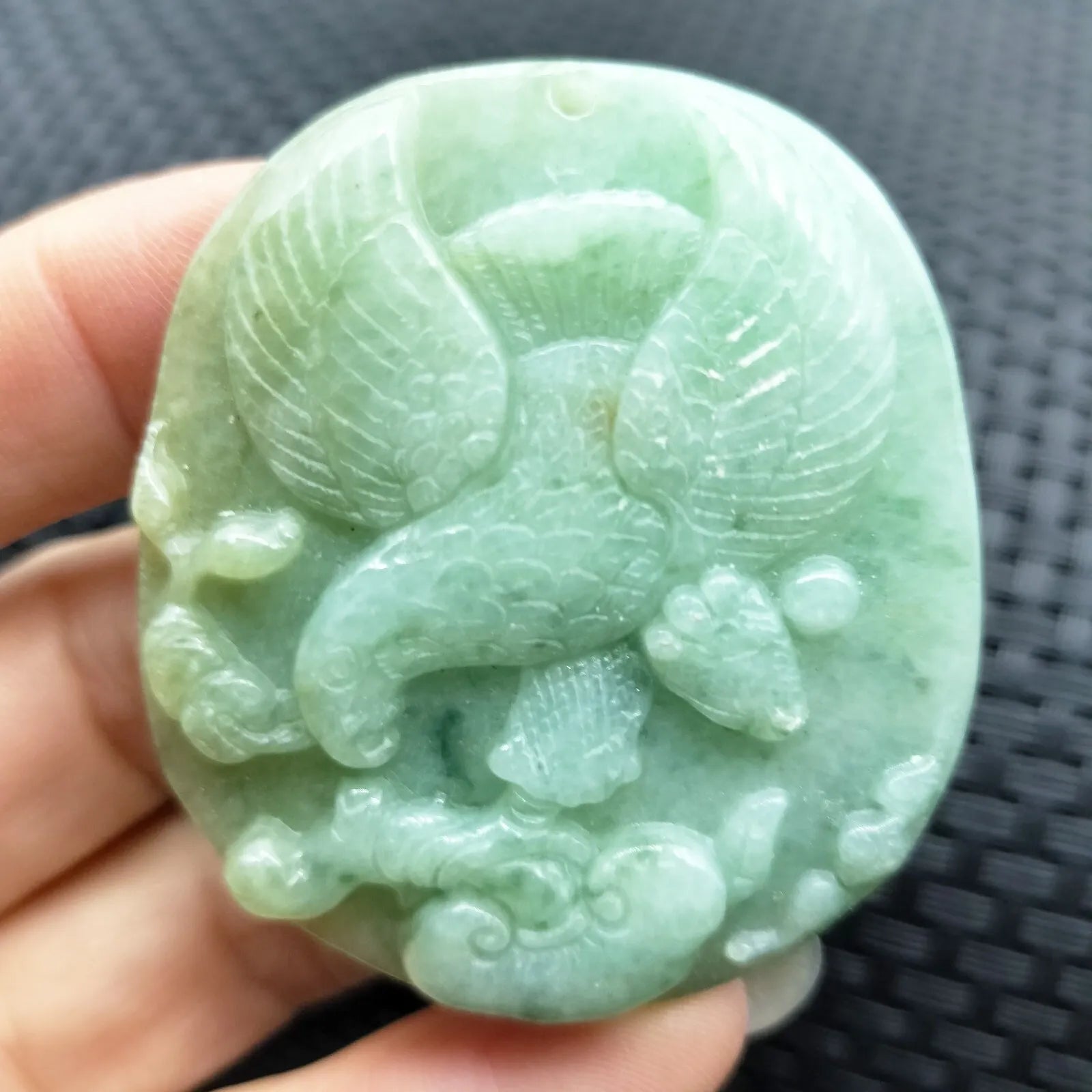 Certified Green Burma Natural Type A Jade Jadeite Carved Eagle Ruyi Pendant