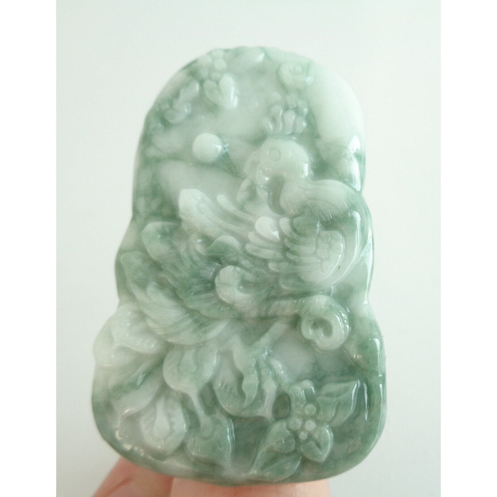 Certified Green Burma Natural Type A Jade Jadeite Carved Peacock Ruyi Pendant