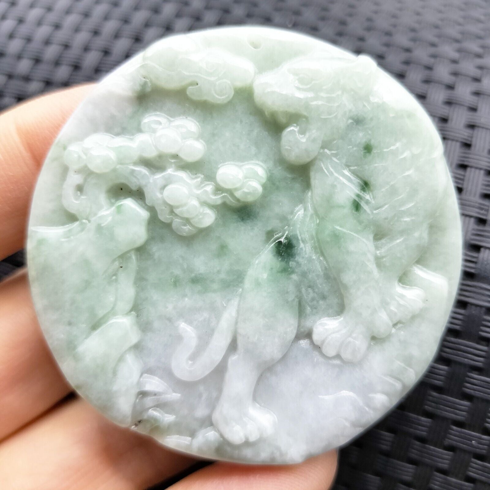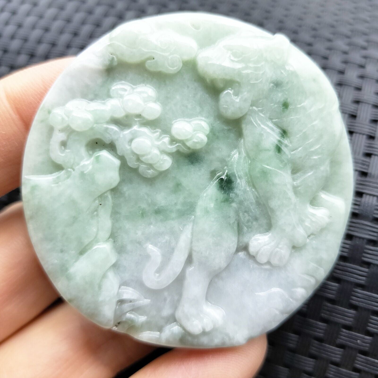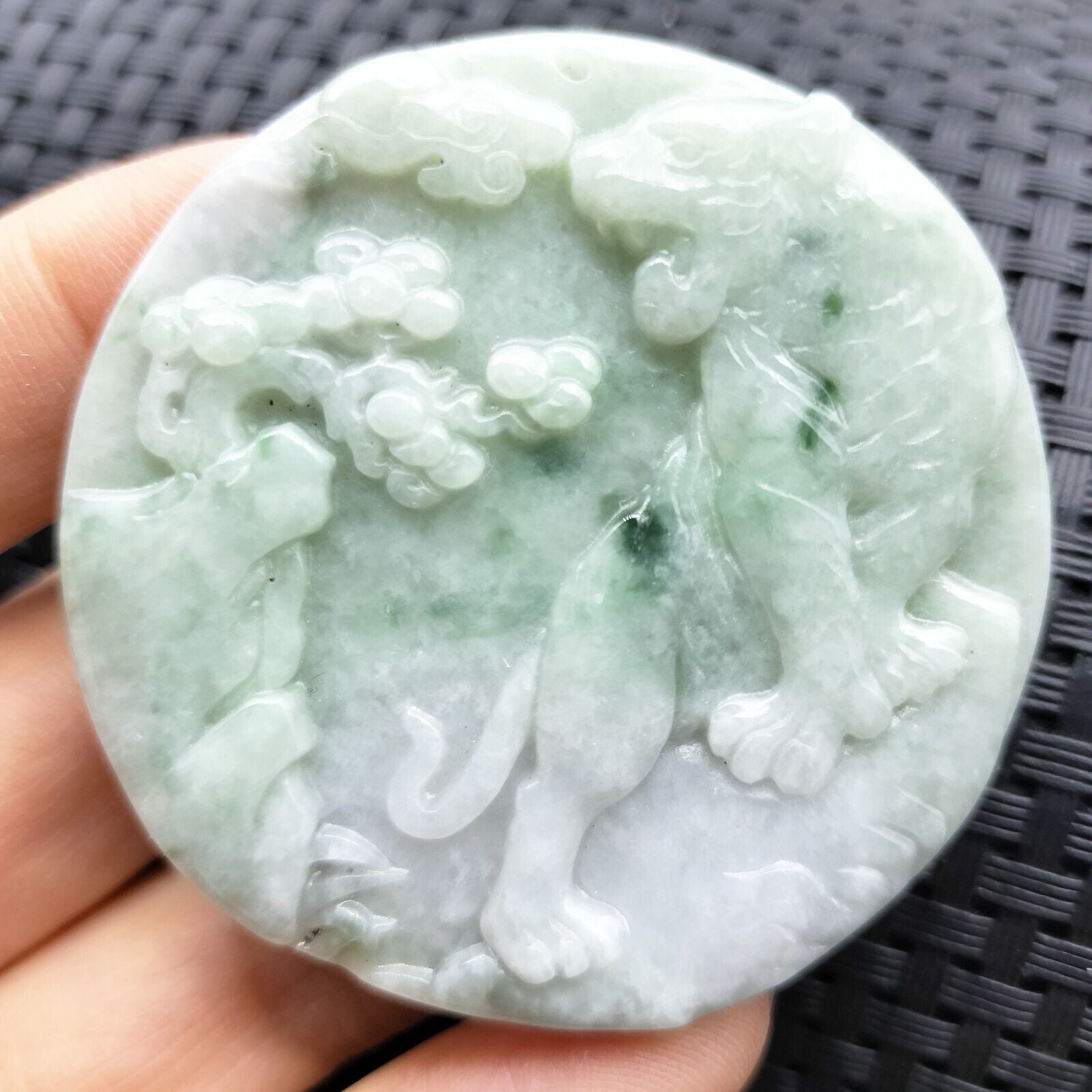 Certified Green Lavender Natural A Jadeite Carved Tiger Tree Pendant