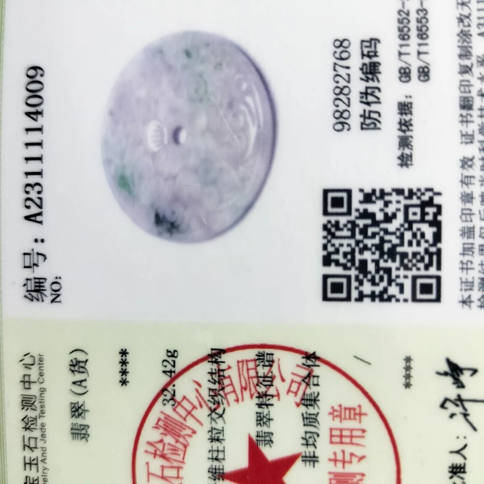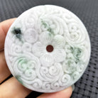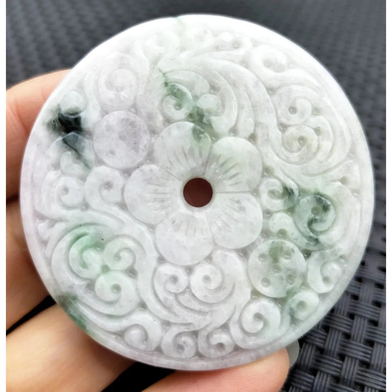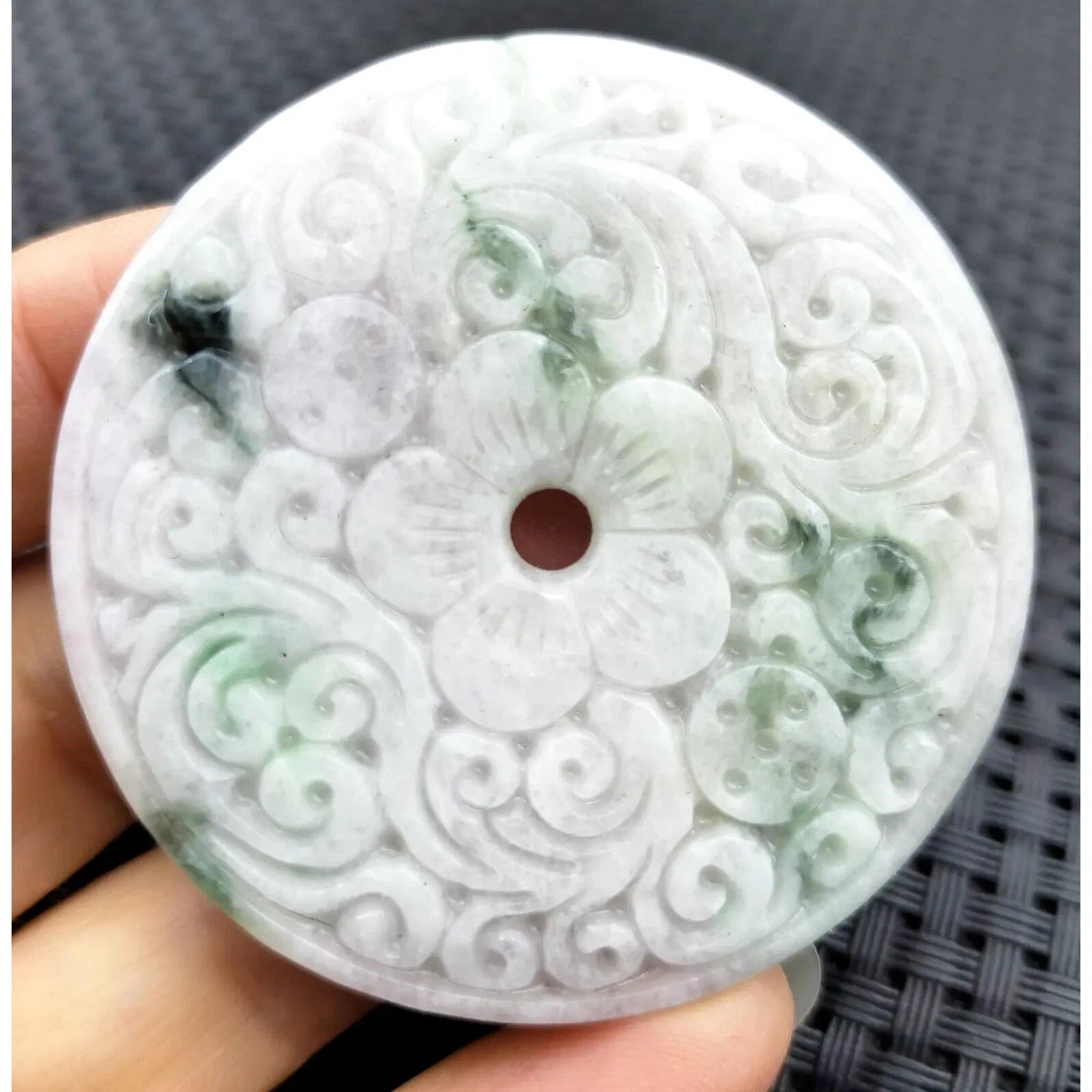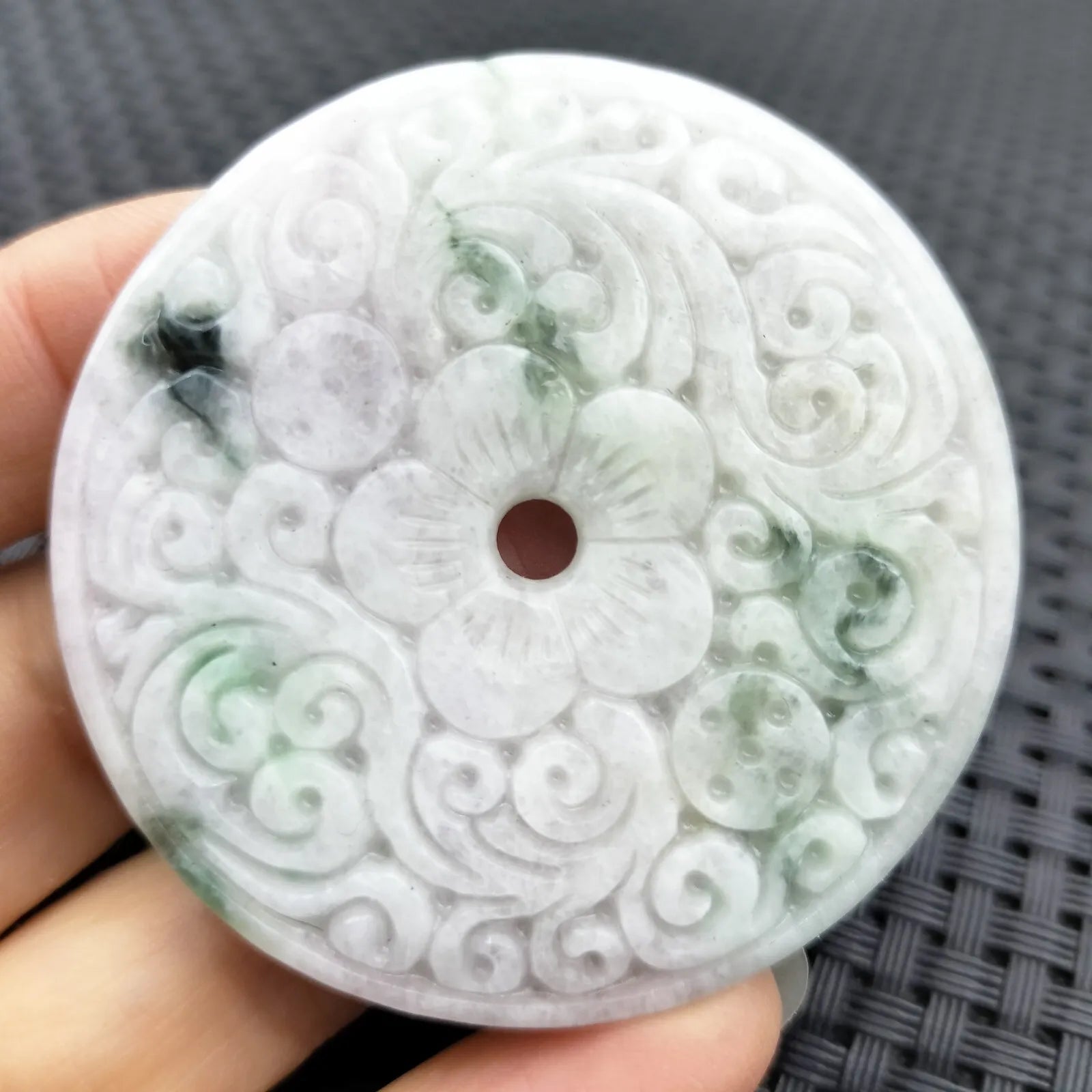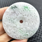 Certified Green Lavender Natural A Jadeite Moire Safety Circle Donut Pendant