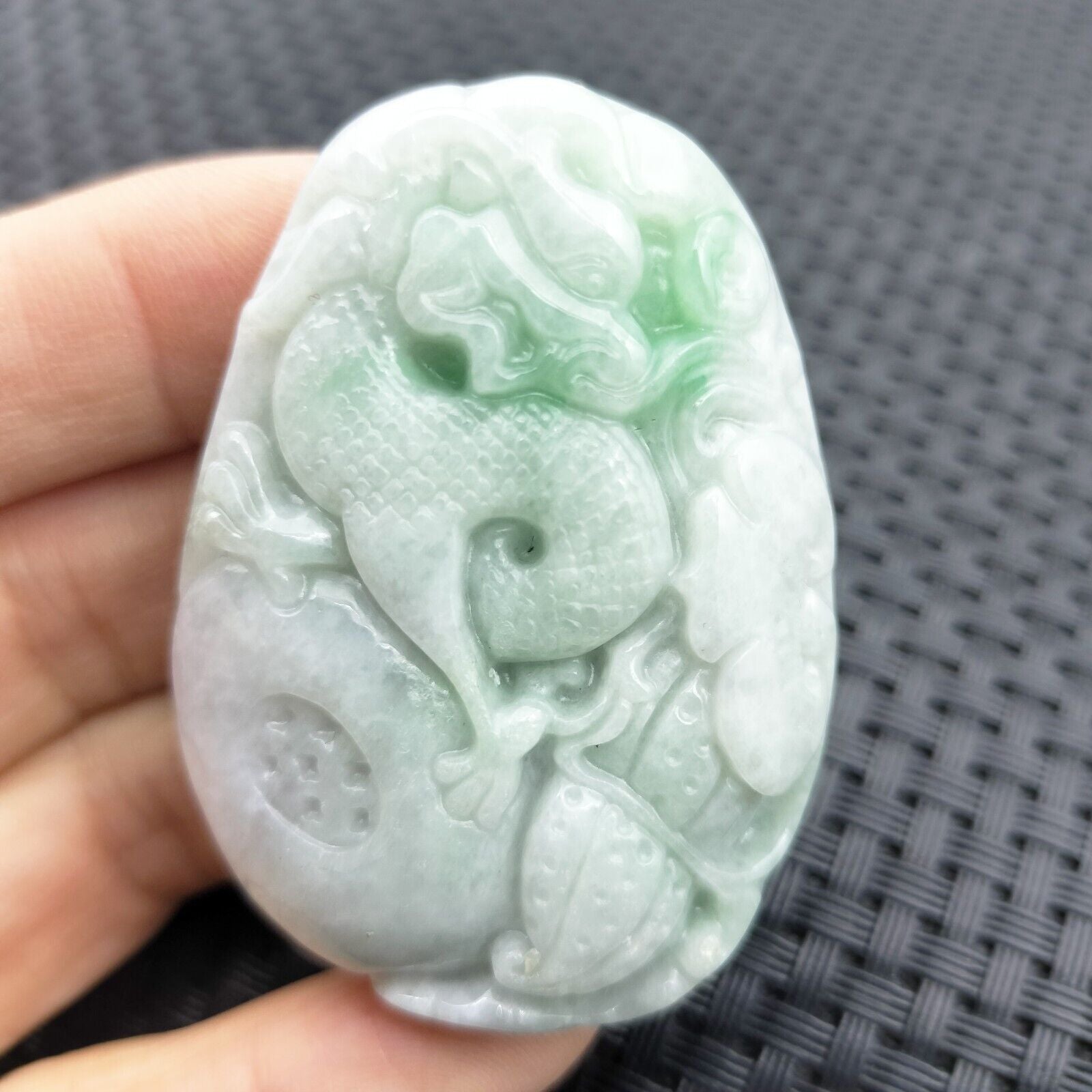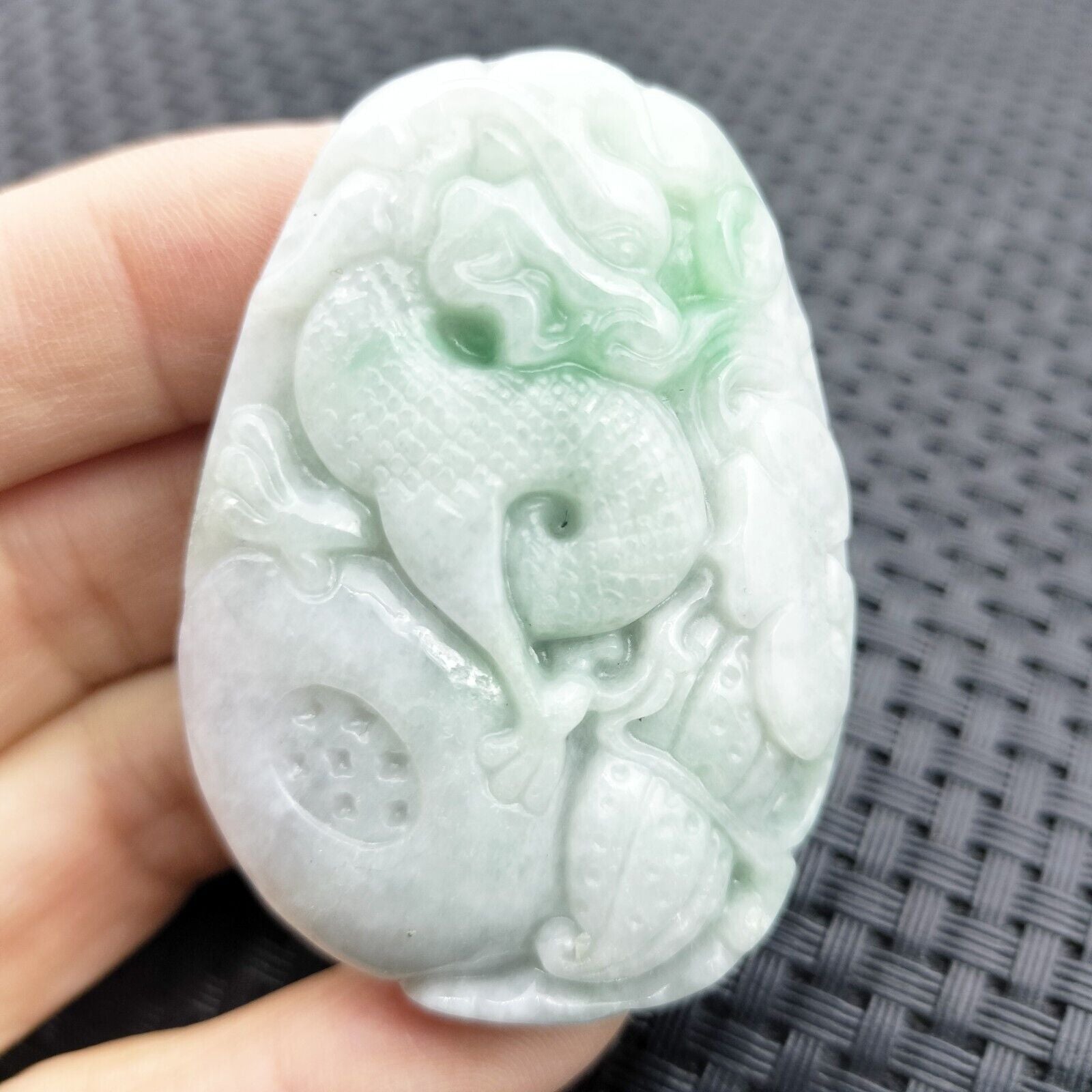 Certified Green Lavender Natural Type A Jade Jadeite Carved Dragon Ruyi Pendant
