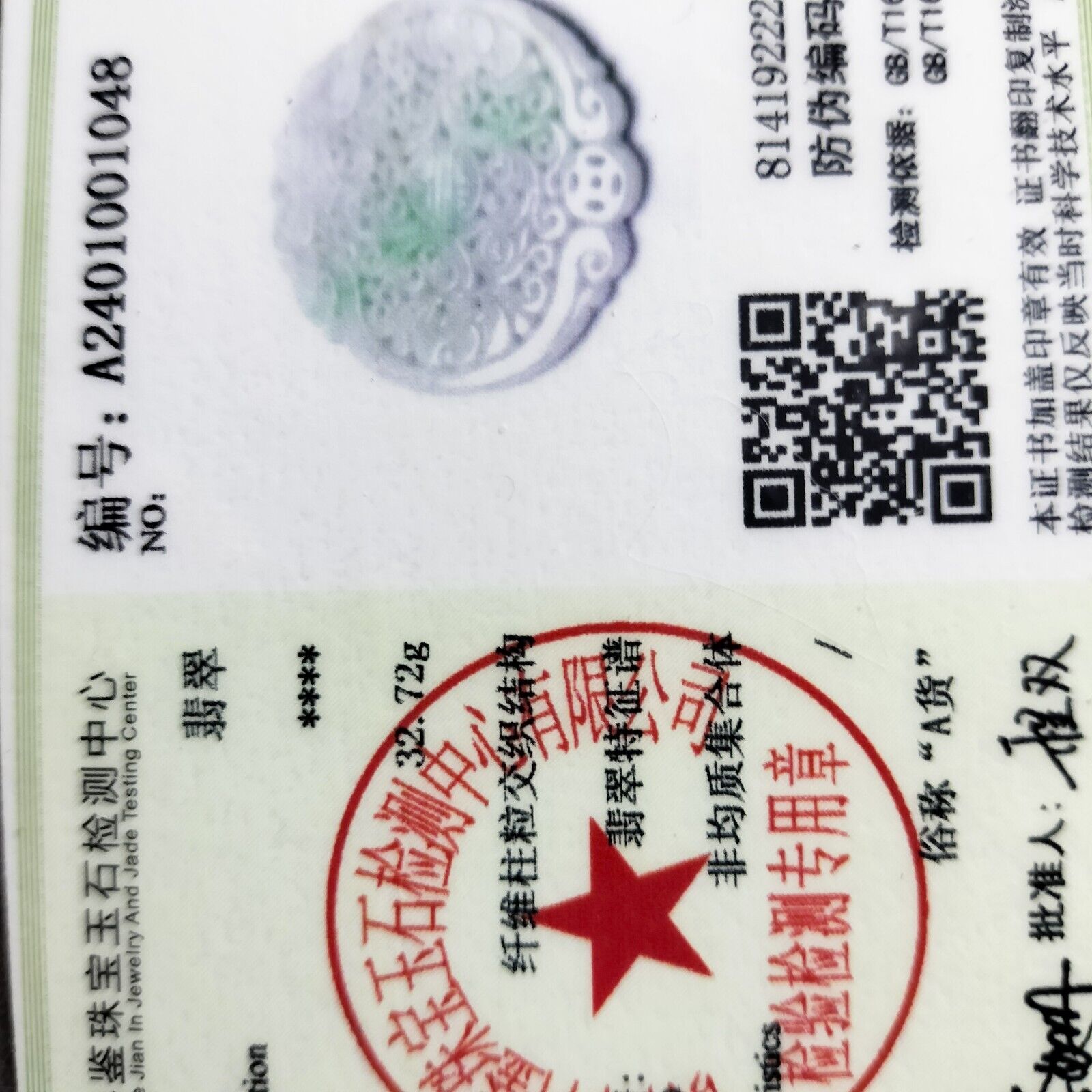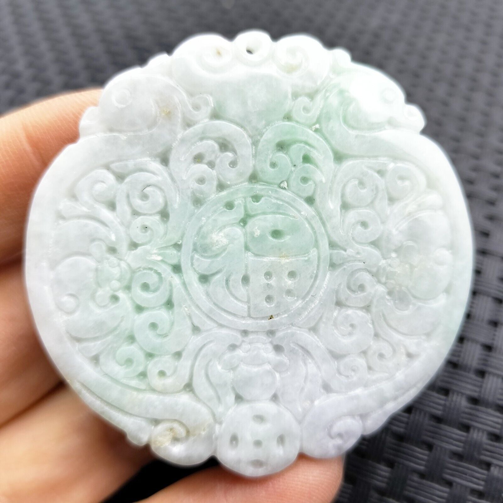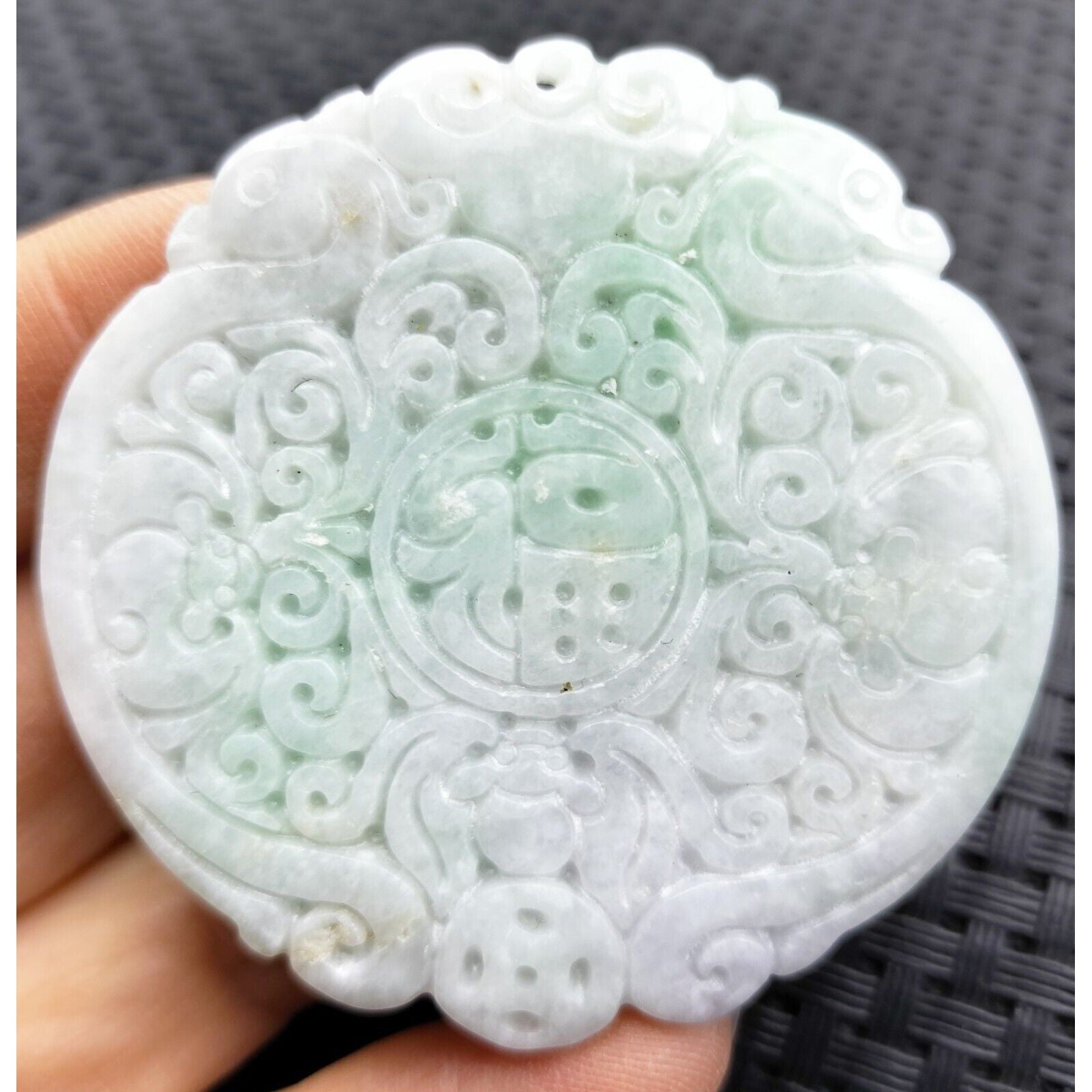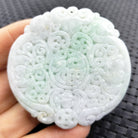 Certified Green Lavender Natural Type A Jadeite Bat Ruyi Coin Blessing Pendant