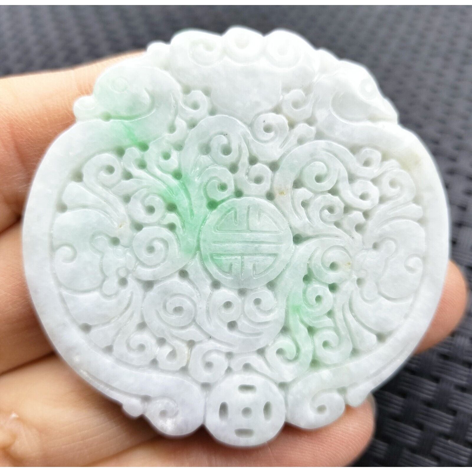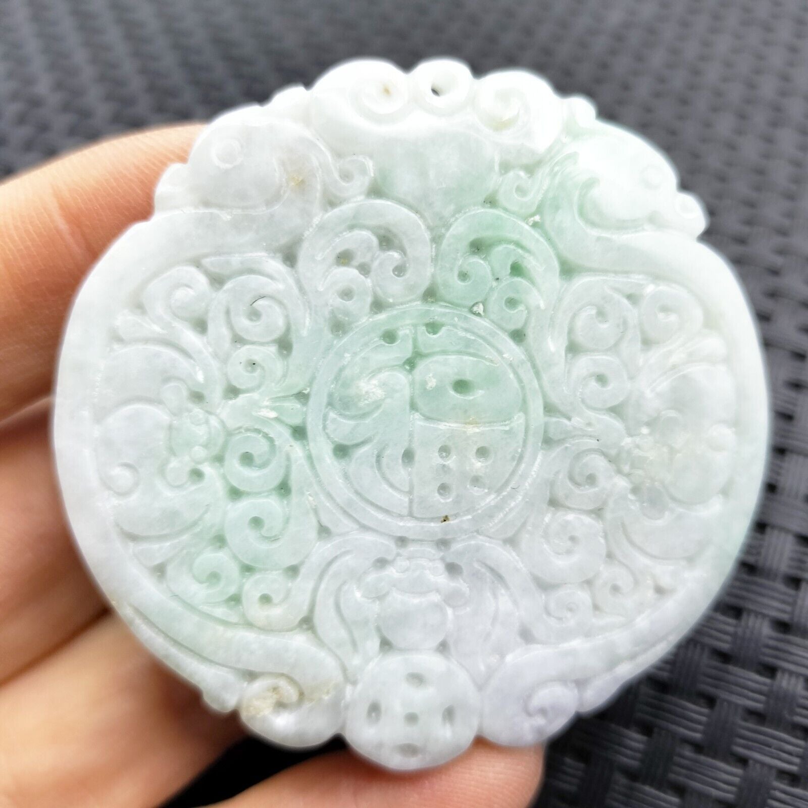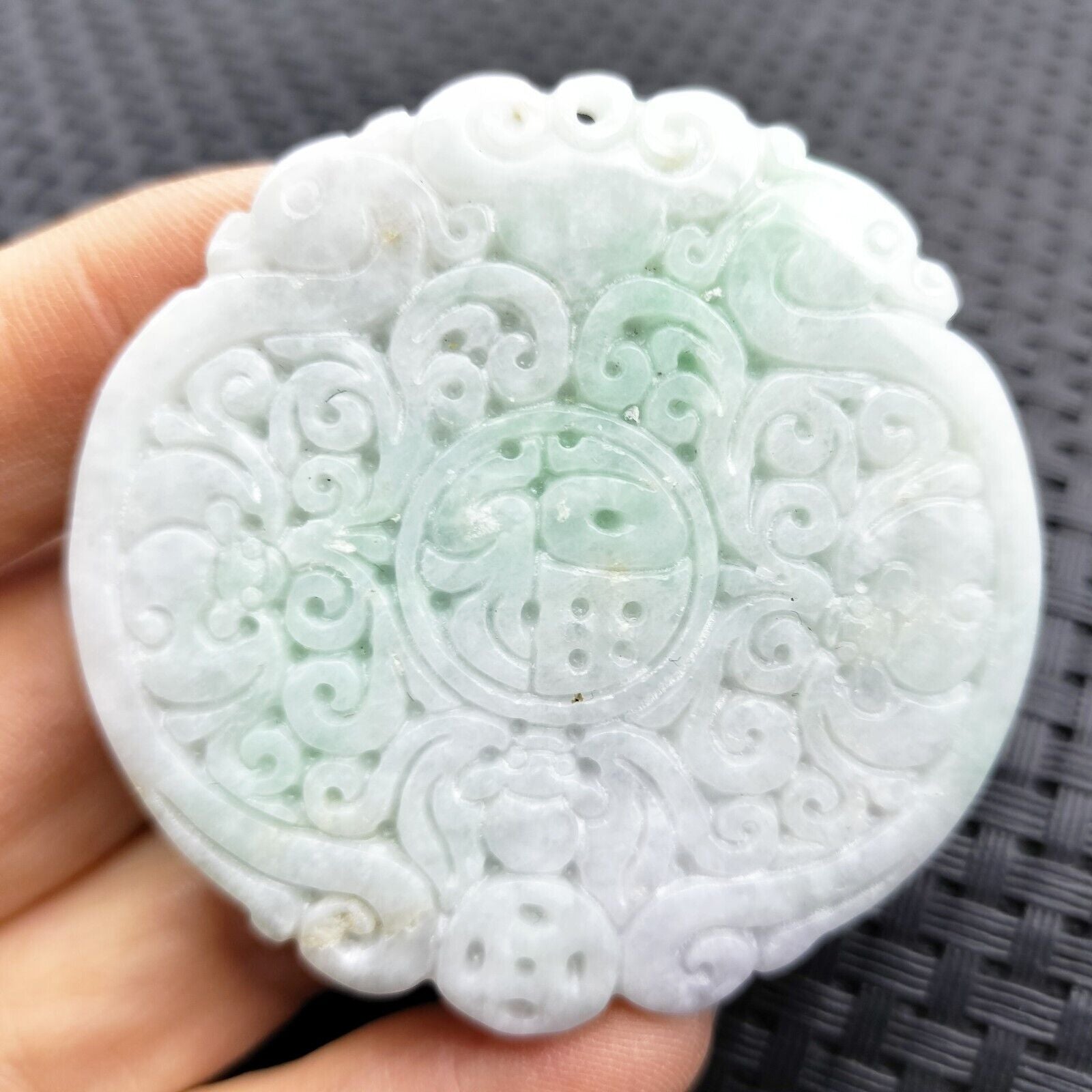 Certified Green Lavender Natural Type A Jadeite Bat Ruyi Coin Blessing Pendant