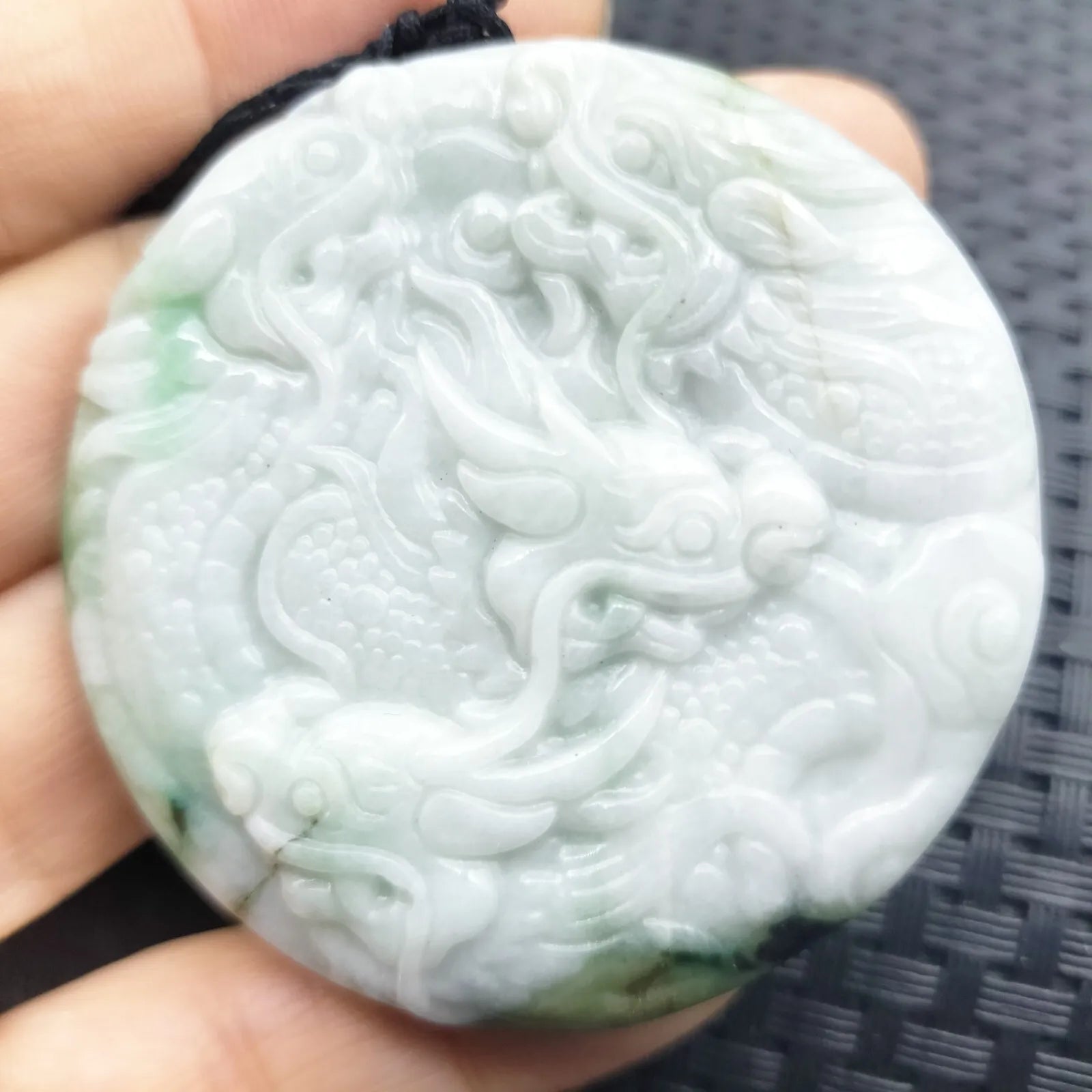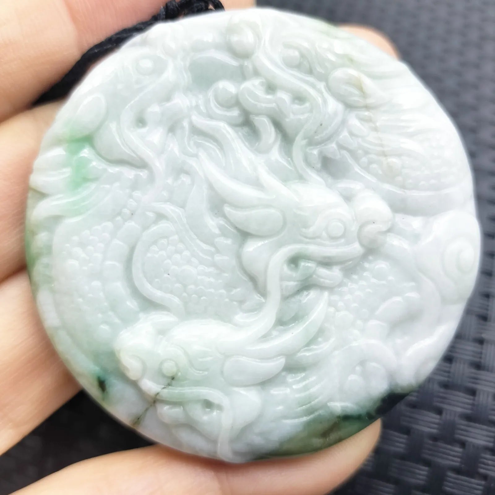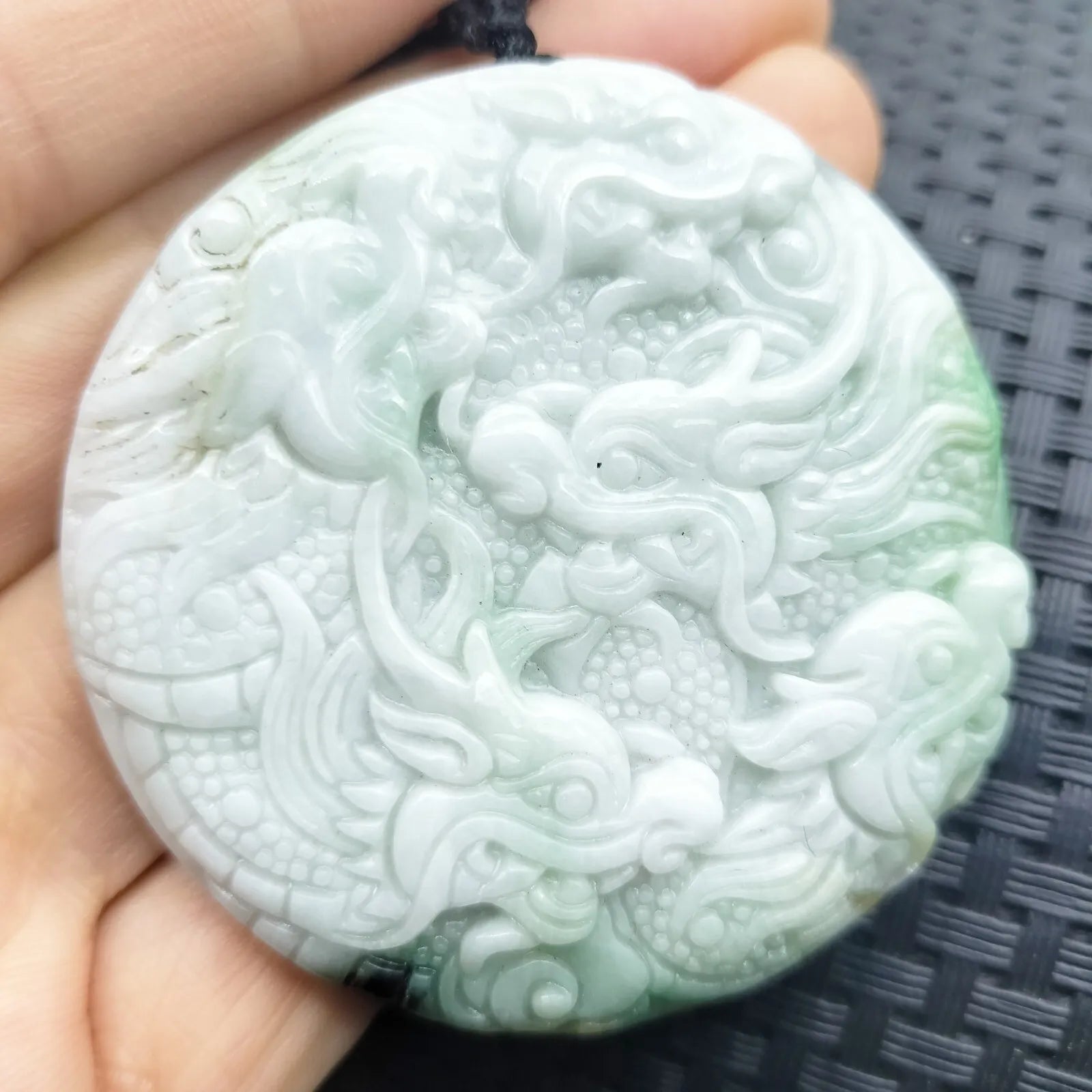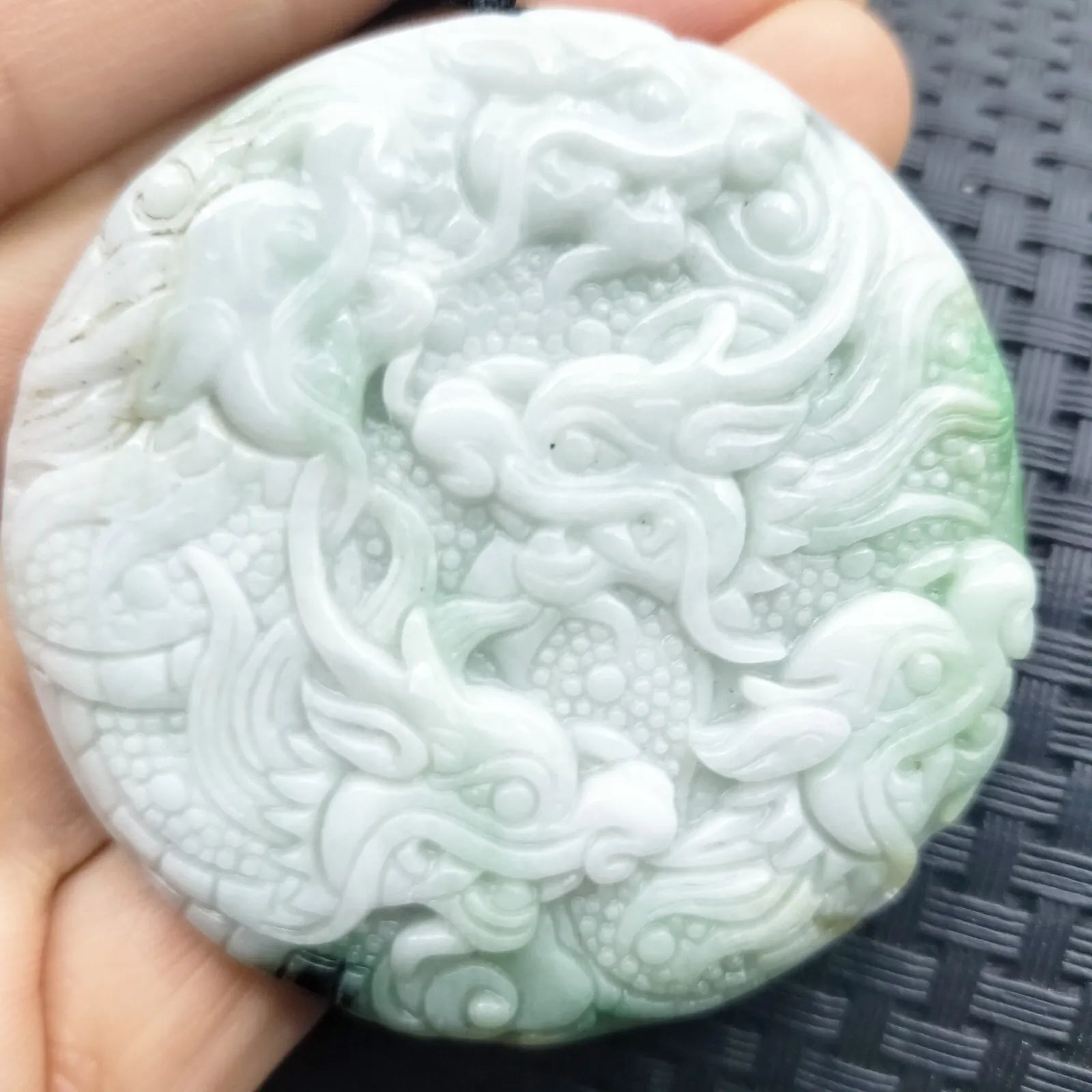Certified Green Lavender Natural Type A Jadeite Carved Nine Dragon Pendant