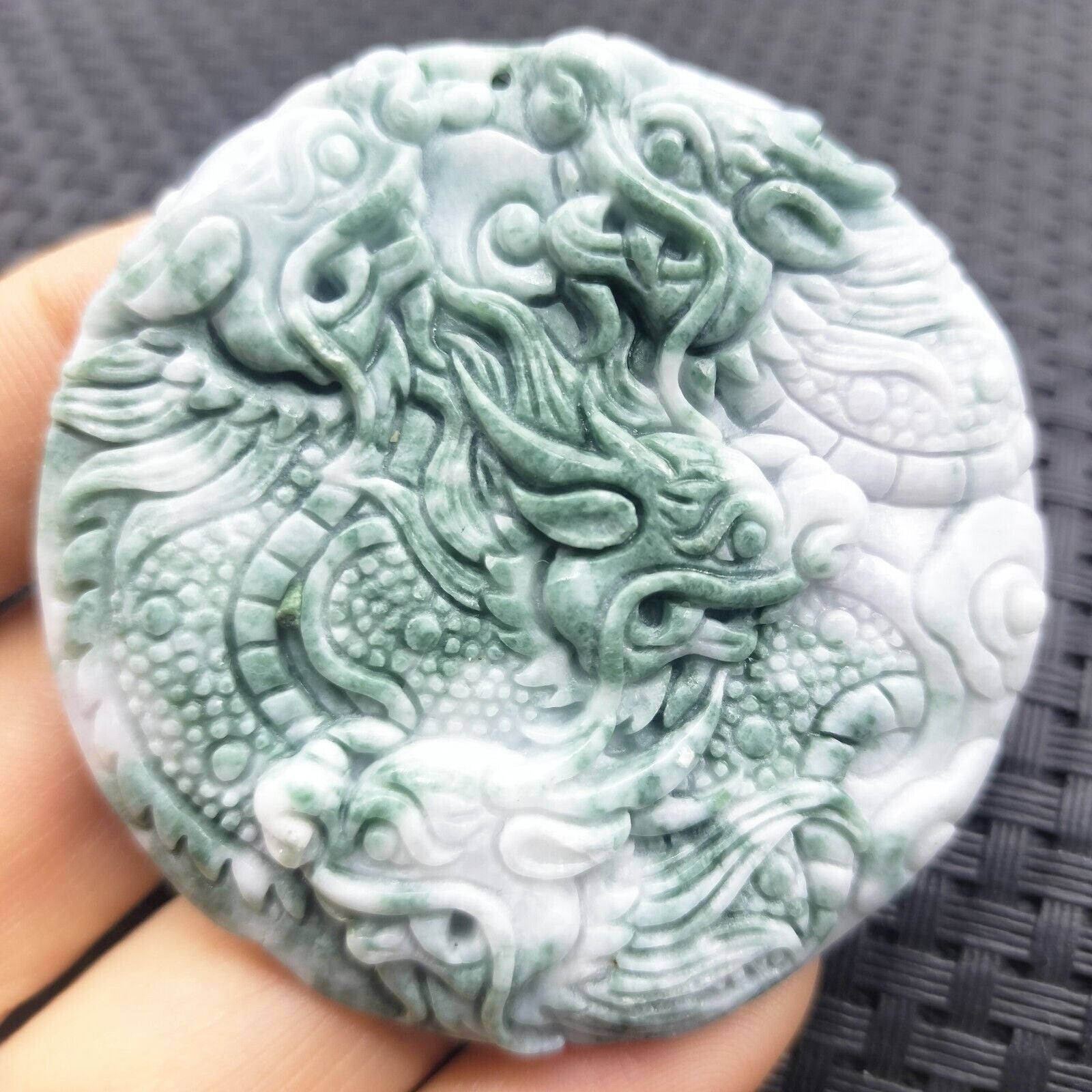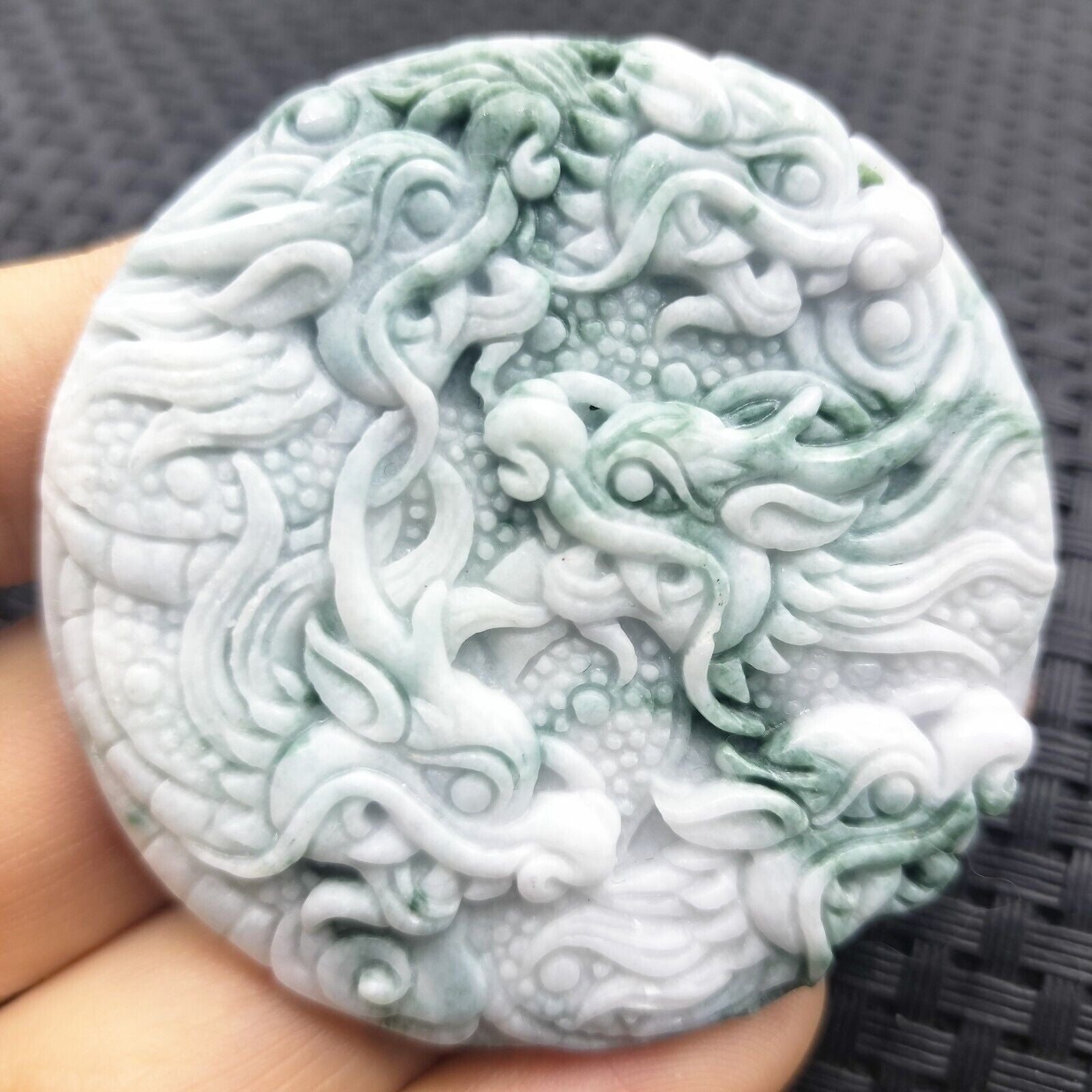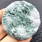 Certified Green Lavender Natural Type A Jadeite Carved Nine Dragons Pendant