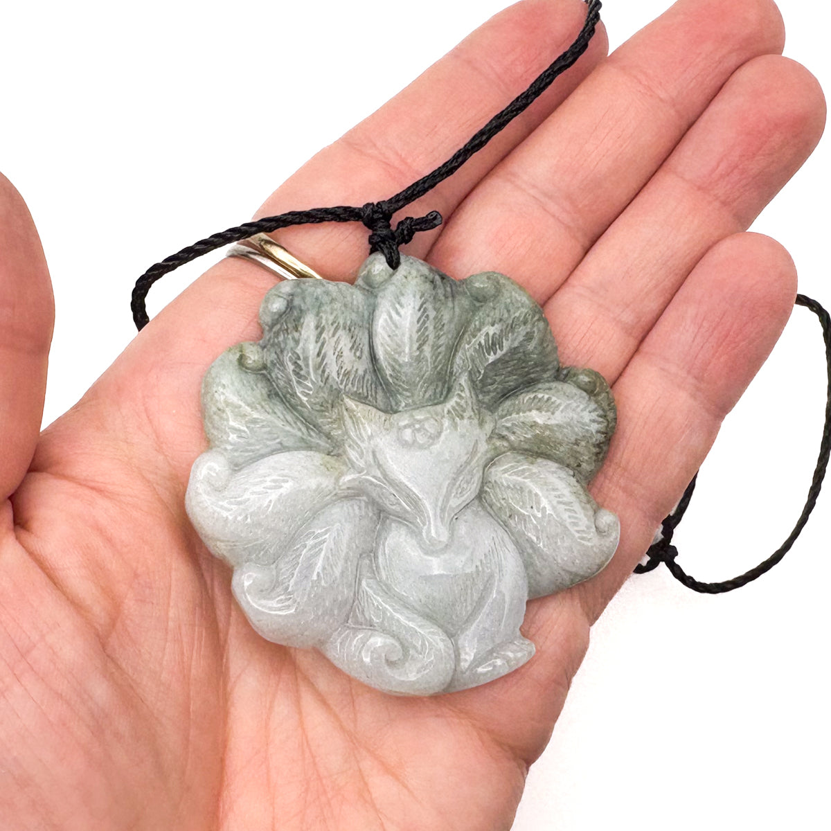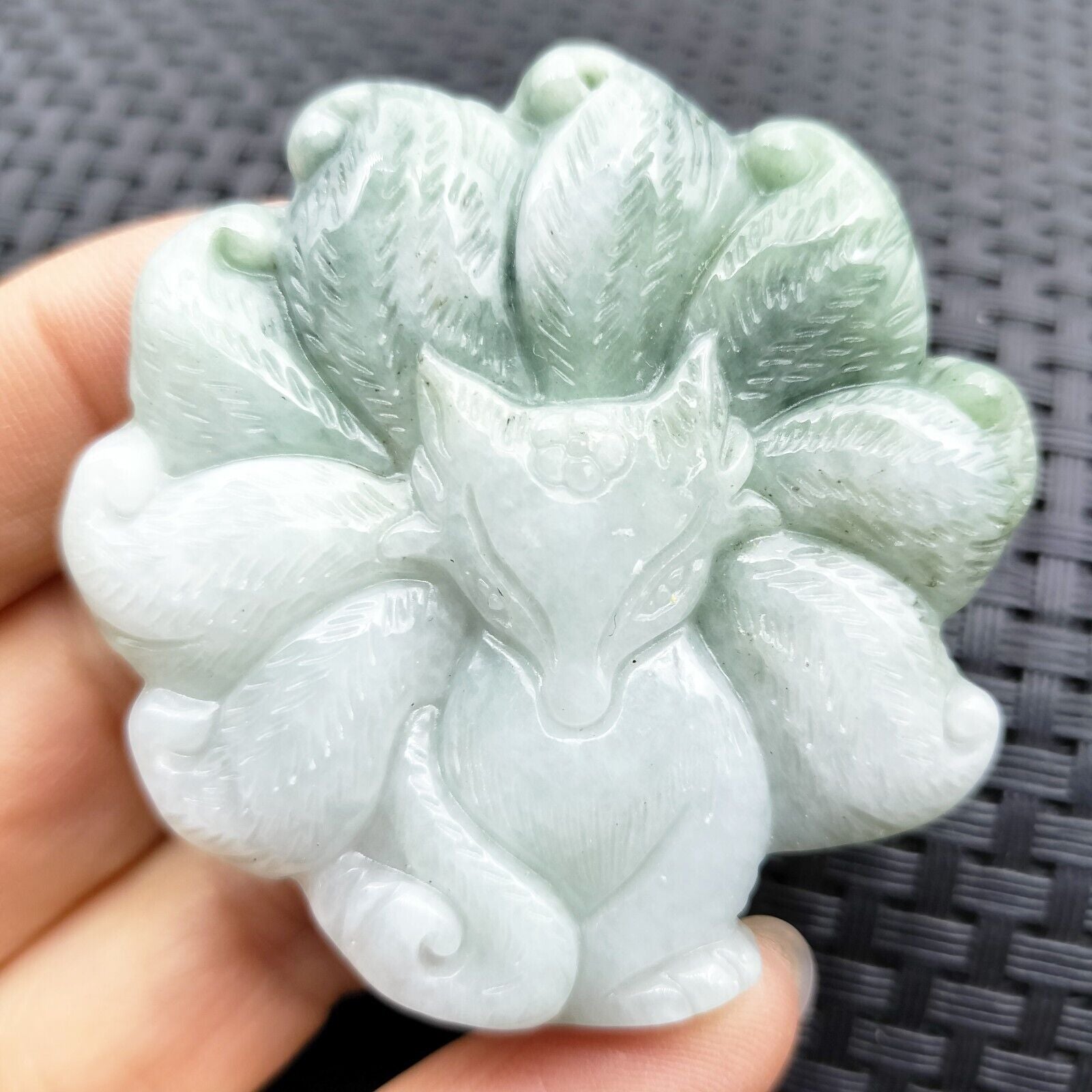 Certified Green Lavender Natural Type A Jadeite Nine-Tailed Fox Pendant