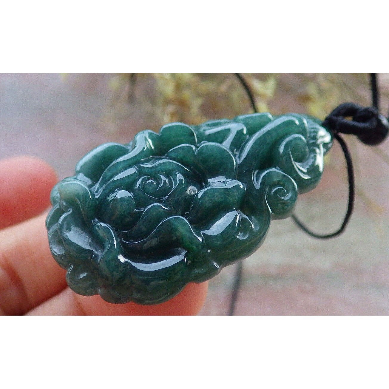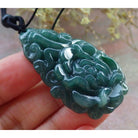 Certified Green Natural A Jade Jadeite Pendant Rose Ruyi Flower Necklace