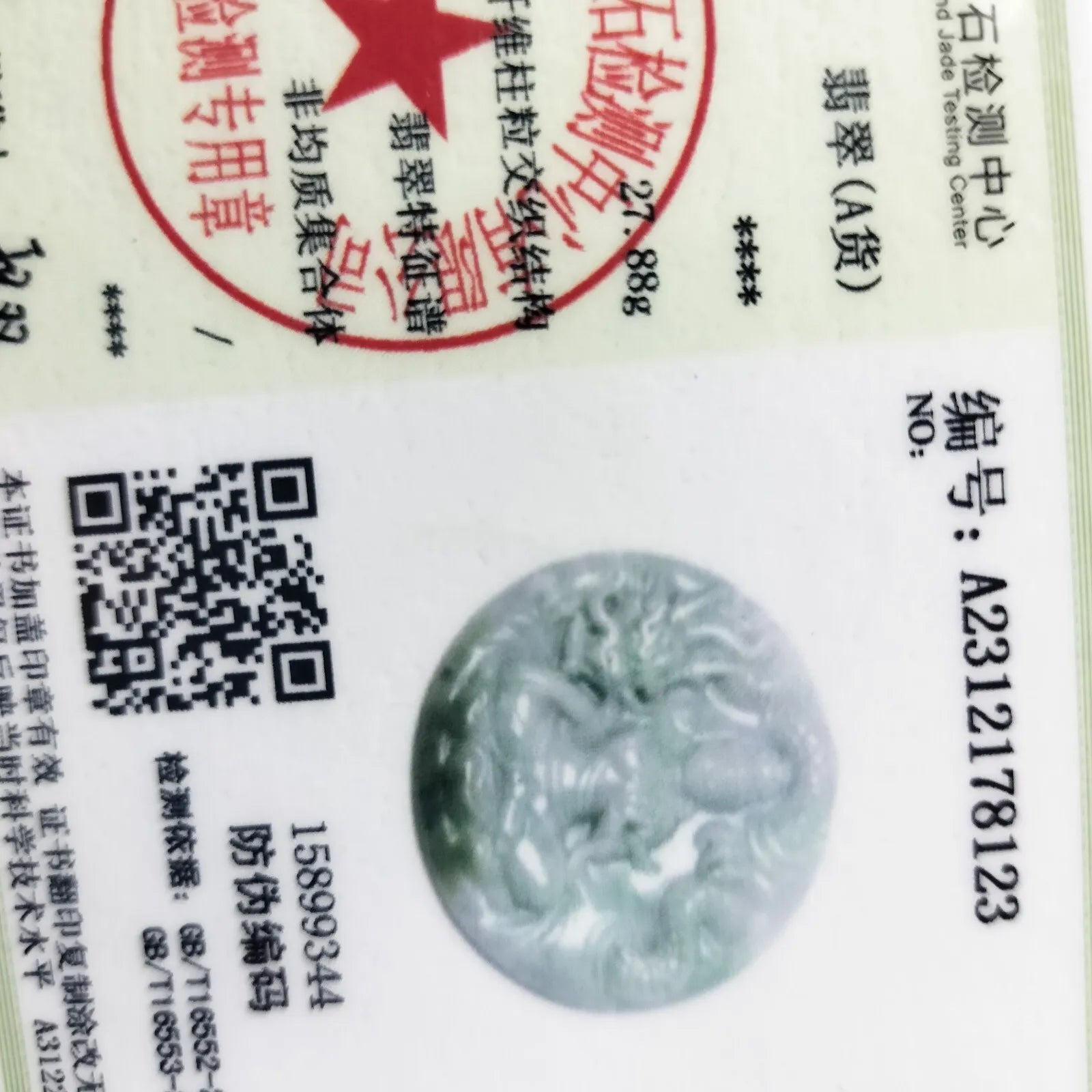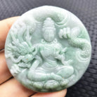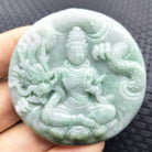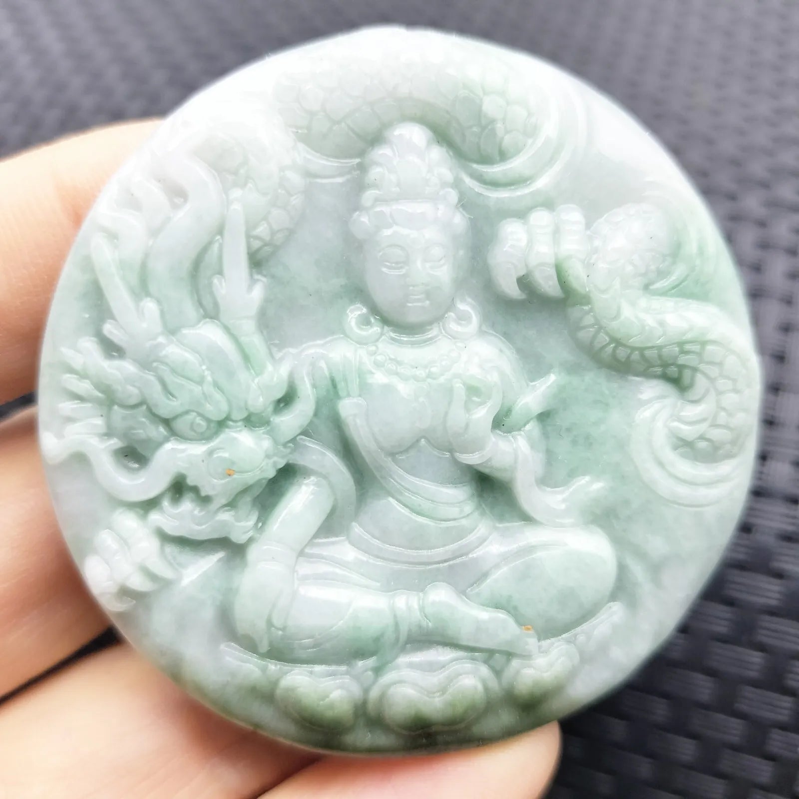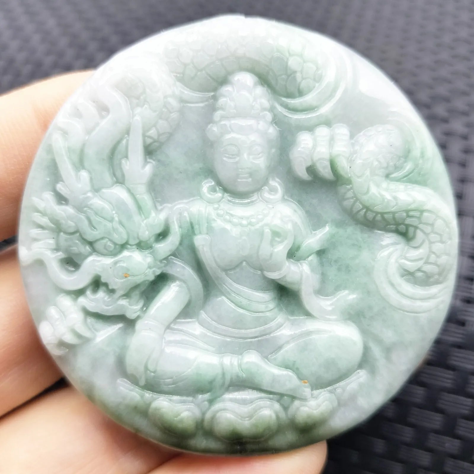 Certified Green Natural A Jadeite Carved Guanyin Kwan Yin God Dragon Pendant