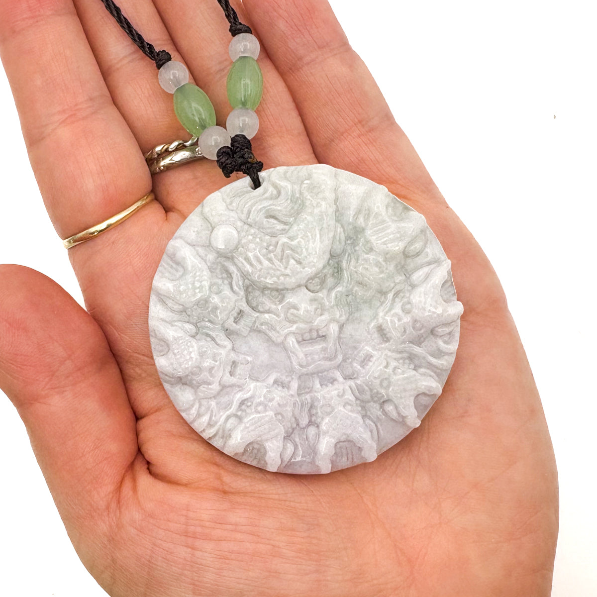 Certified Green Natural Type A Jade Jadeite Carved 9 Dragons Pendant