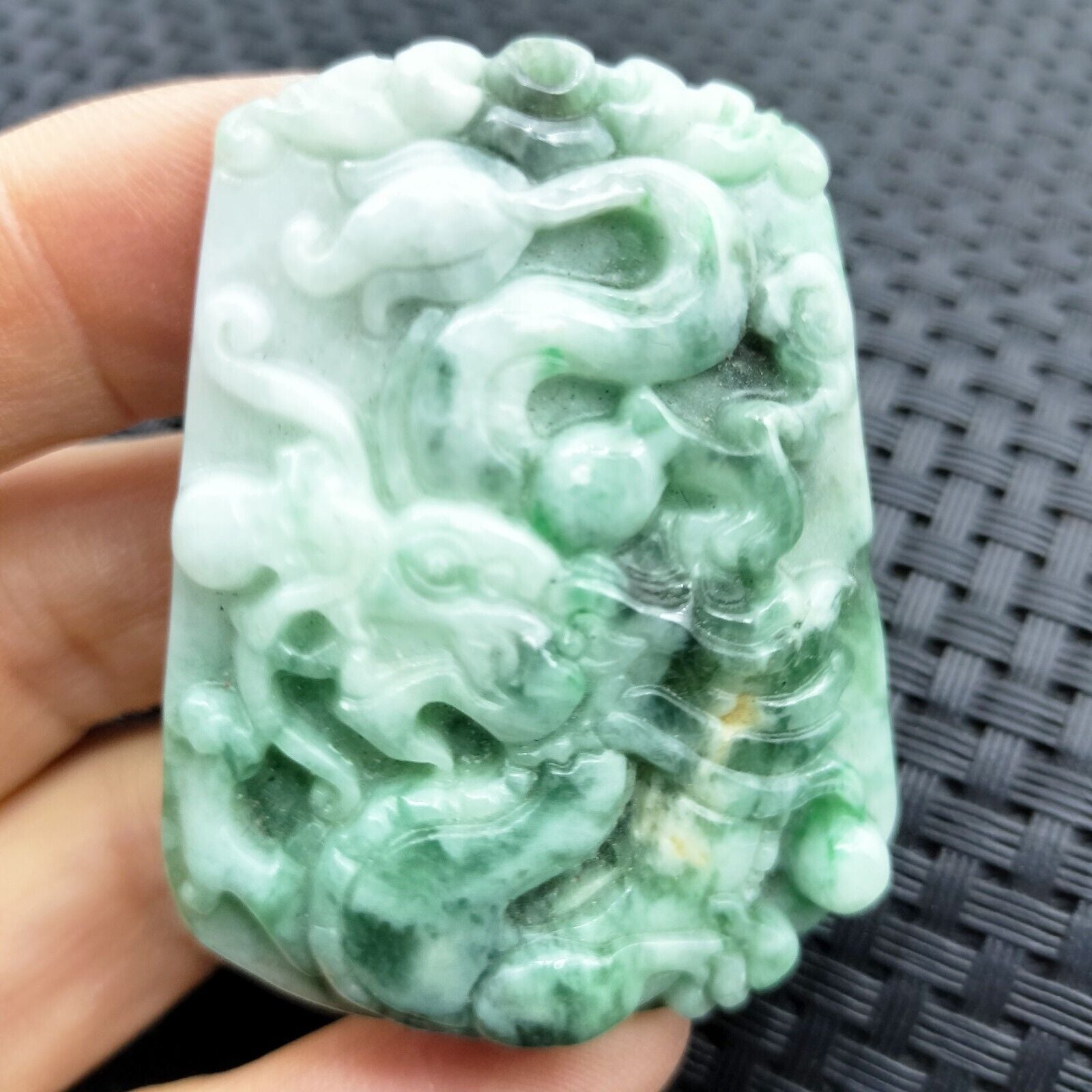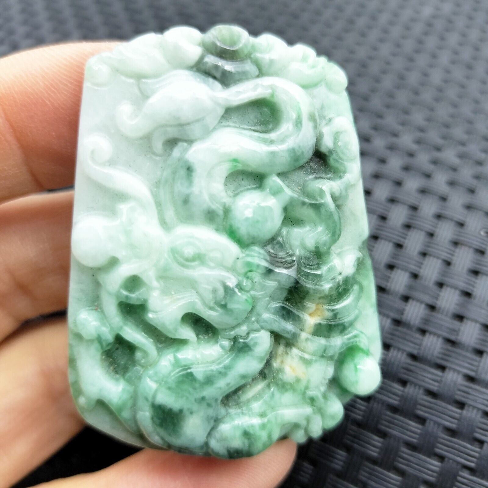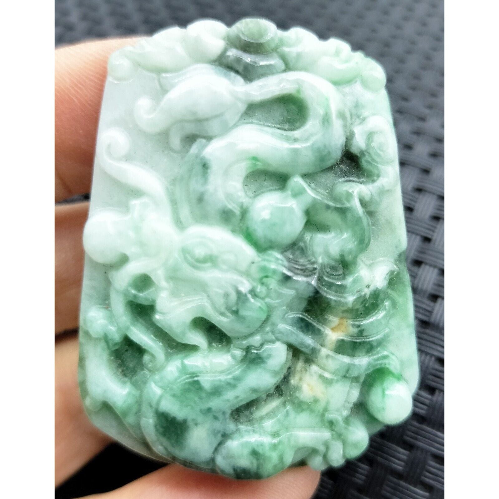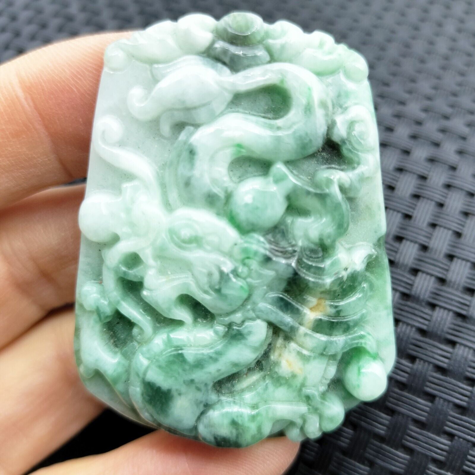 Certified Green Natural Type A Jade Jadeite Carved Dragon Bead Pendant