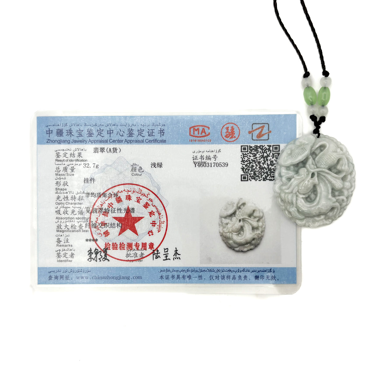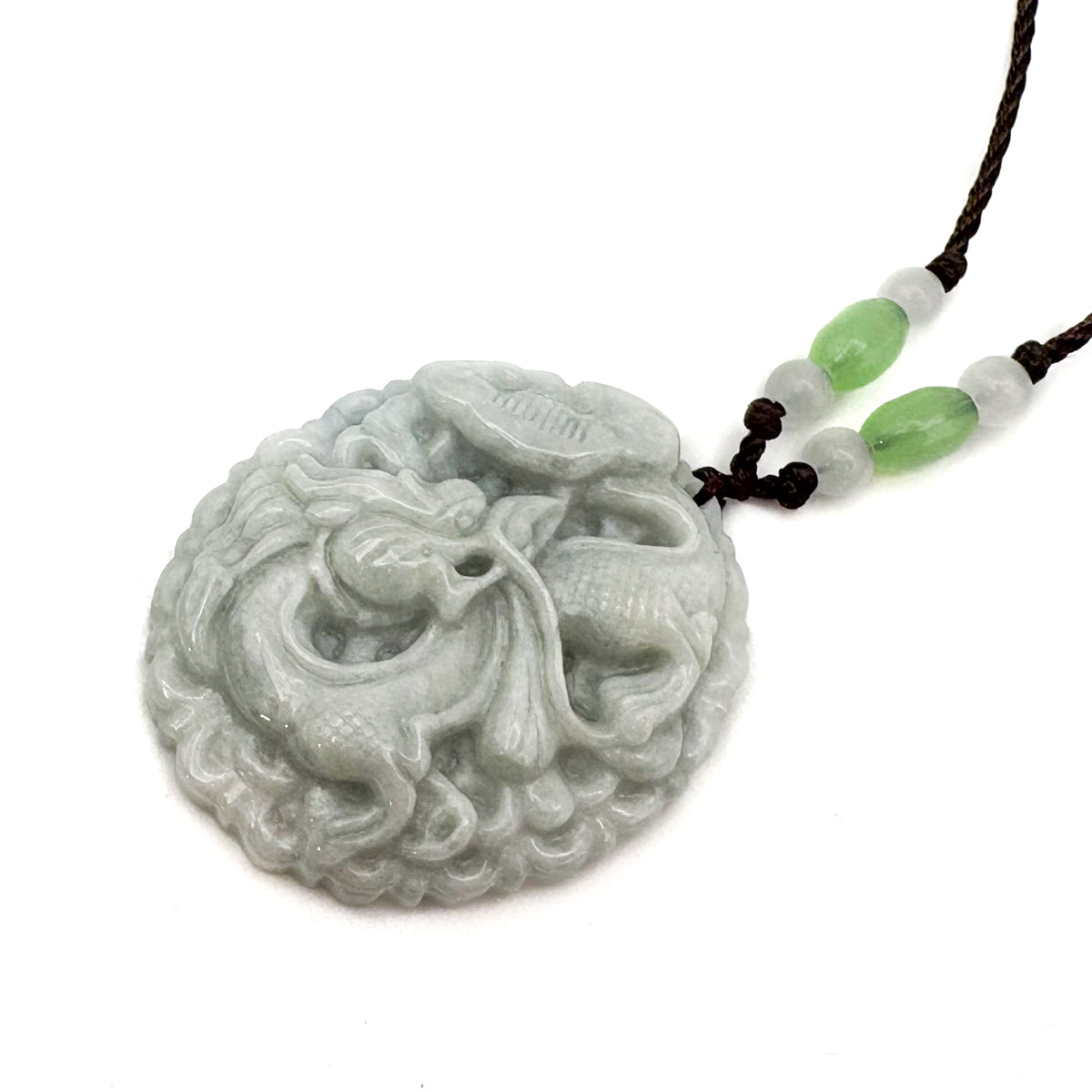 Certified Green Natural Type A Jade Jadeite Carved Dragon Ruyi Pendant