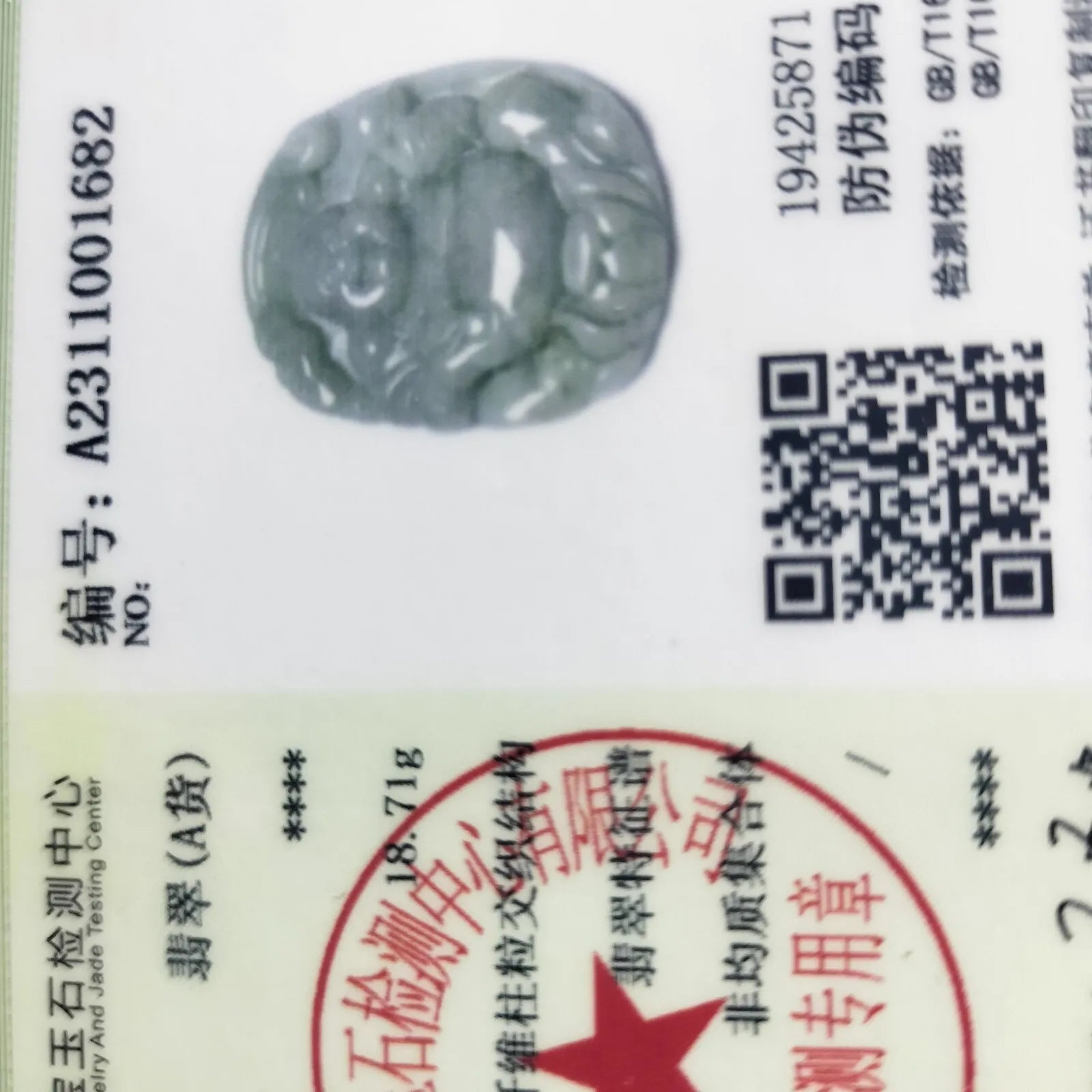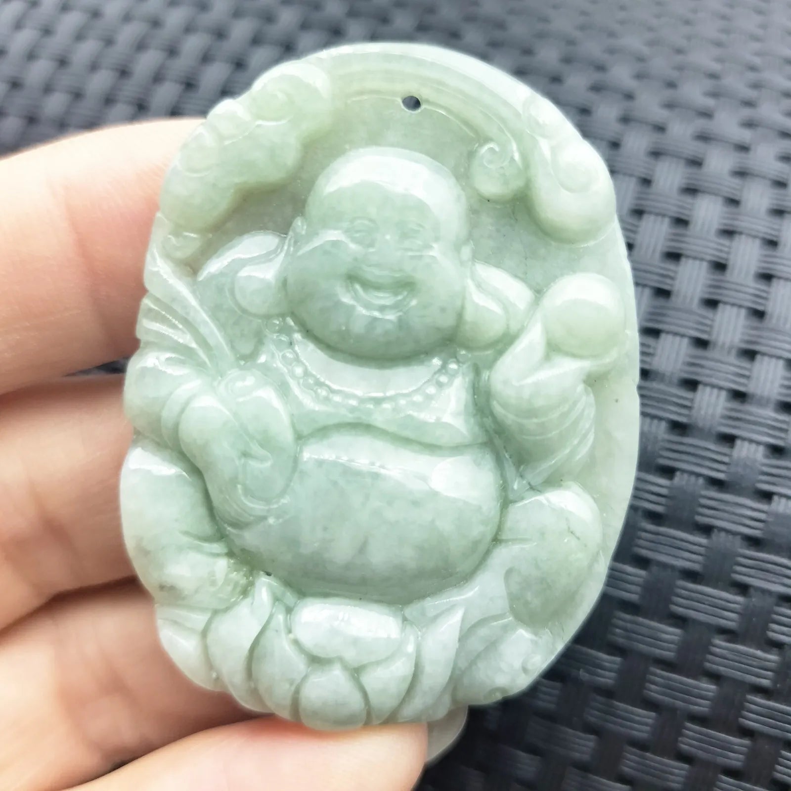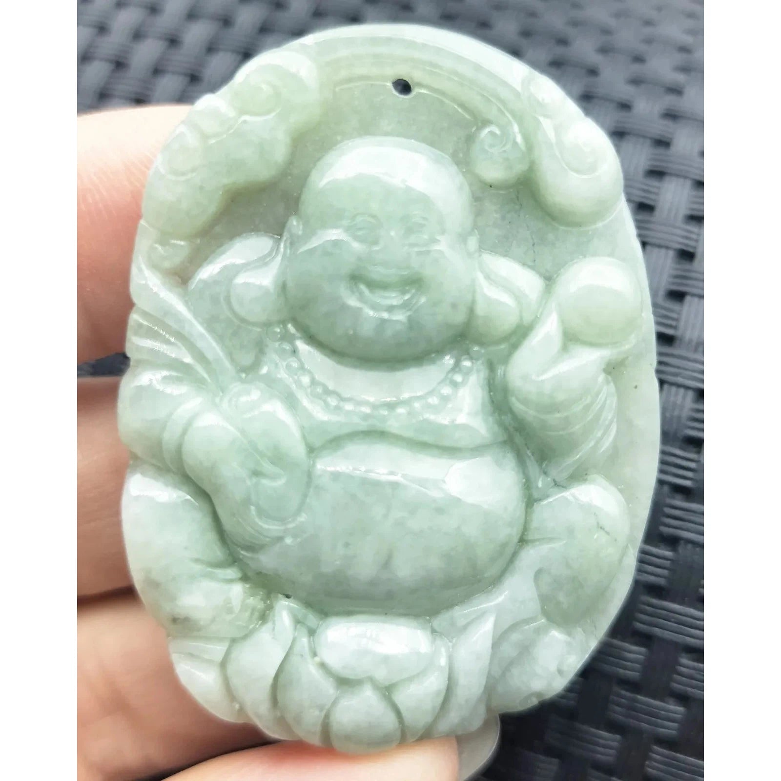 Certified Green Natural Type A Jade Jadeite Carved Happy Buddha God Ruyi Pendant