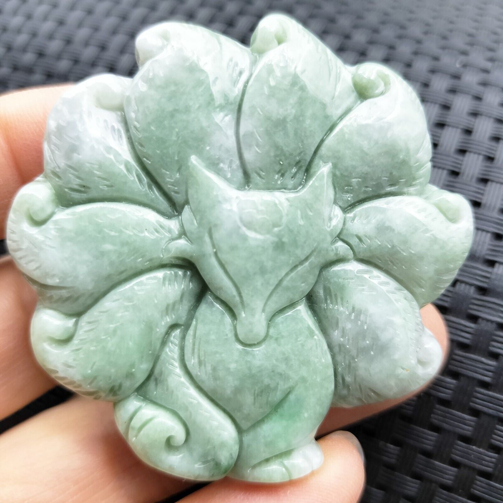 Certified Green Natural Type A Jade Jadeite Carved Nine-Tailed Fox Pendant
