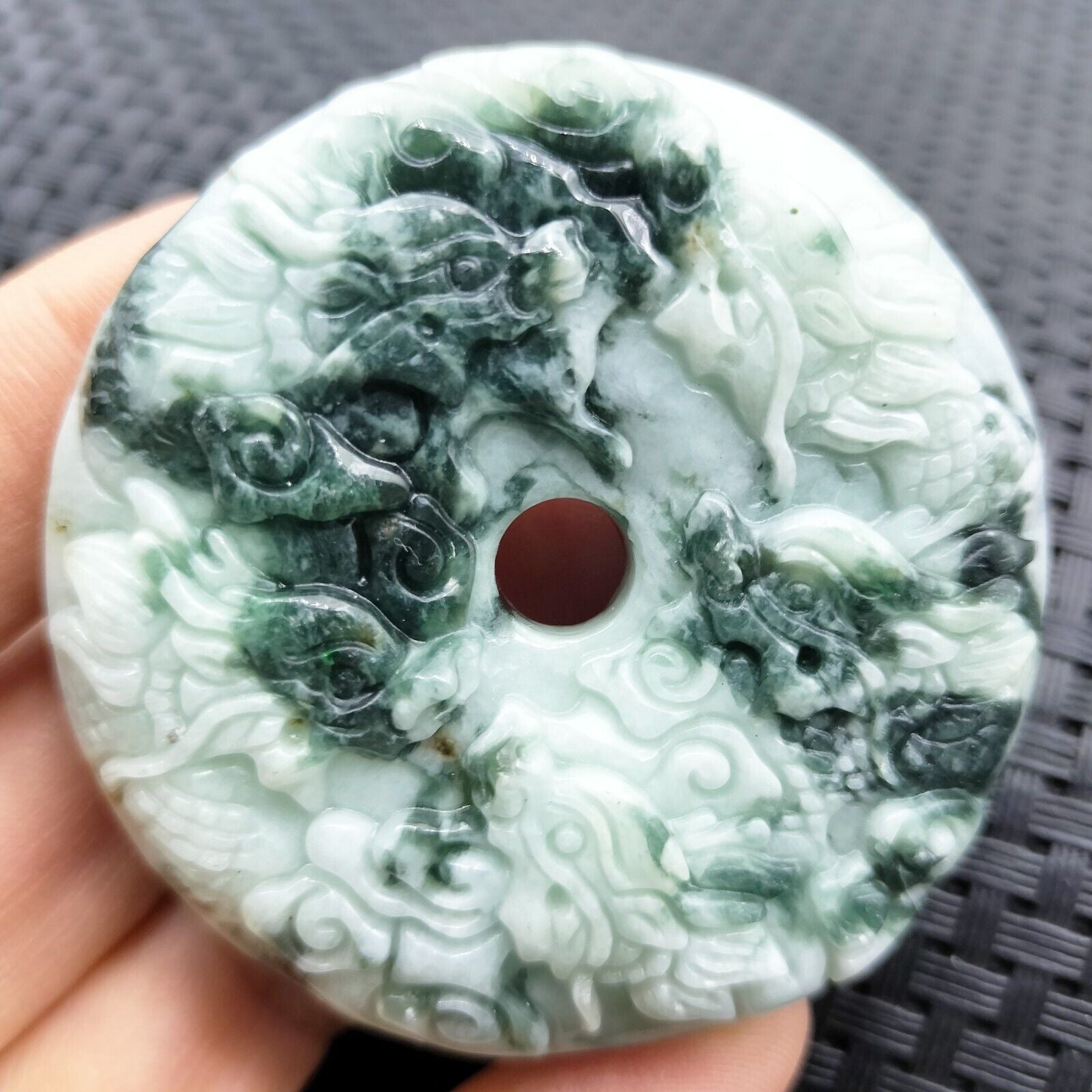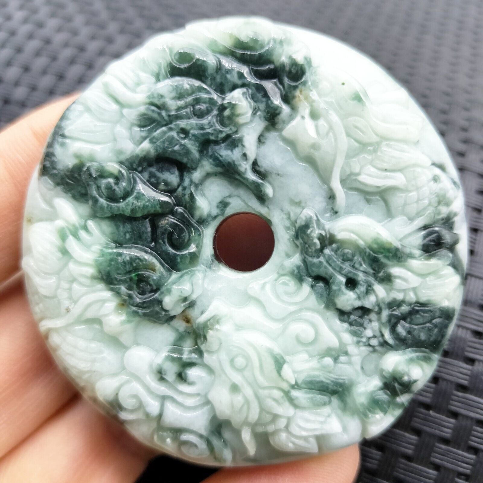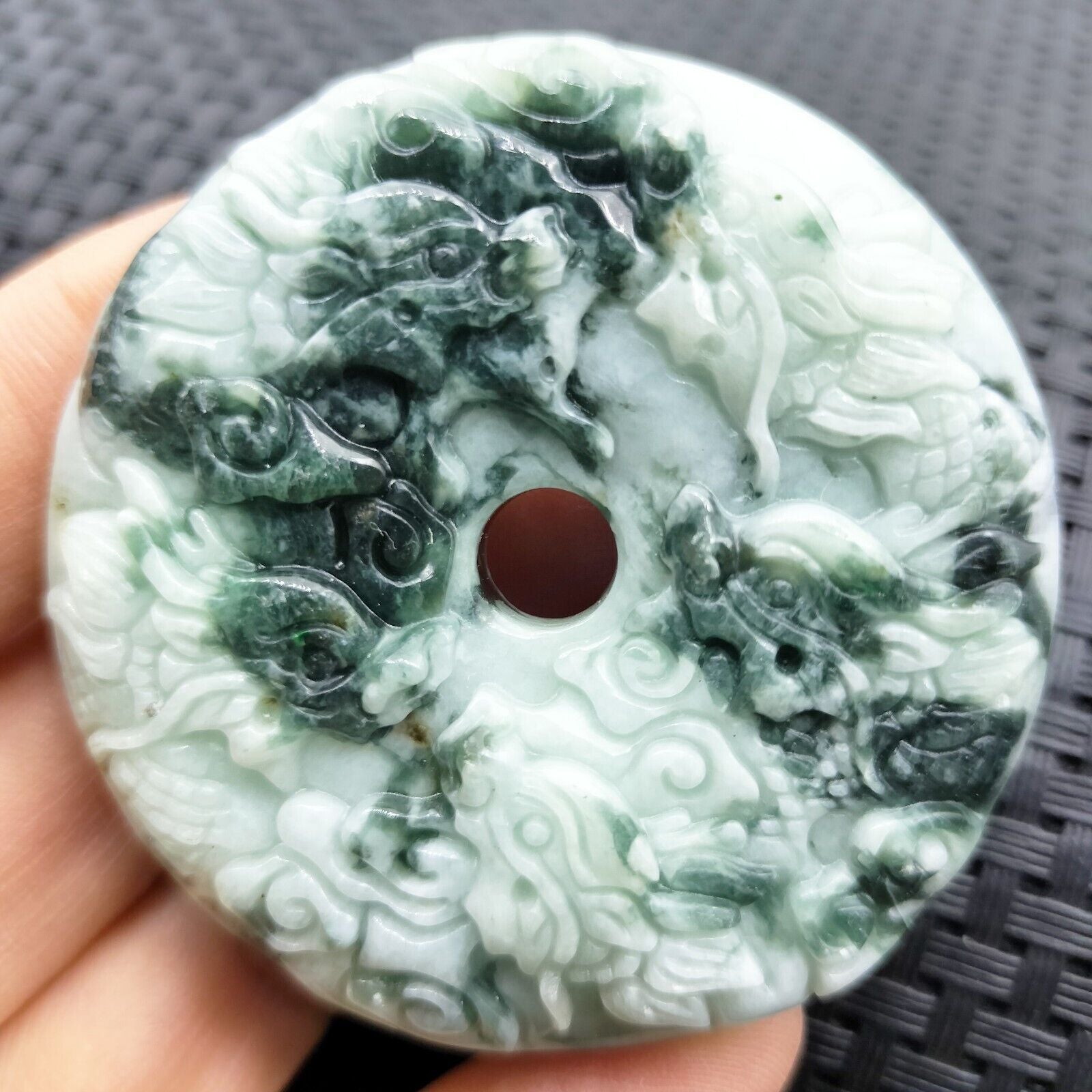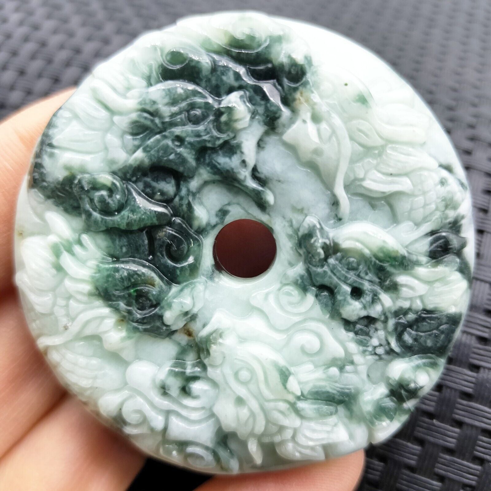 Certified Green Natural Type A Jade Jadeite Pendant Nine Dragons Circle Donut