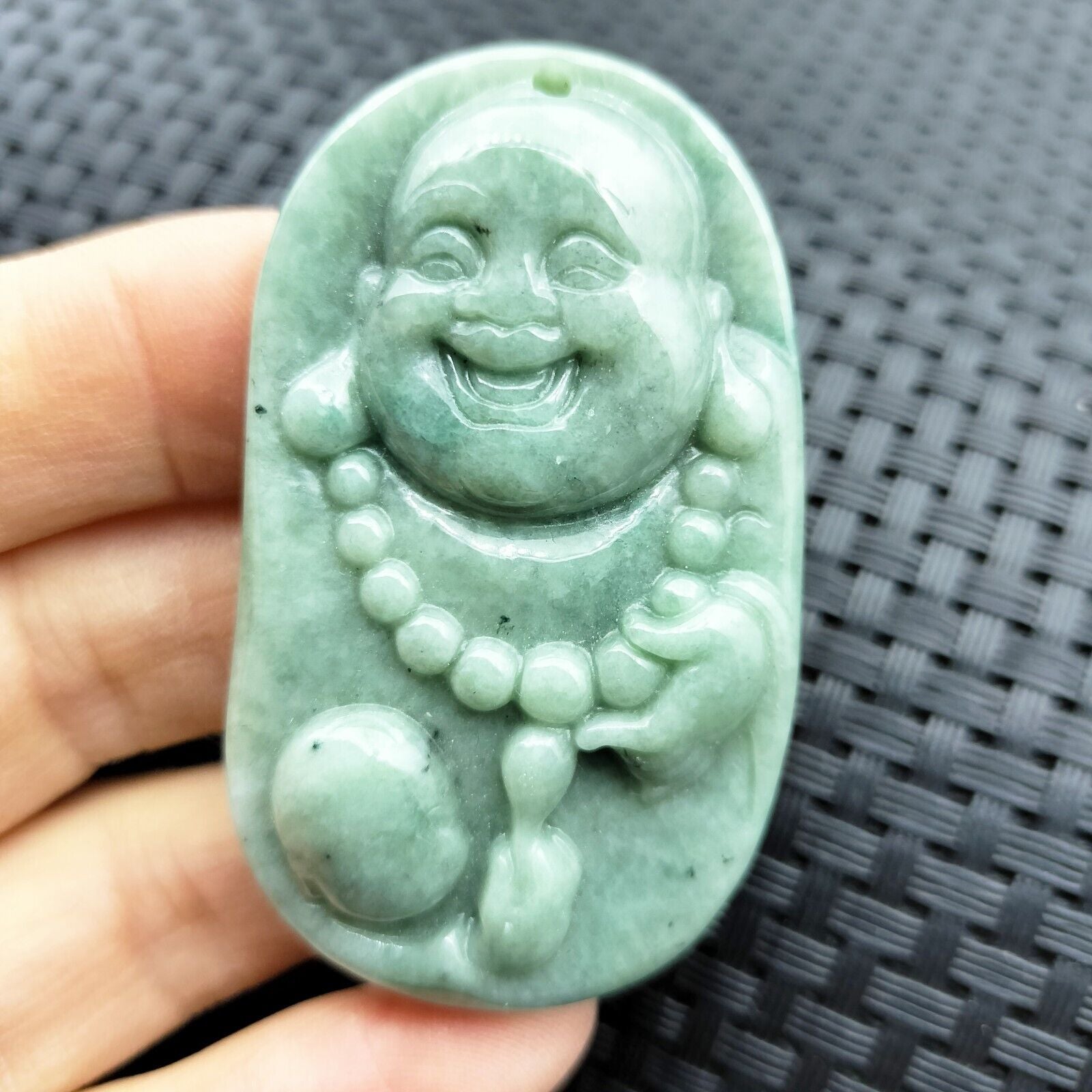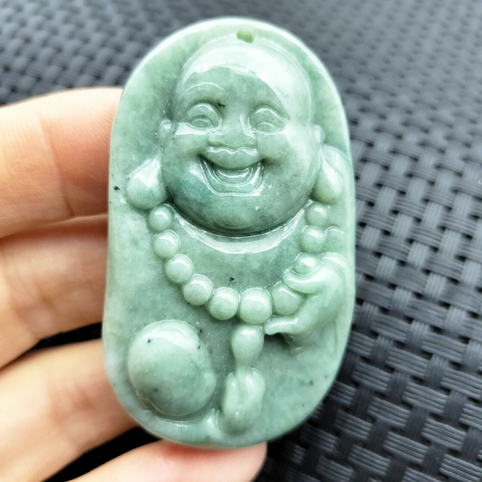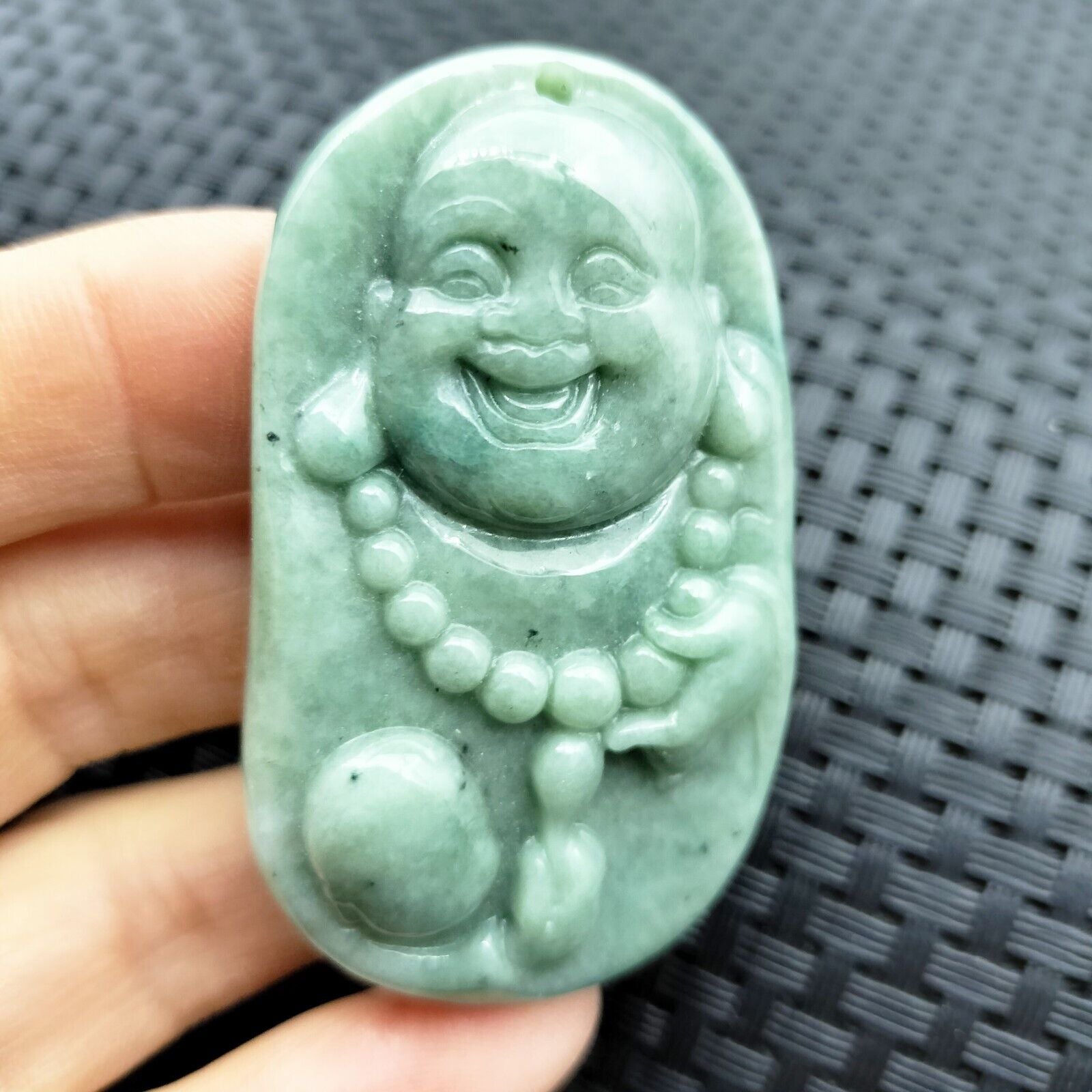 Certified Green Natural Type A Jadeite Carved Happy Buddha God Child Pendant