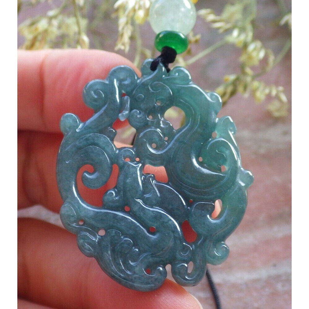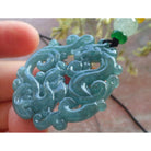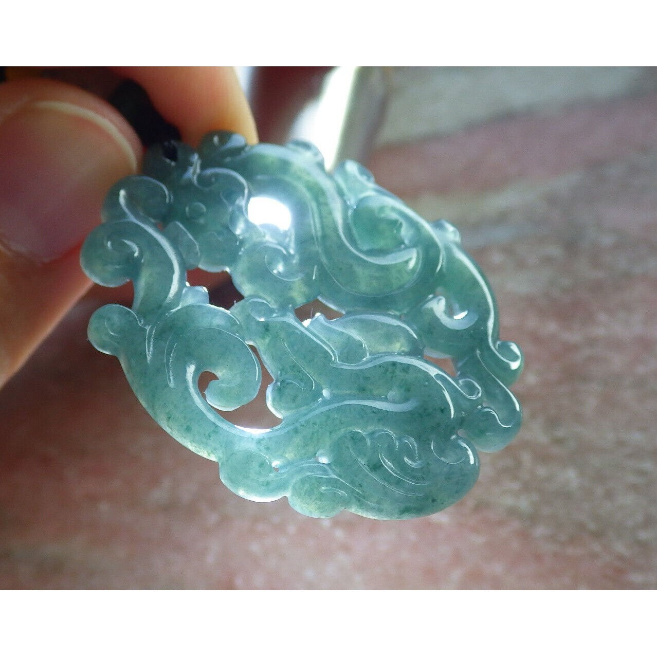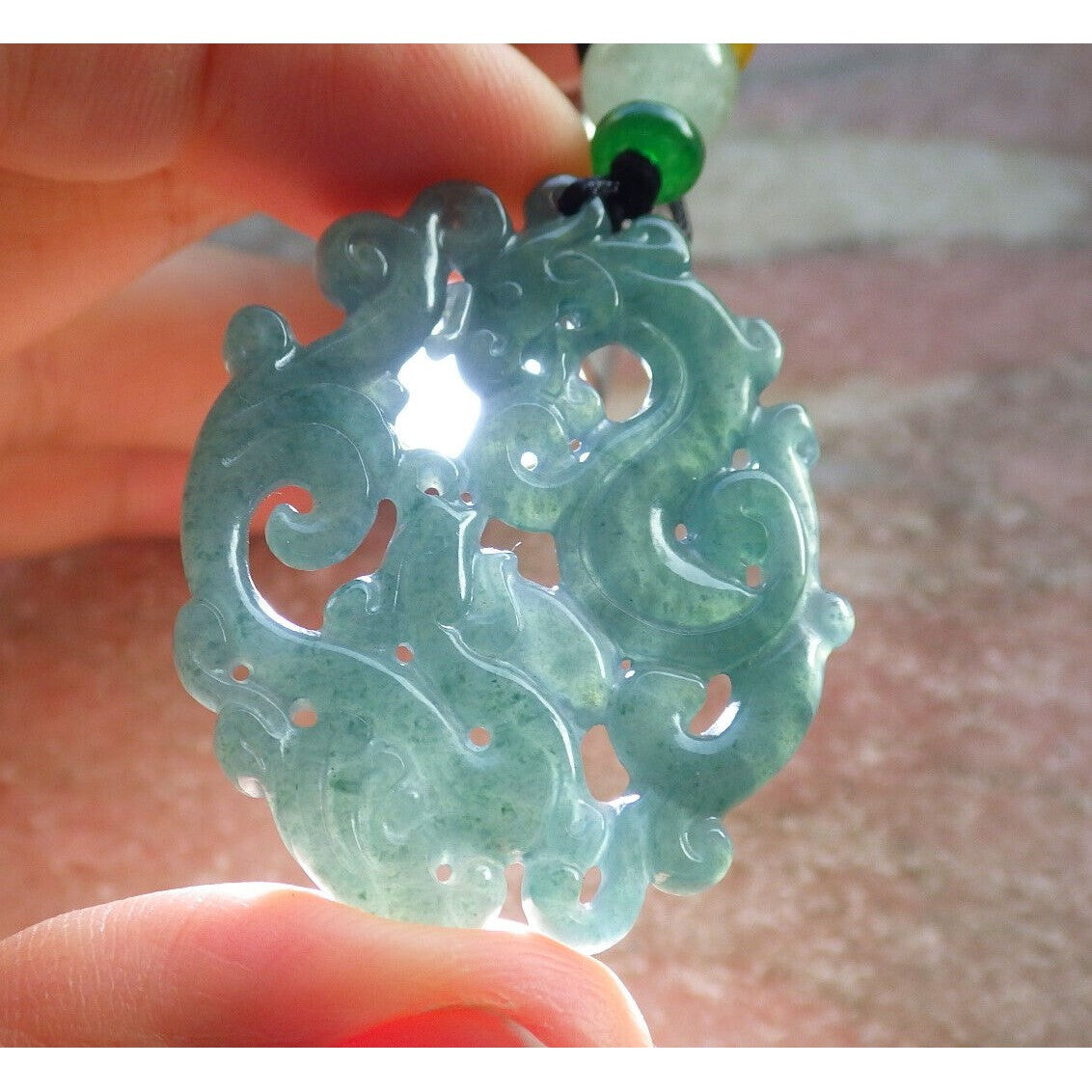 Certified Icy Green 100% Natural A Jade Jadeite Pendant Dragon Phoenix Necklace