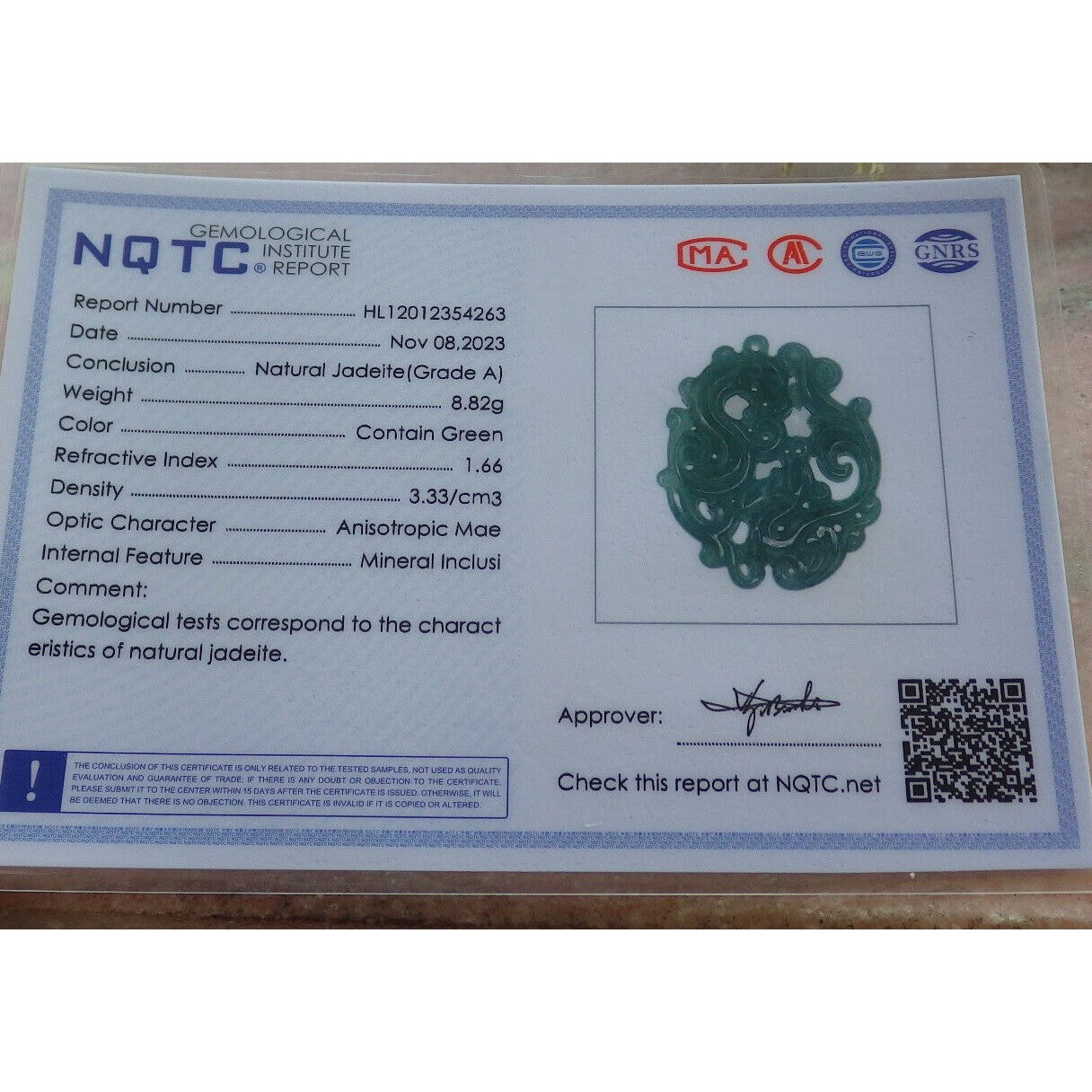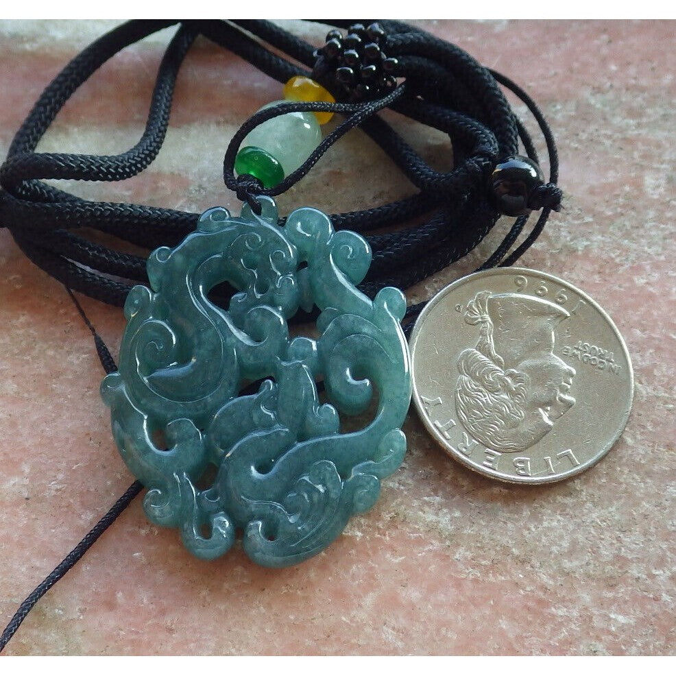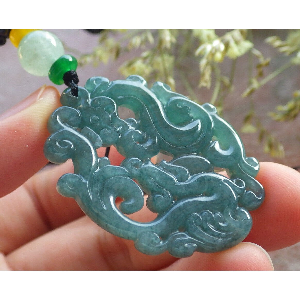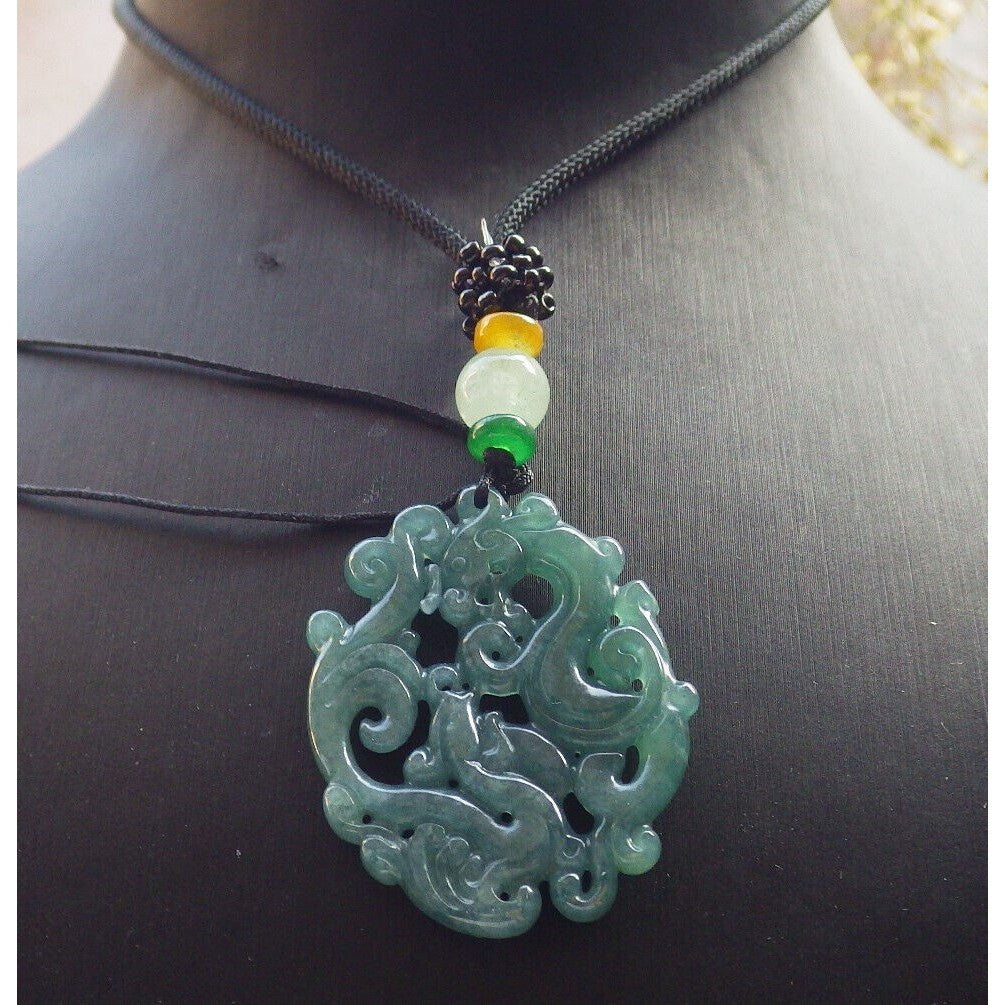 Certified Icy Green 100% Natural A Jade Jadeite Pendant Dragon Phoenix Necklace