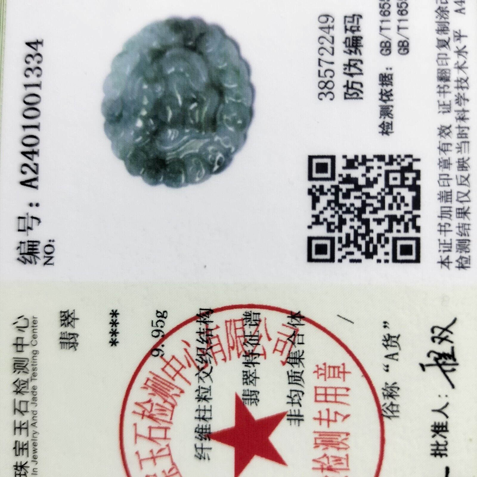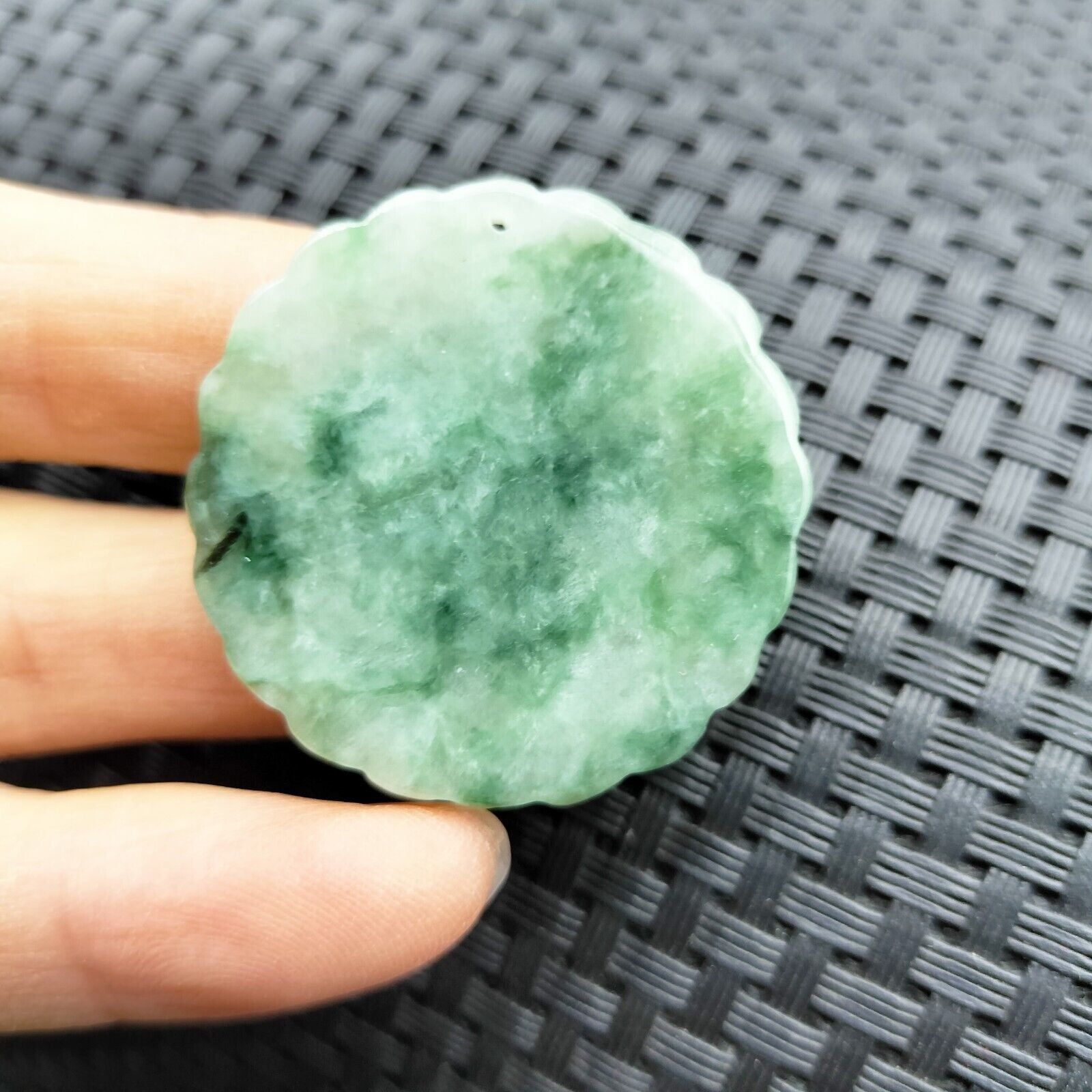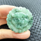 Certified Icy Green Natural Type A Jade Jadeite Carved Tiger Head Coin Pendant