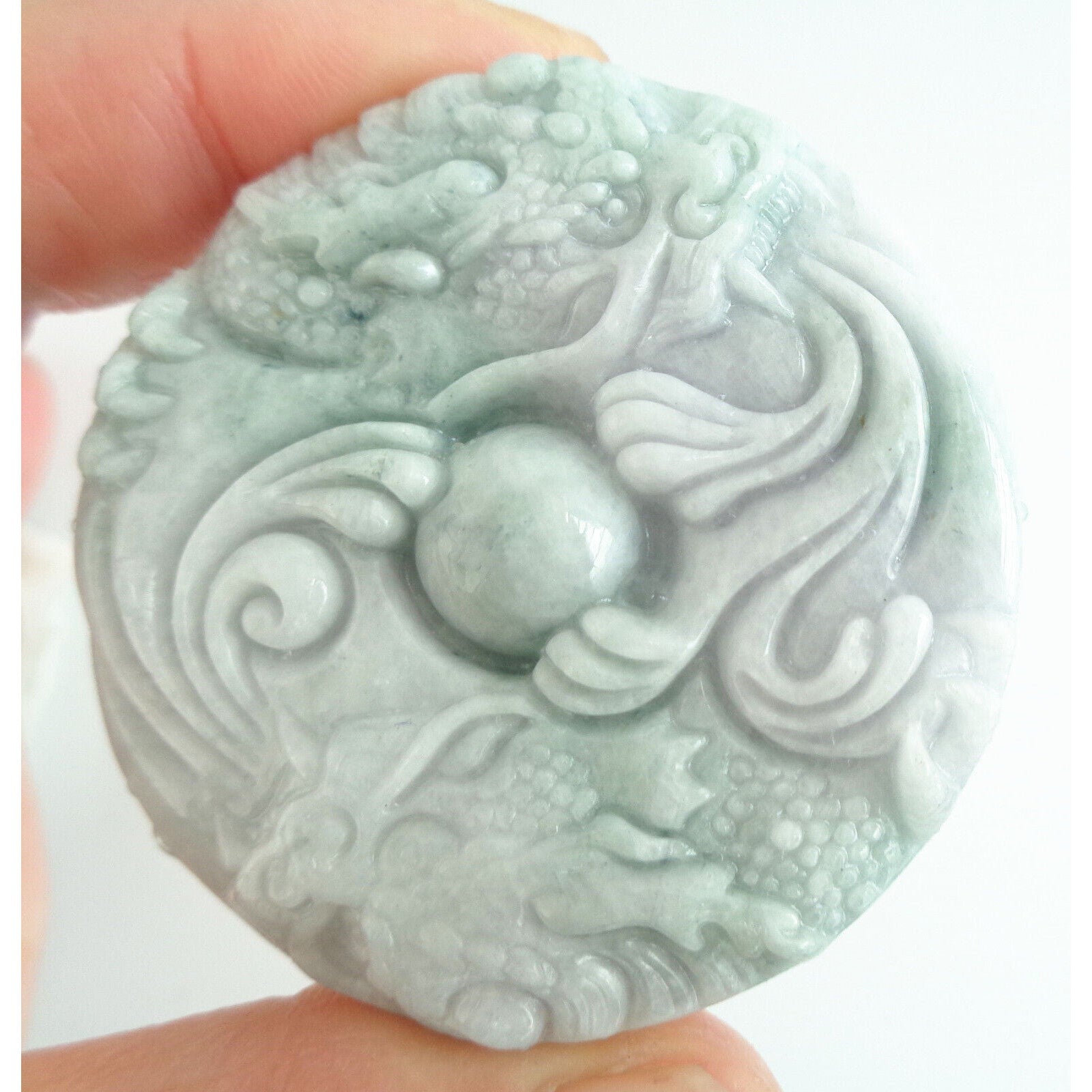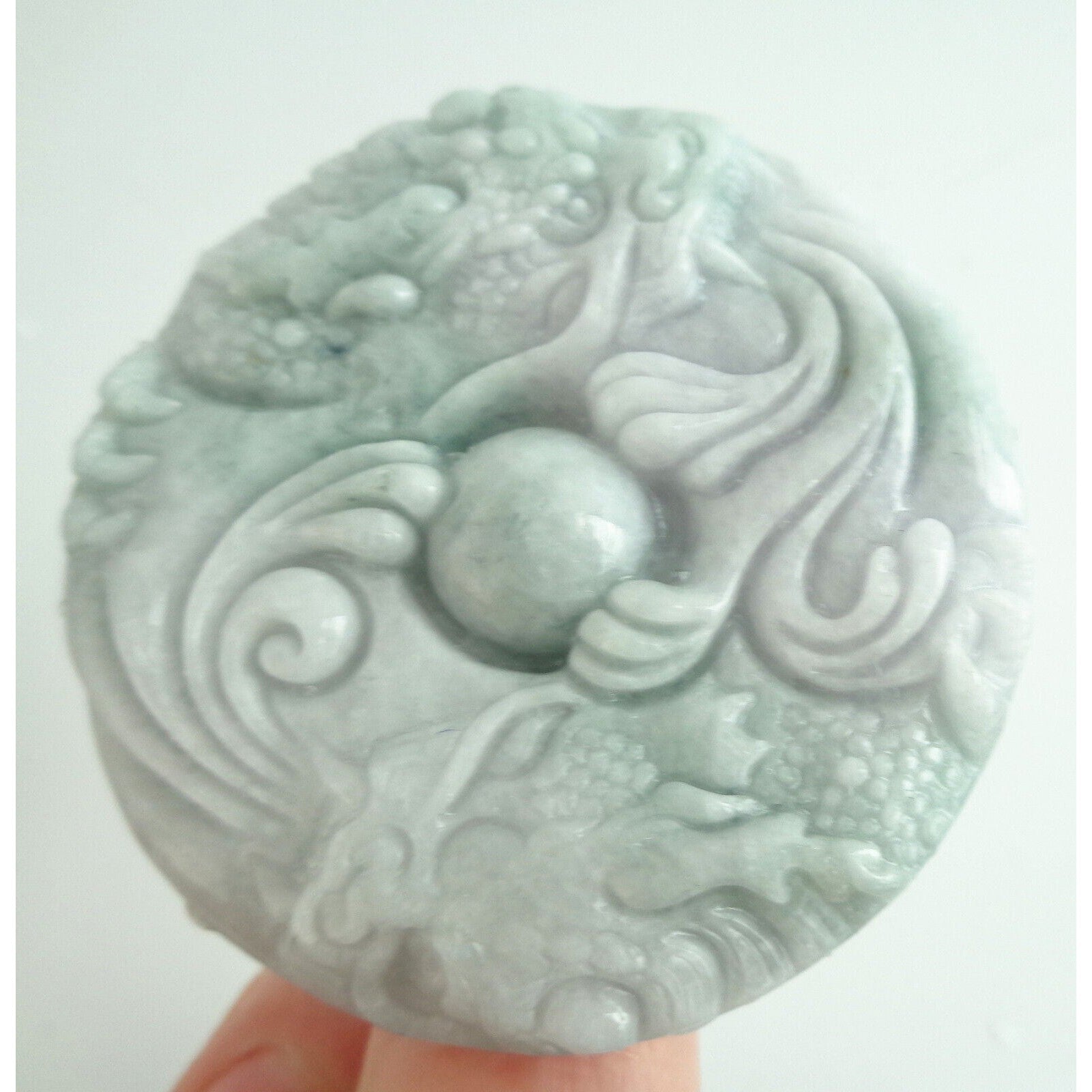 Certified Lavender Green Natural A Jade Jadeite Carved 2 Dragons Bead Pendant