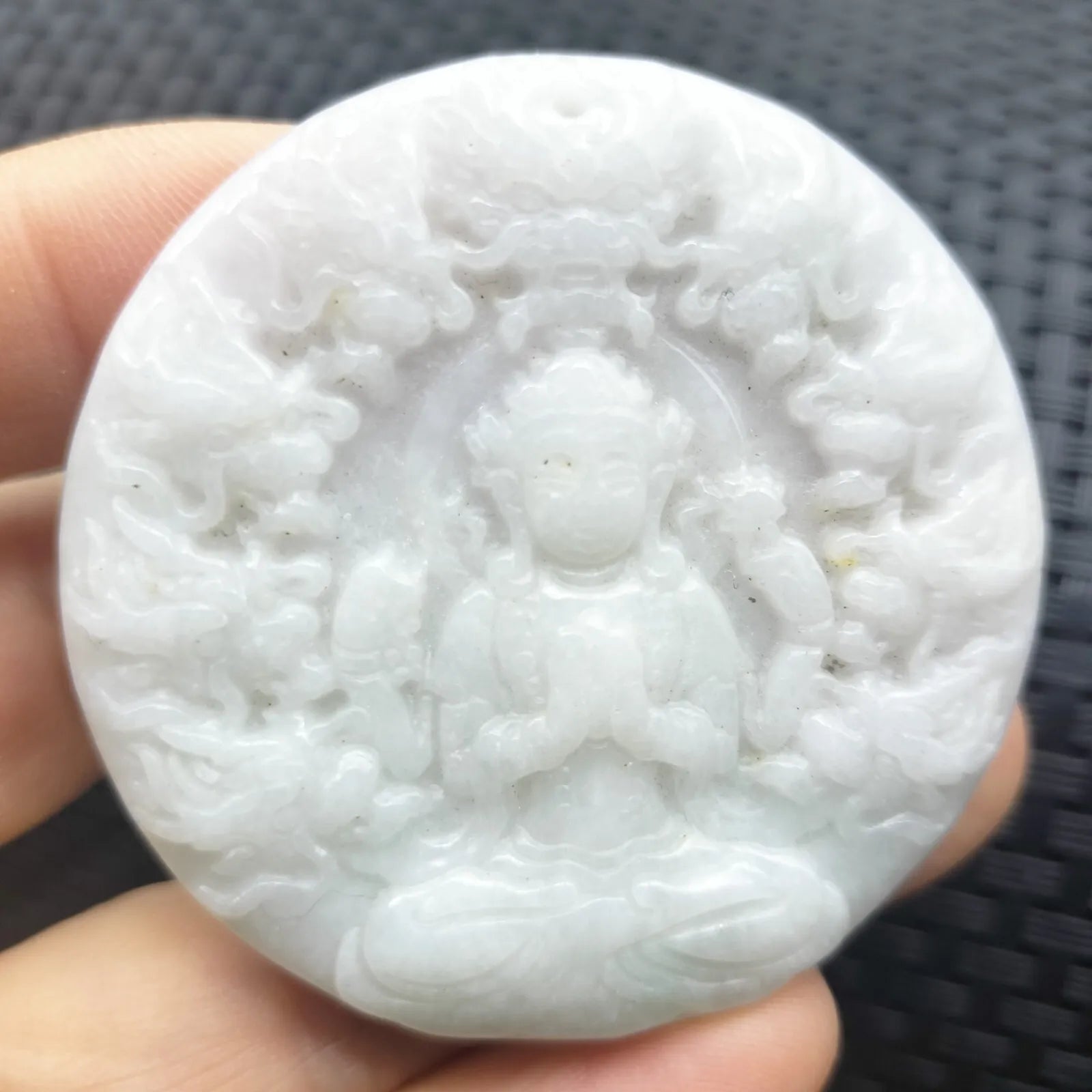 Certified Lavender Natural A Jadeite Carved Guanyin Kwan Yin God Dragons Pendant