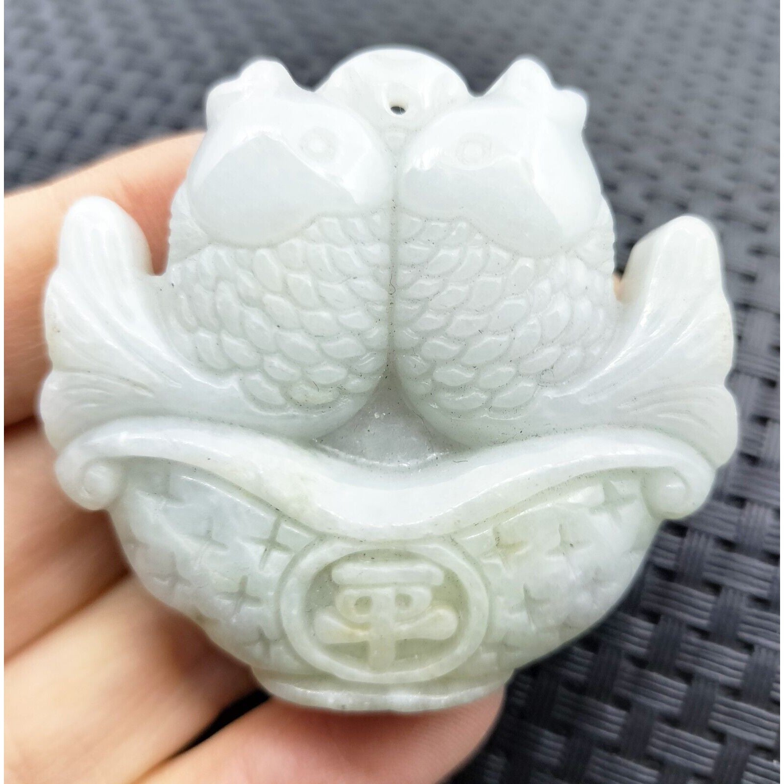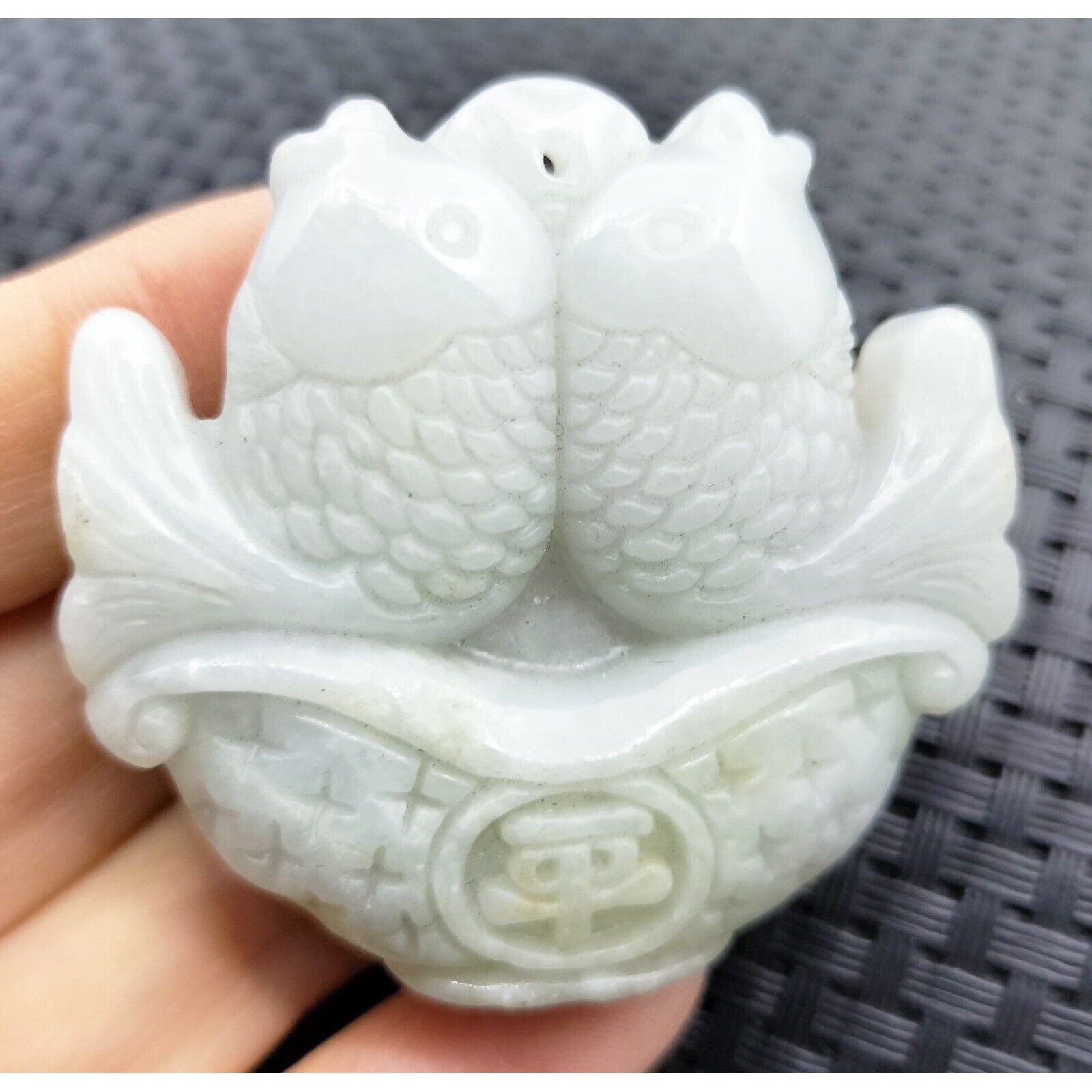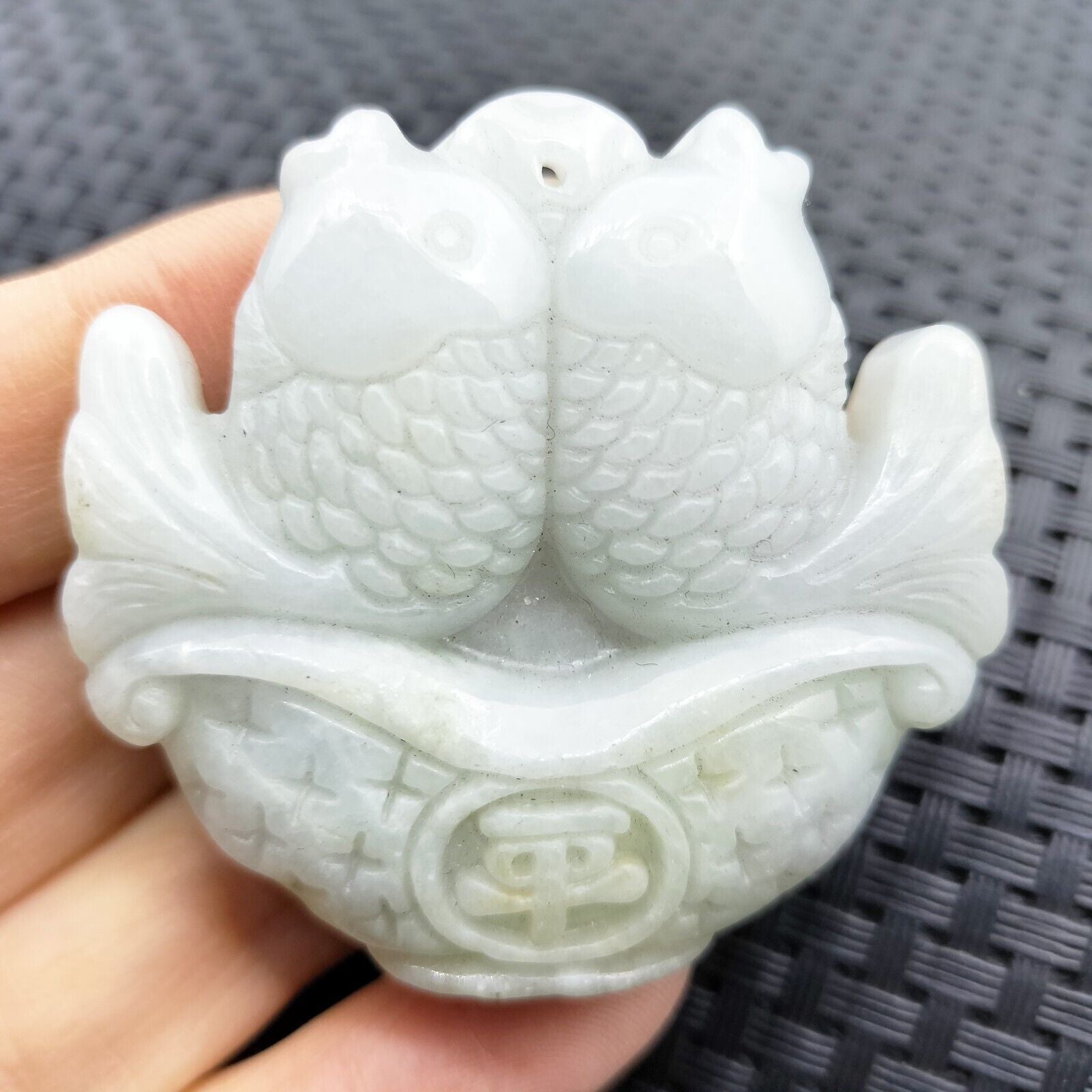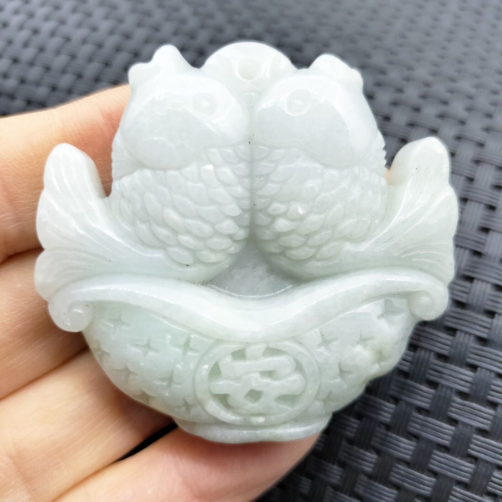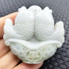 Certified Light Green Natural Type A Jadeite Carved Double Fish Happy Marriage Pendant