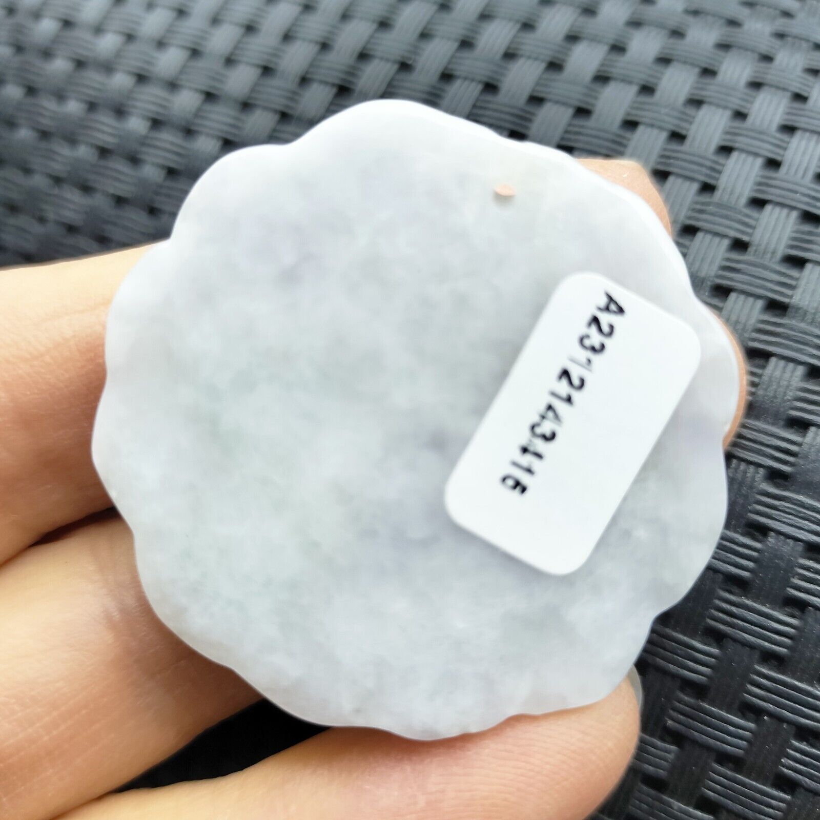 Certified Lavender Natural Type A Jade Jadeite Carved Flower Pendant Necklace