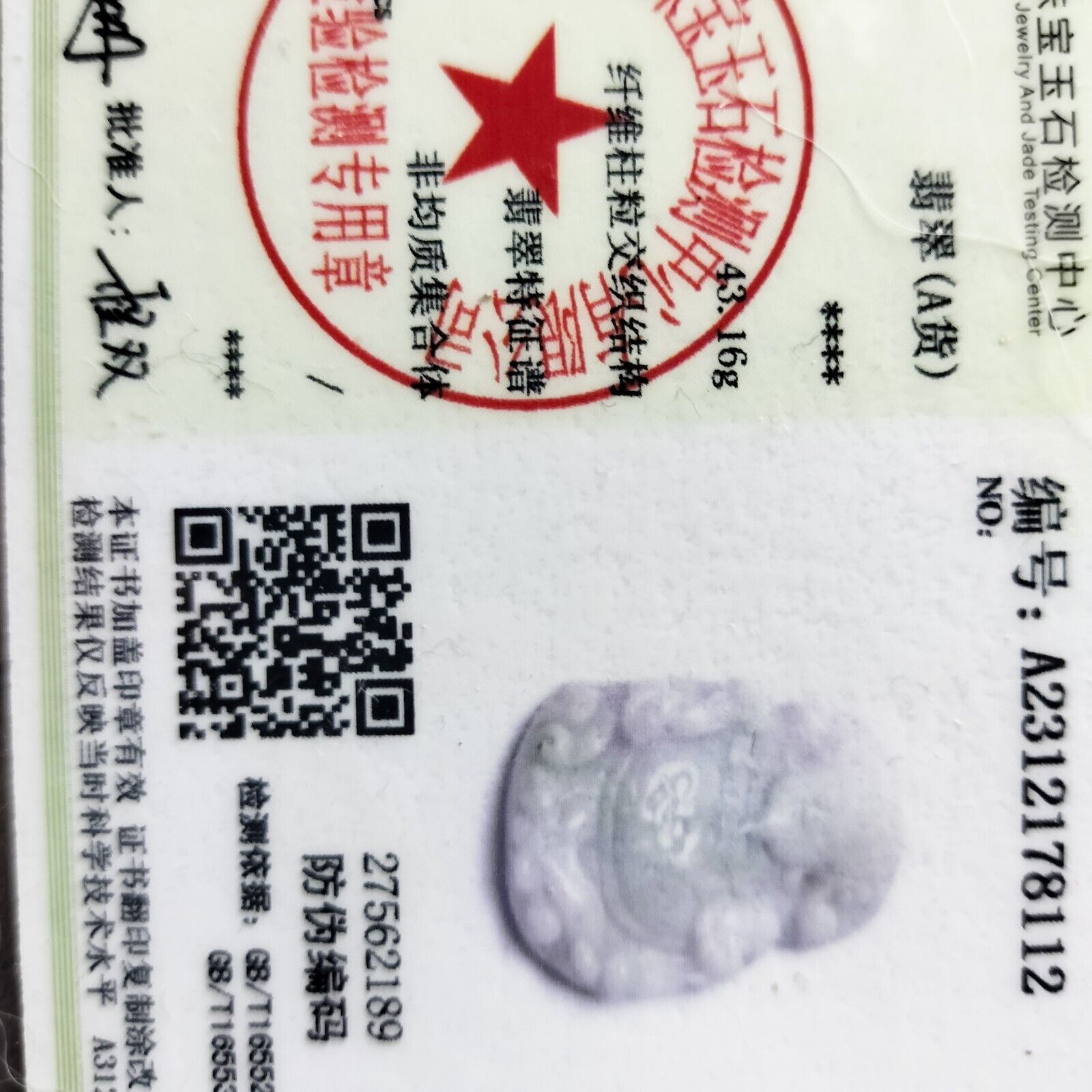 Certified Lavender Natural Type A Jadeite Carved God Of Wealth Ruyi Pendant