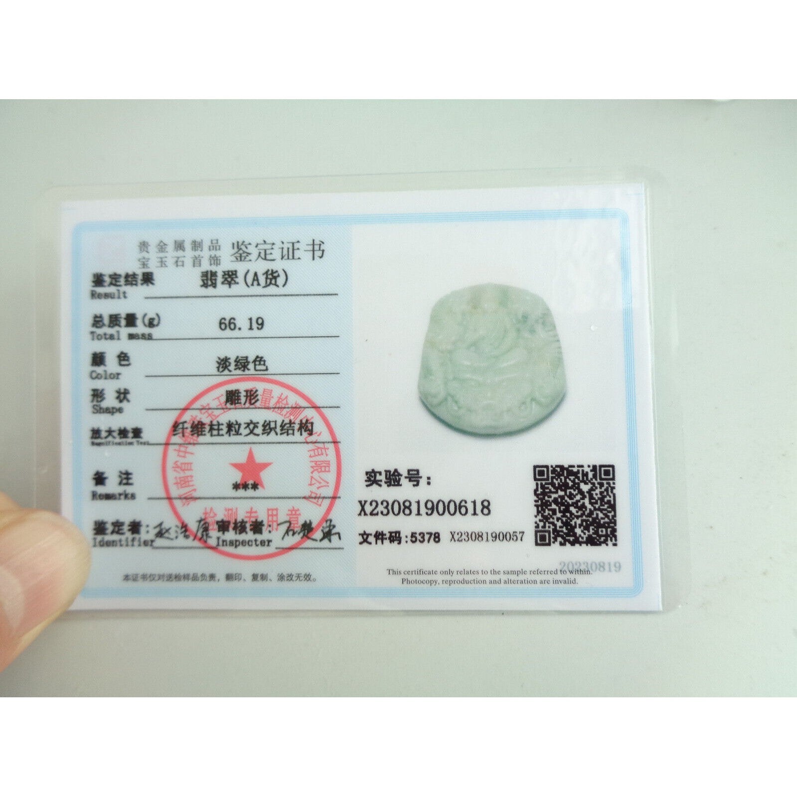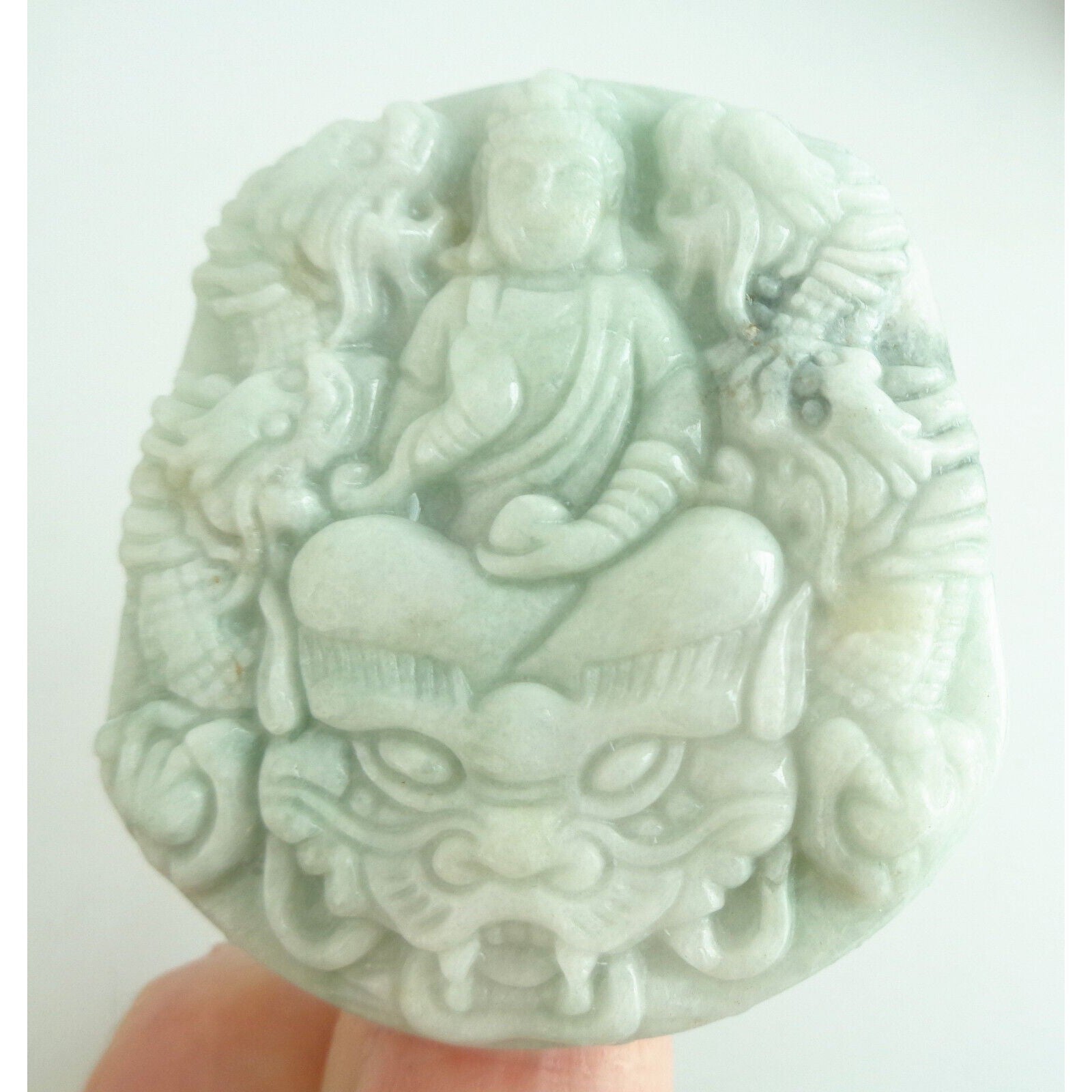 • Certified Light Green Natural A Jadeite Guanyin Kwan Yin God Nine Dragon Pendant