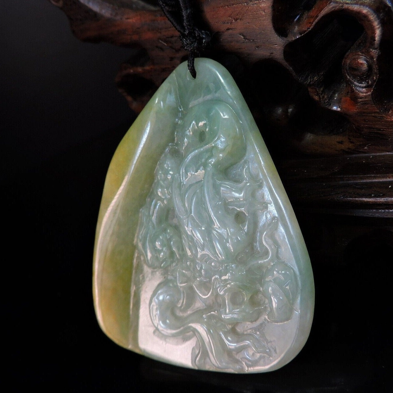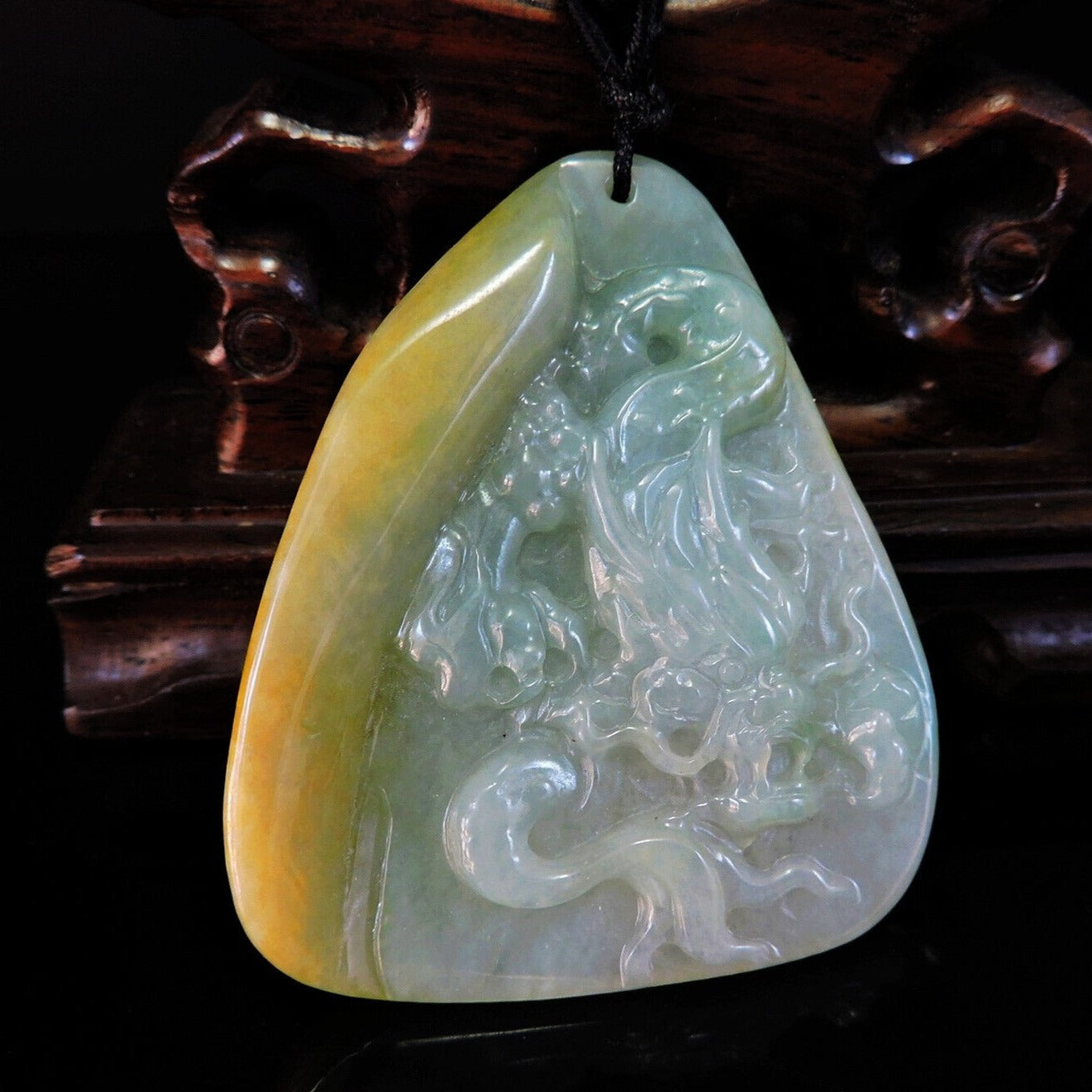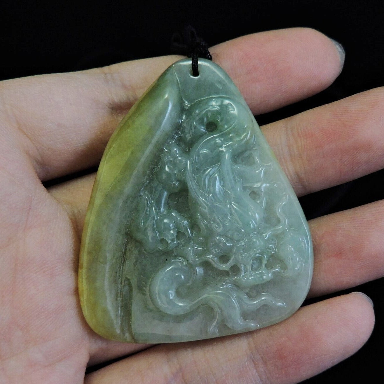 Certified Natural Hand-Carved A Jadeite Jade Pendant Necklace Dragon