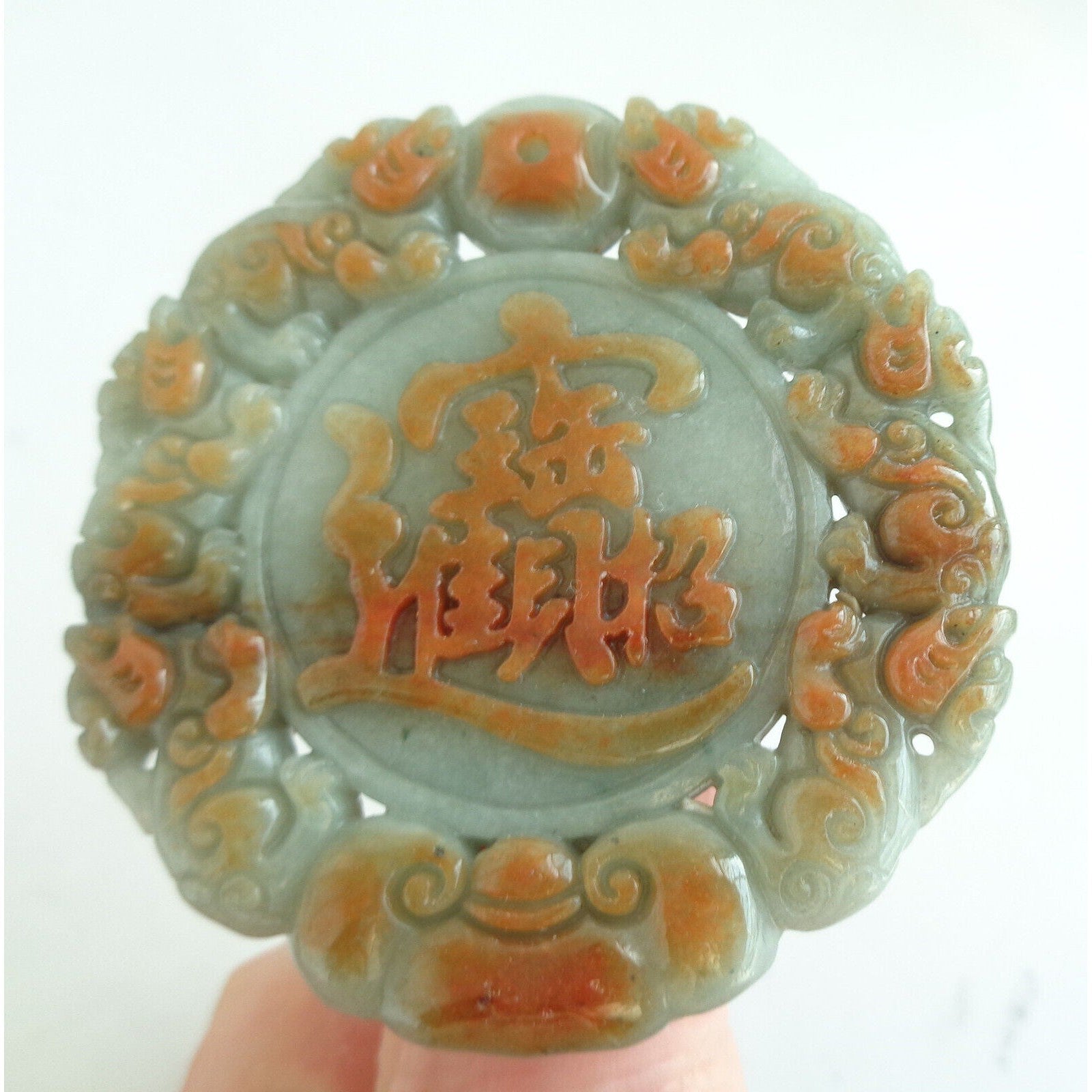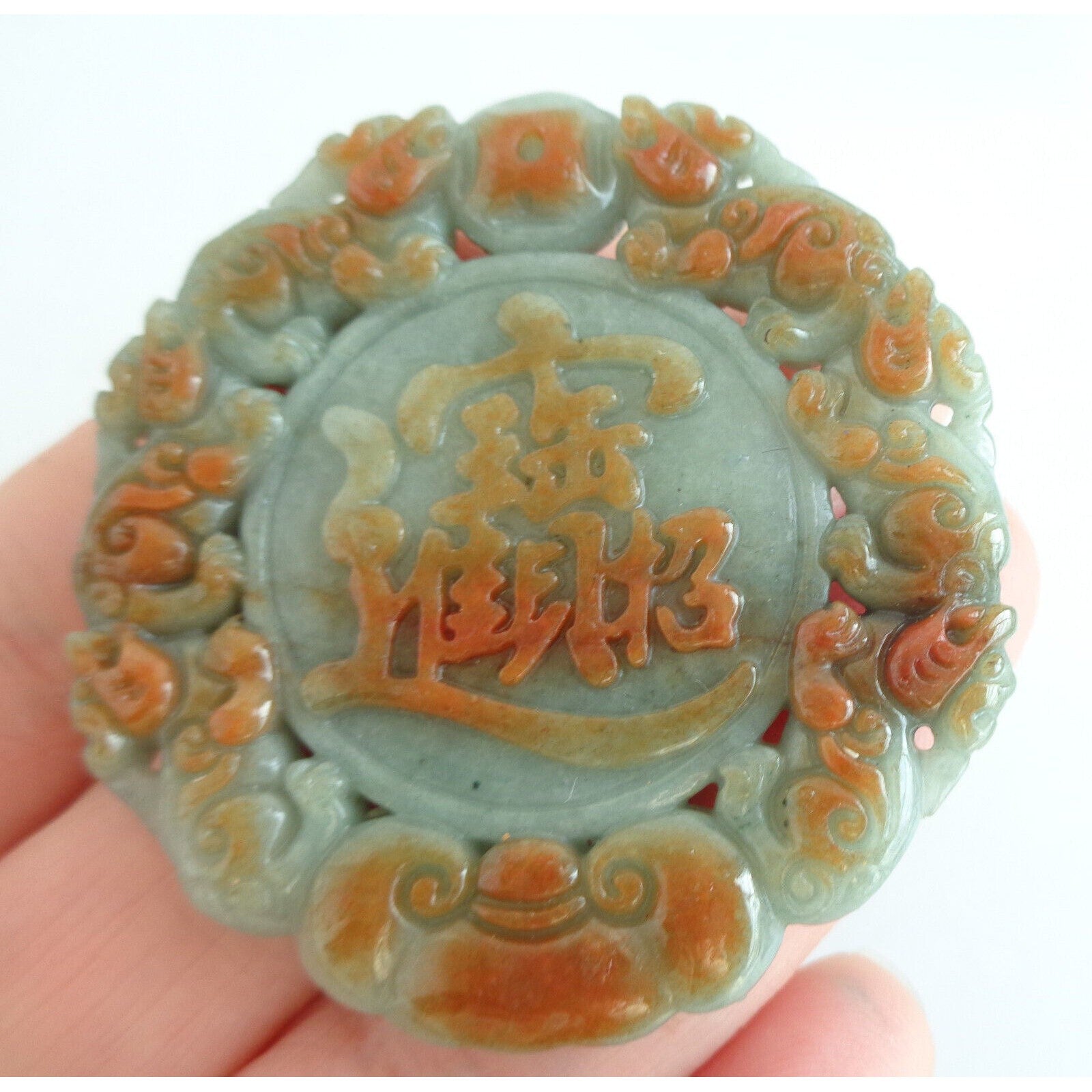 Certified Orange Green A Jade Jadeite Carved Pendant Wealth and Fortune