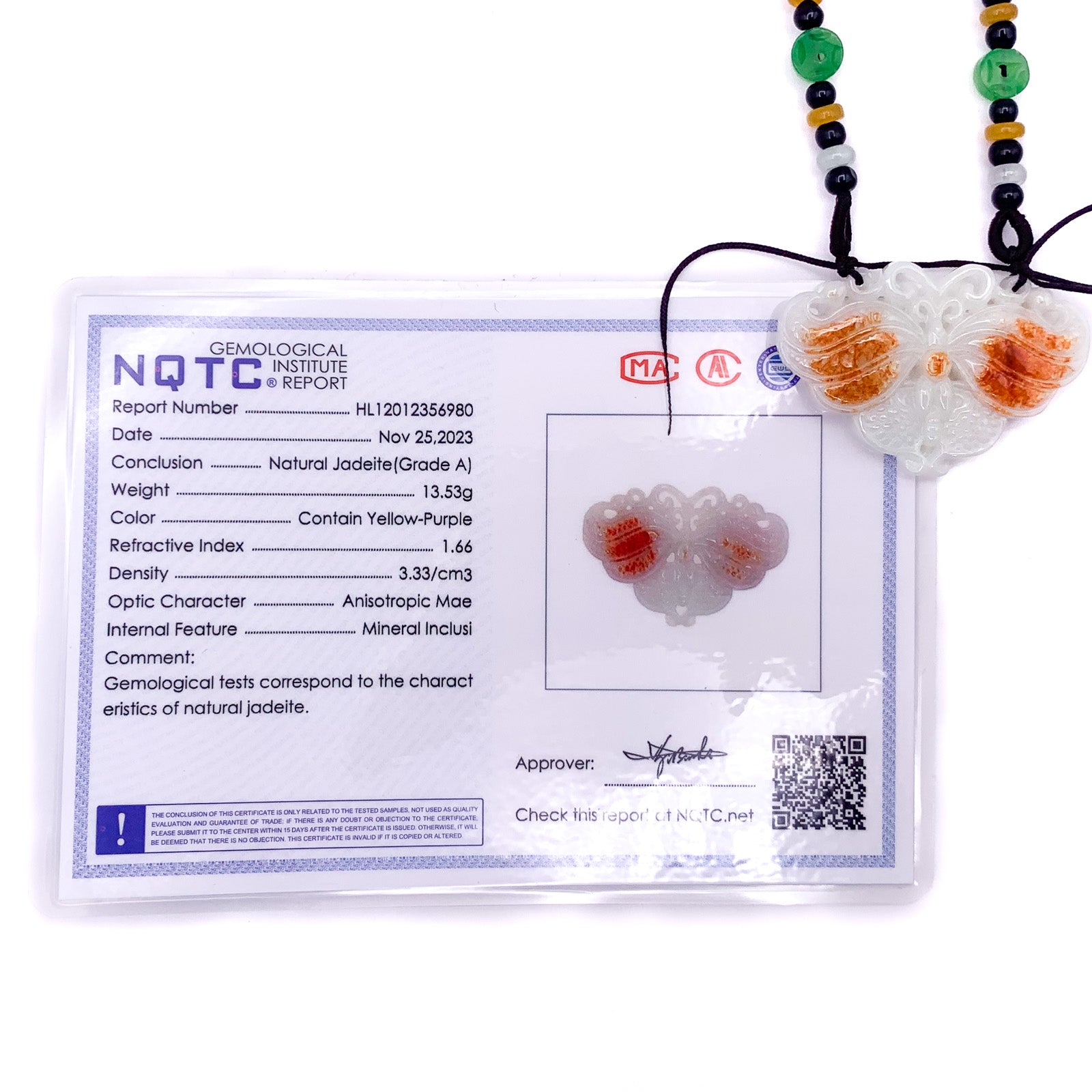 Certified Red 100% Burma Natural A Jade Jadeite Pendant Butterfly Necklace